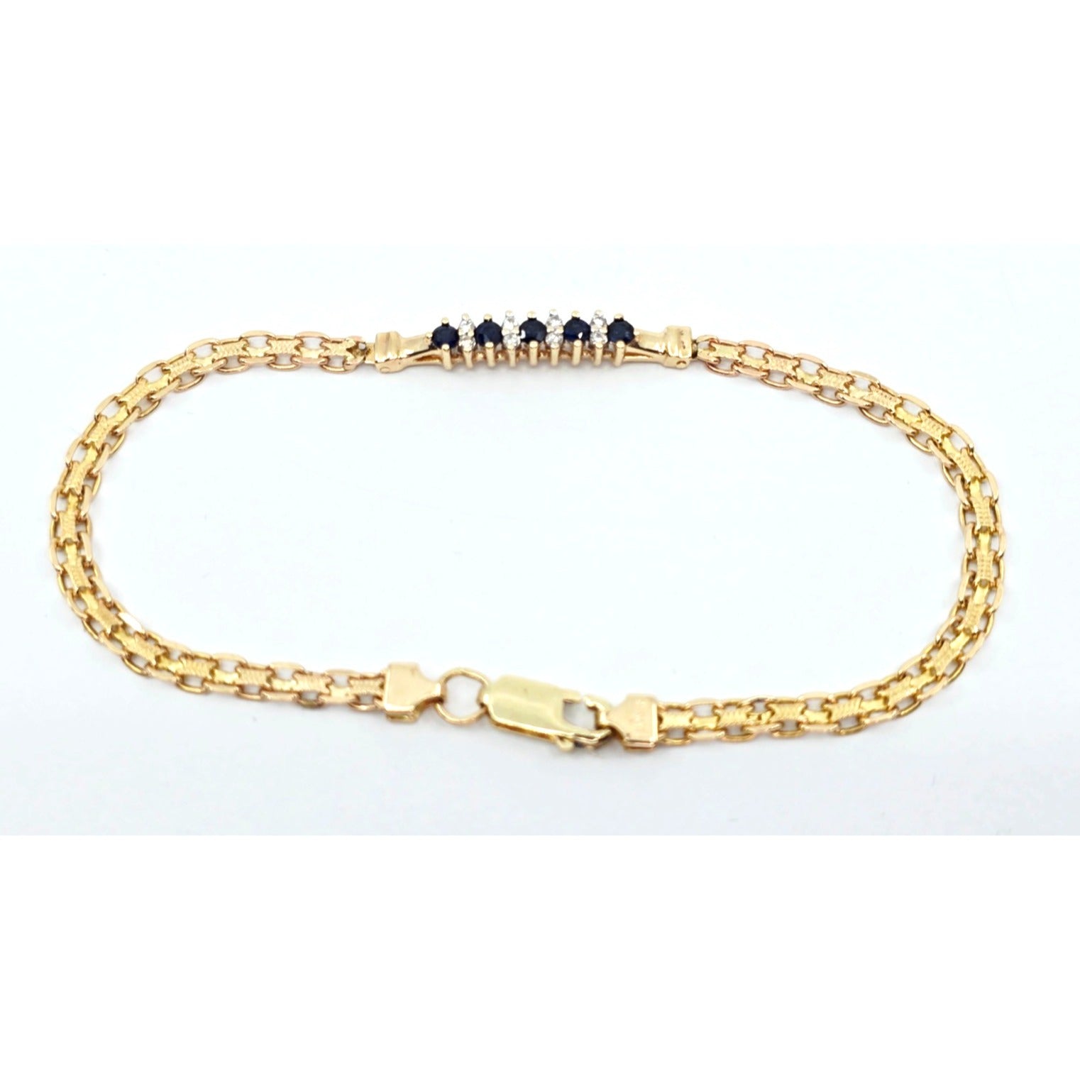 14K Yellow Gold Diamond & Blue Spinel Tennis Link Bracelet