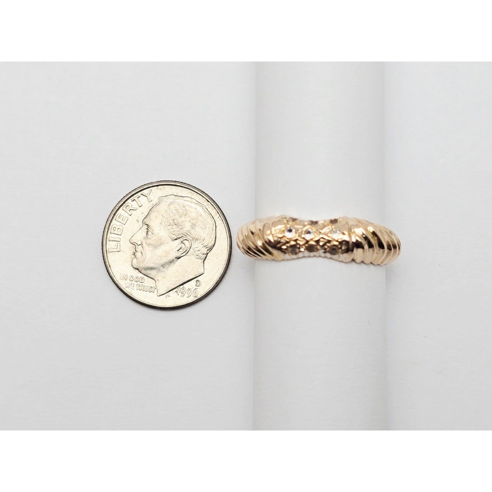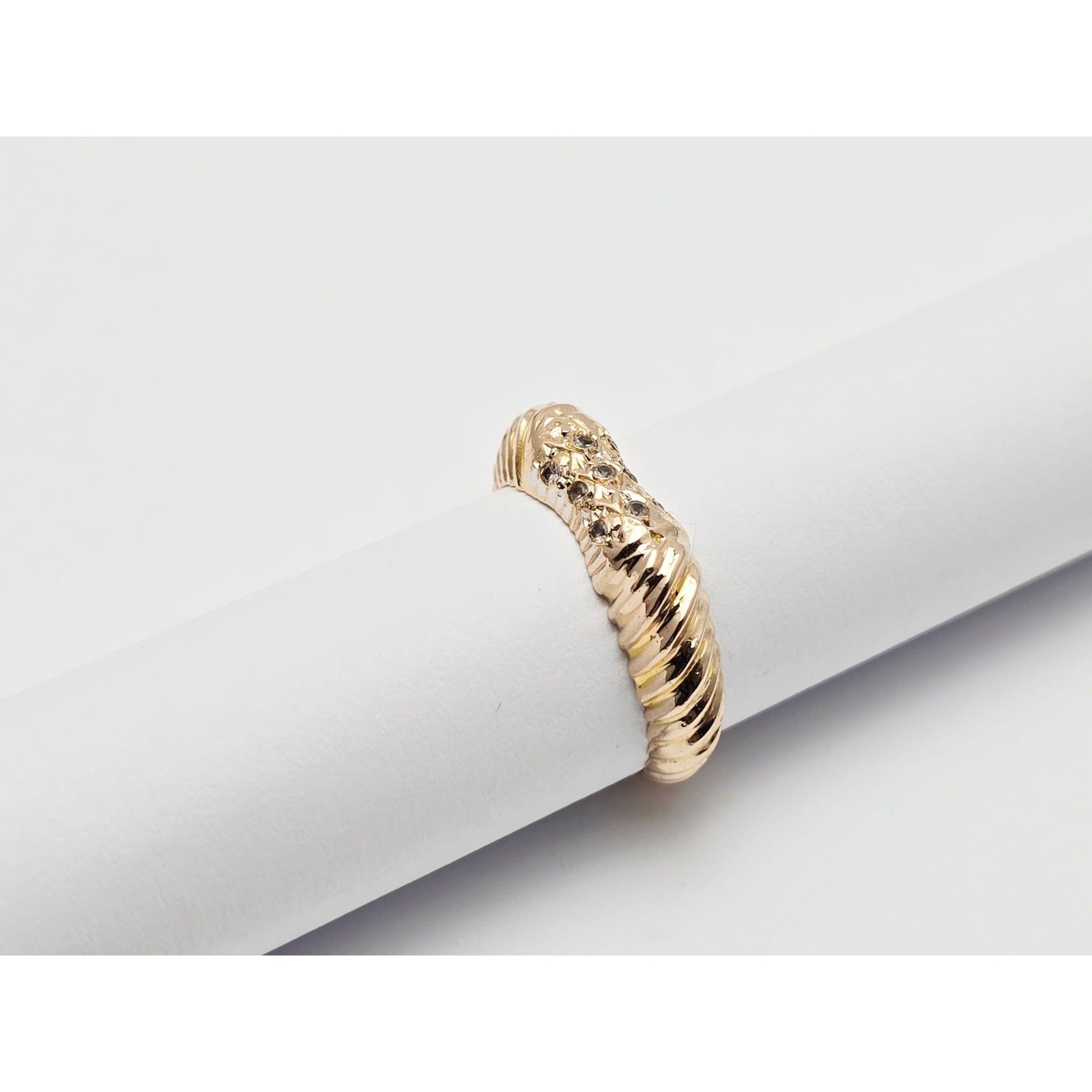 14K Yellow Gold Diamond Cut CZ Ring