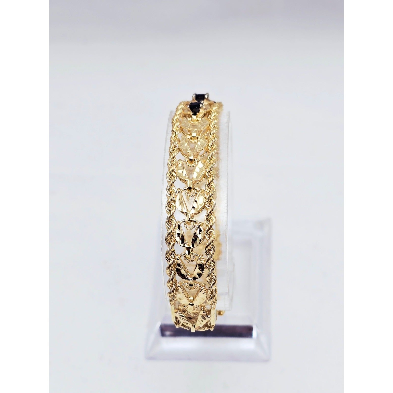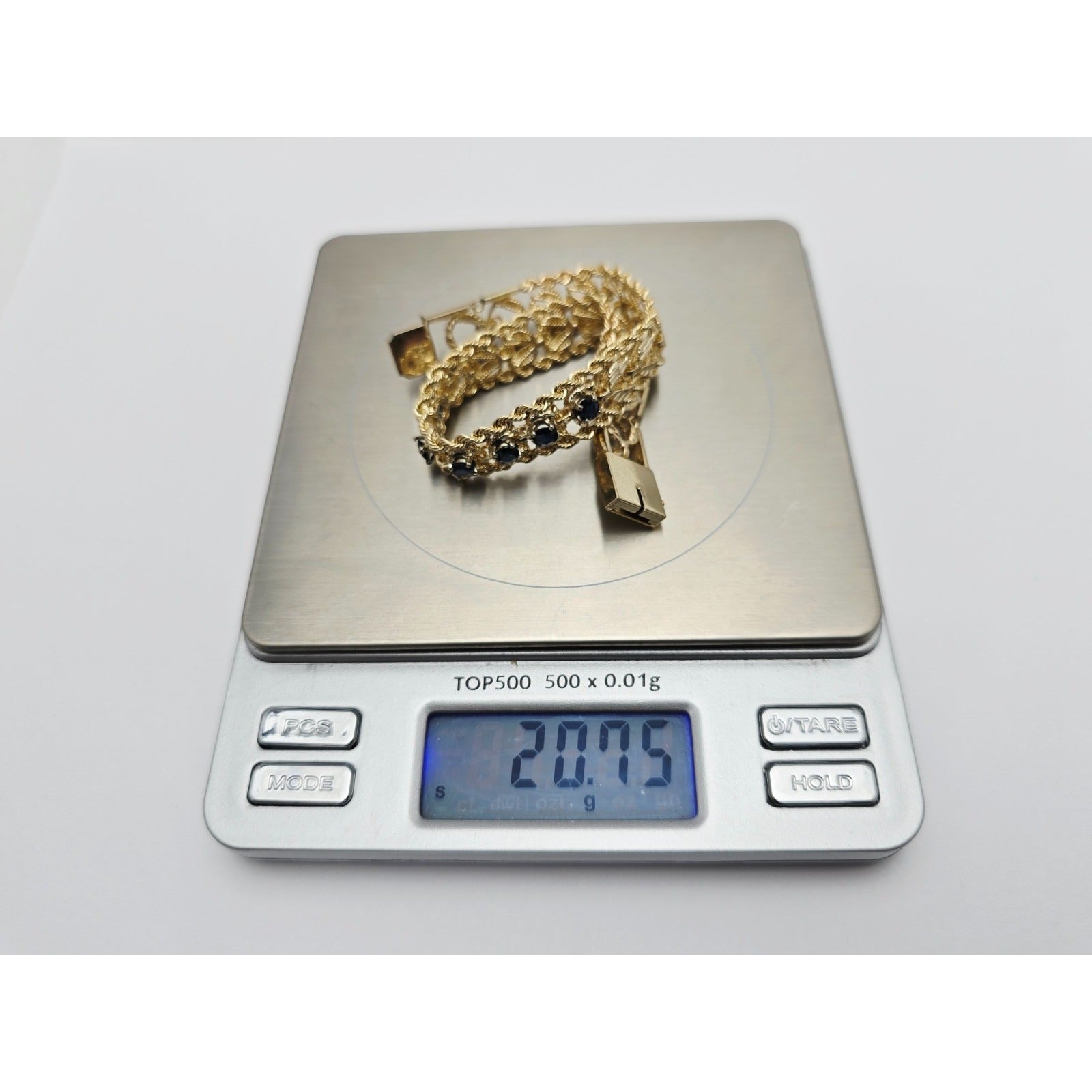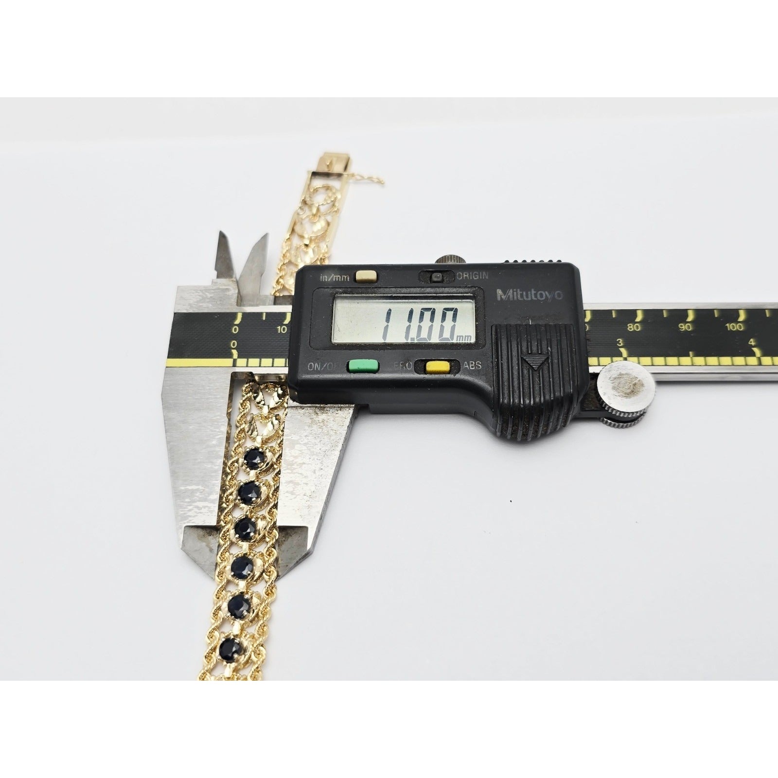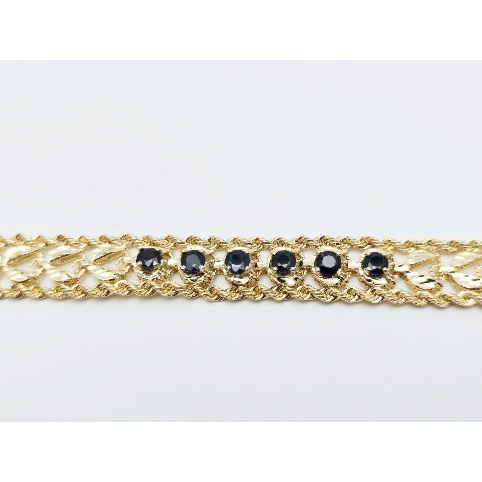 14K Yellow Gold Diamond Cut Double Rope Sapphire Bracelet