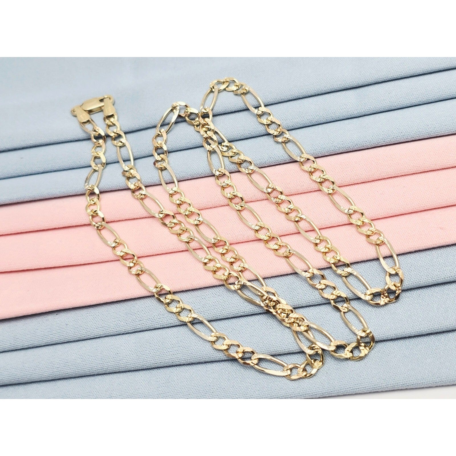 14K Yellow Gold Diamond Cut Figaro Link Chain Necklace