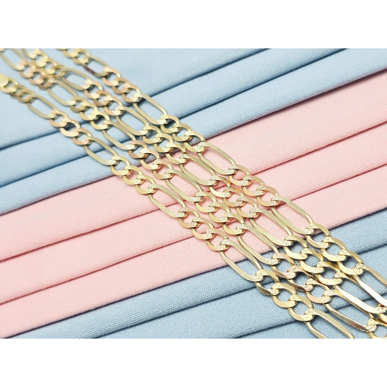 14K Yellow Gold Diamond Cut Figaro Link Chain Necklace