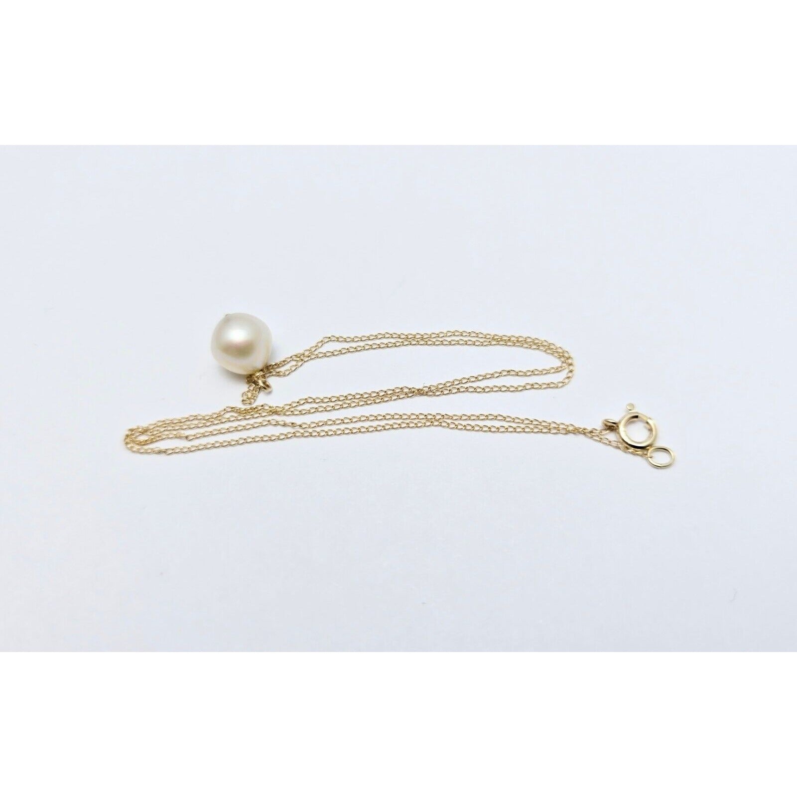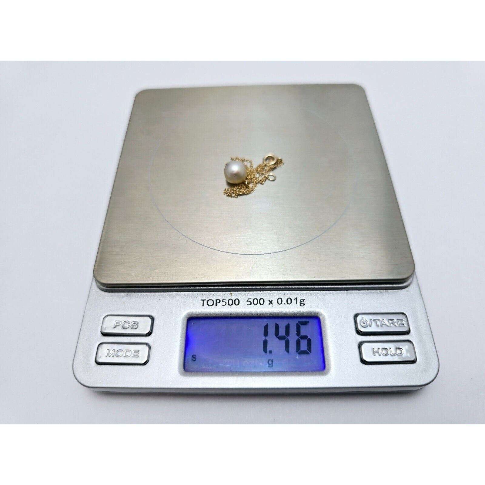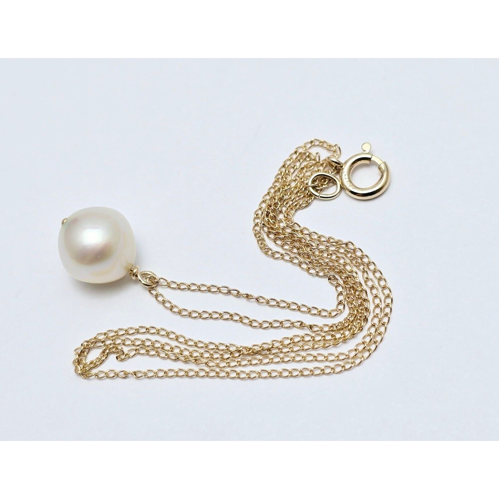 14K Yellow Gold Drop Down Pearl Charm Pendant Cable Link Chain Necklace