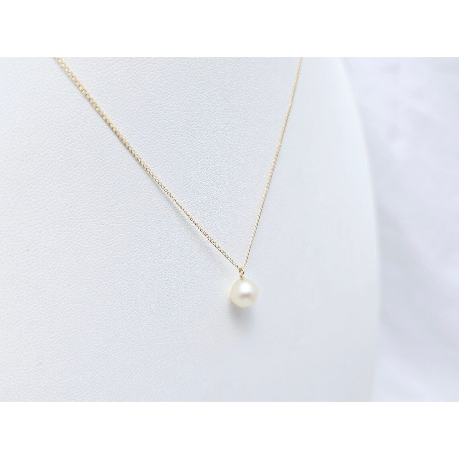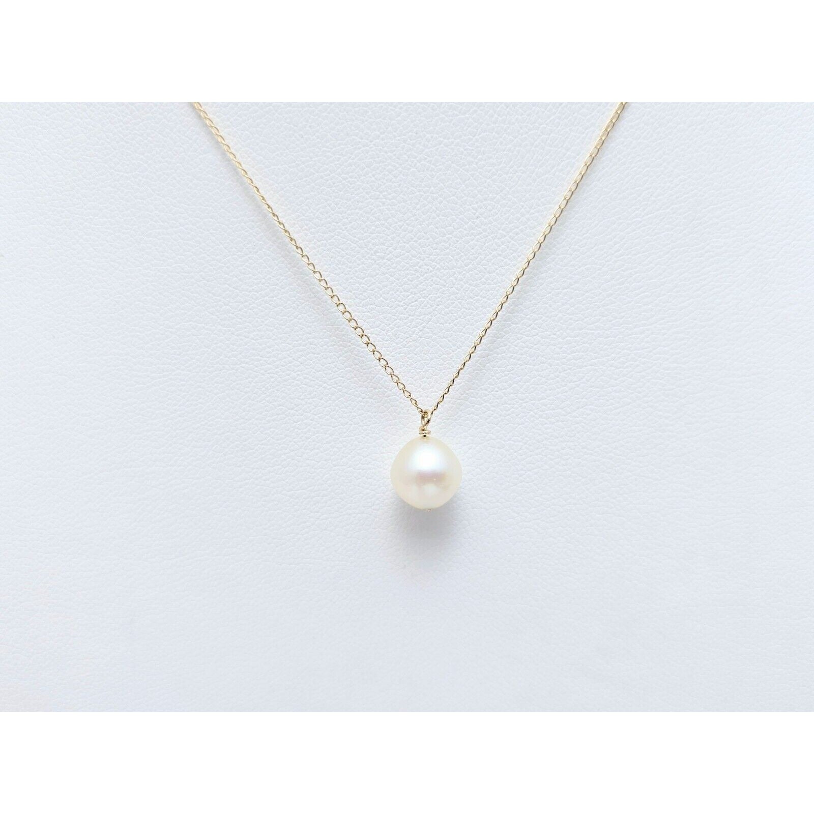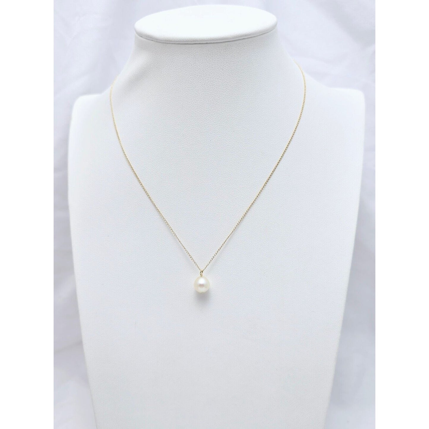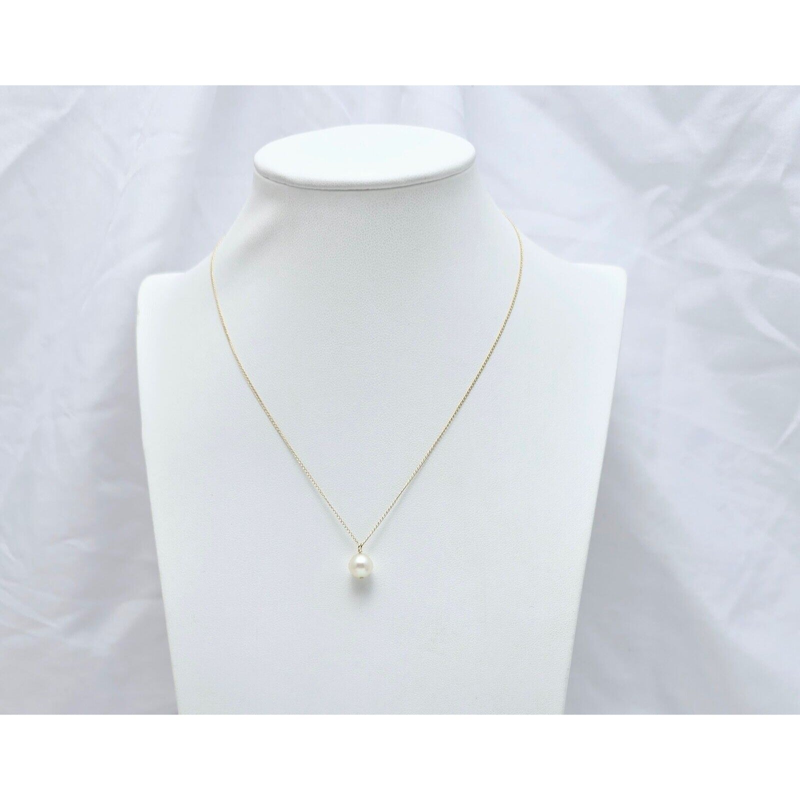 14K Yellow Gold Drop Down Pearl Charm Pendant Cable Link Chain Necklace