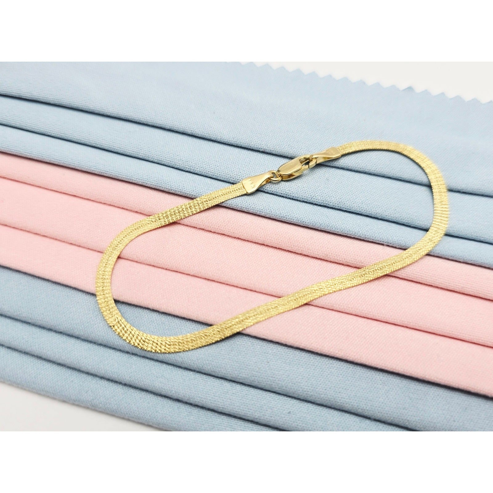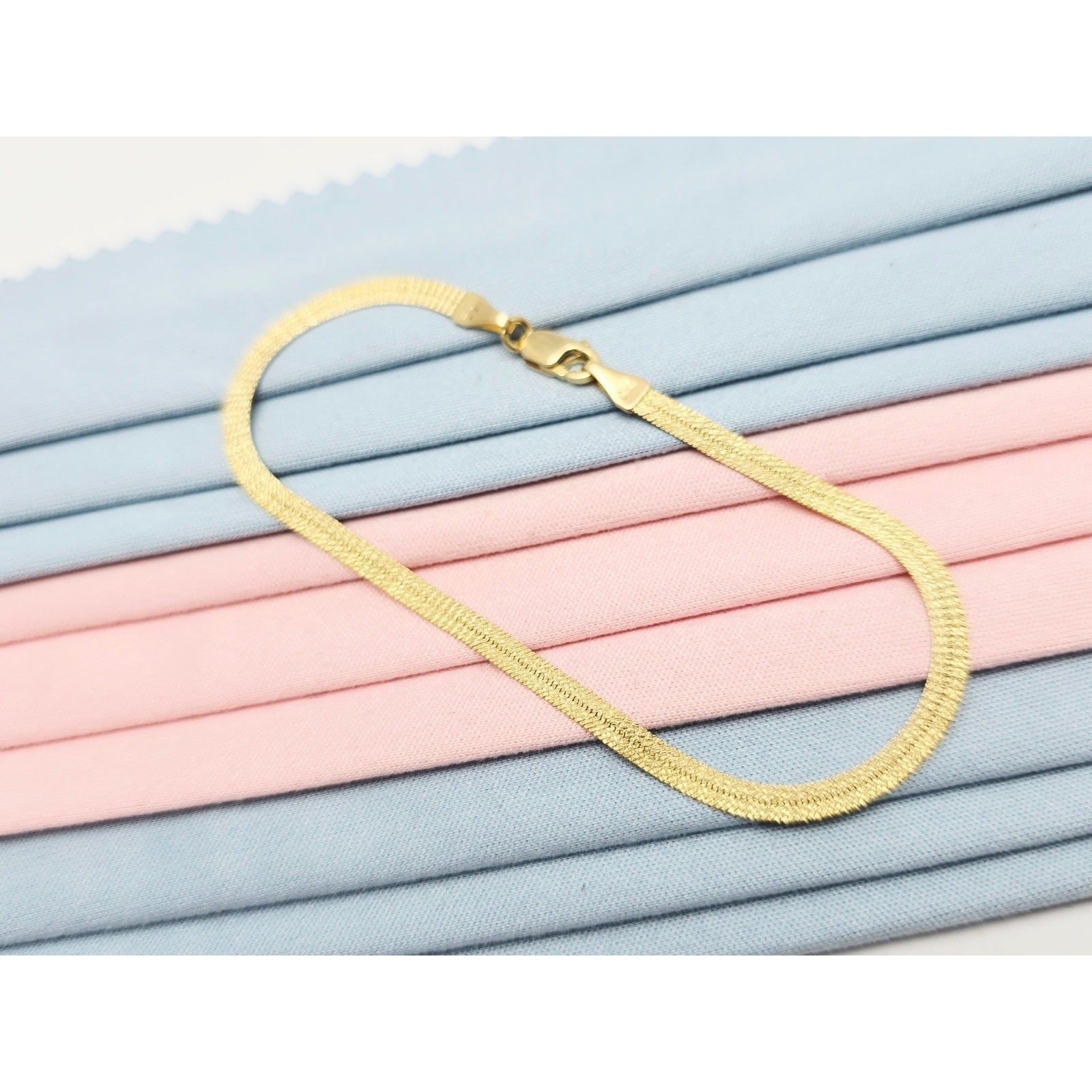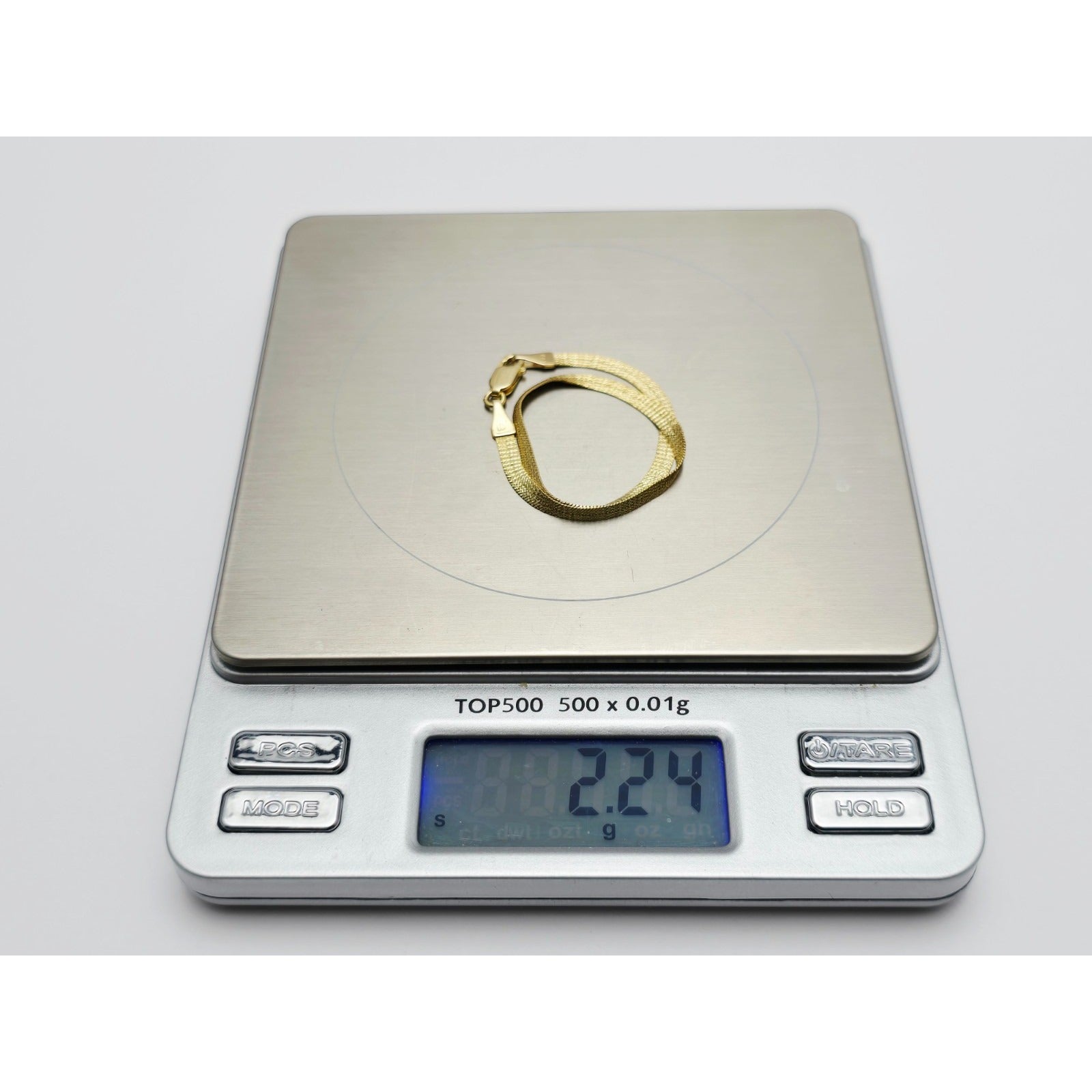 14K Yellow Gold Flat Mesh Herringbone Style Bracelet