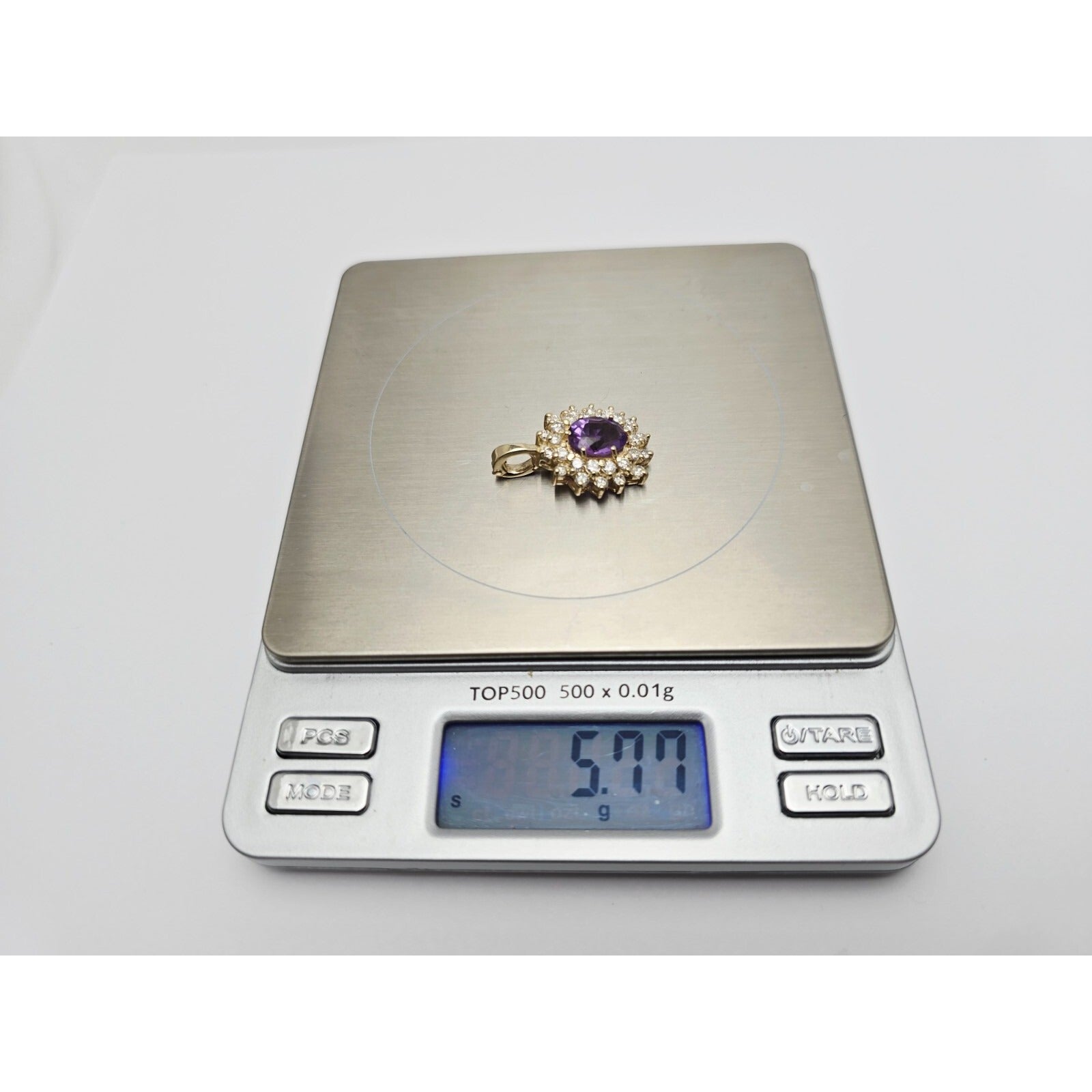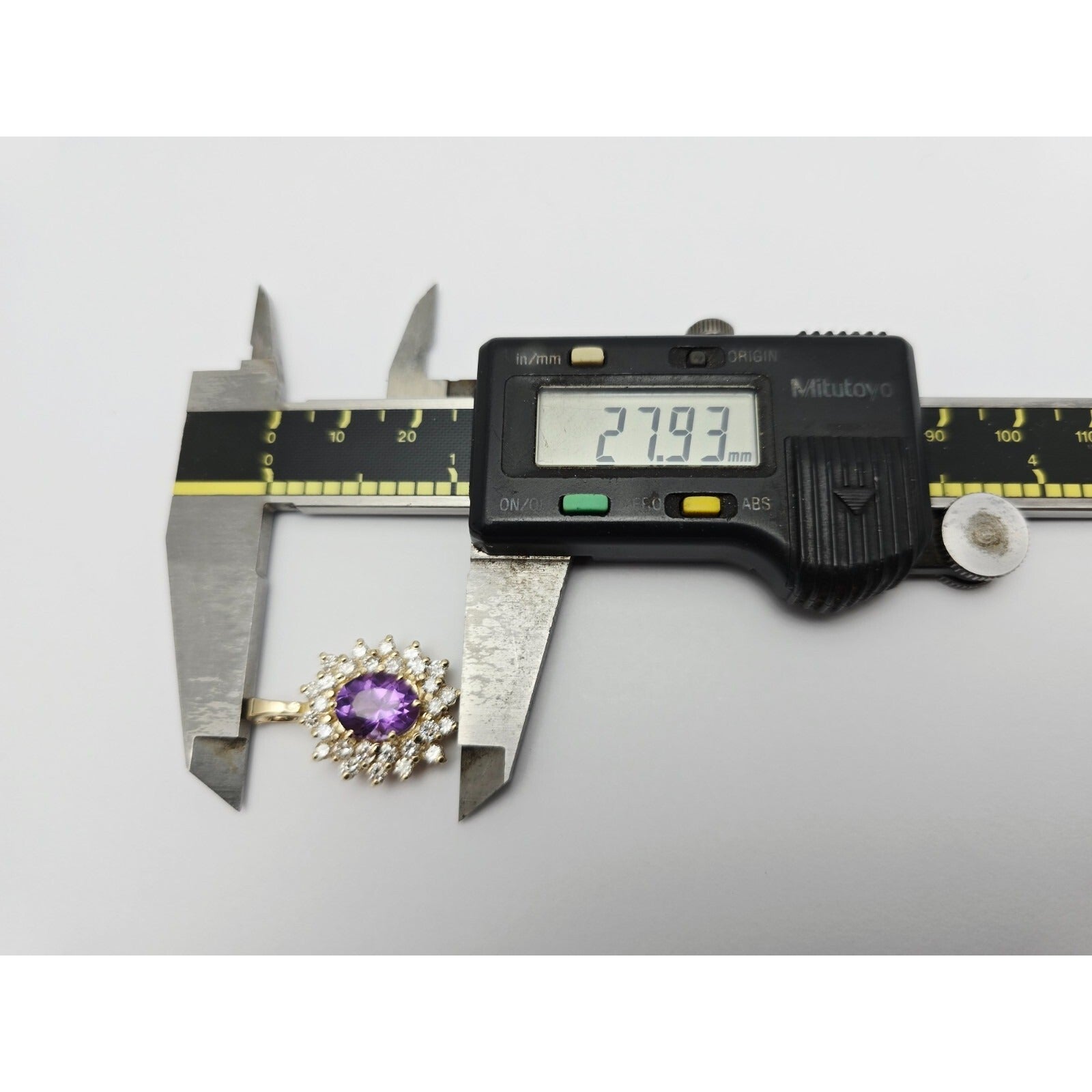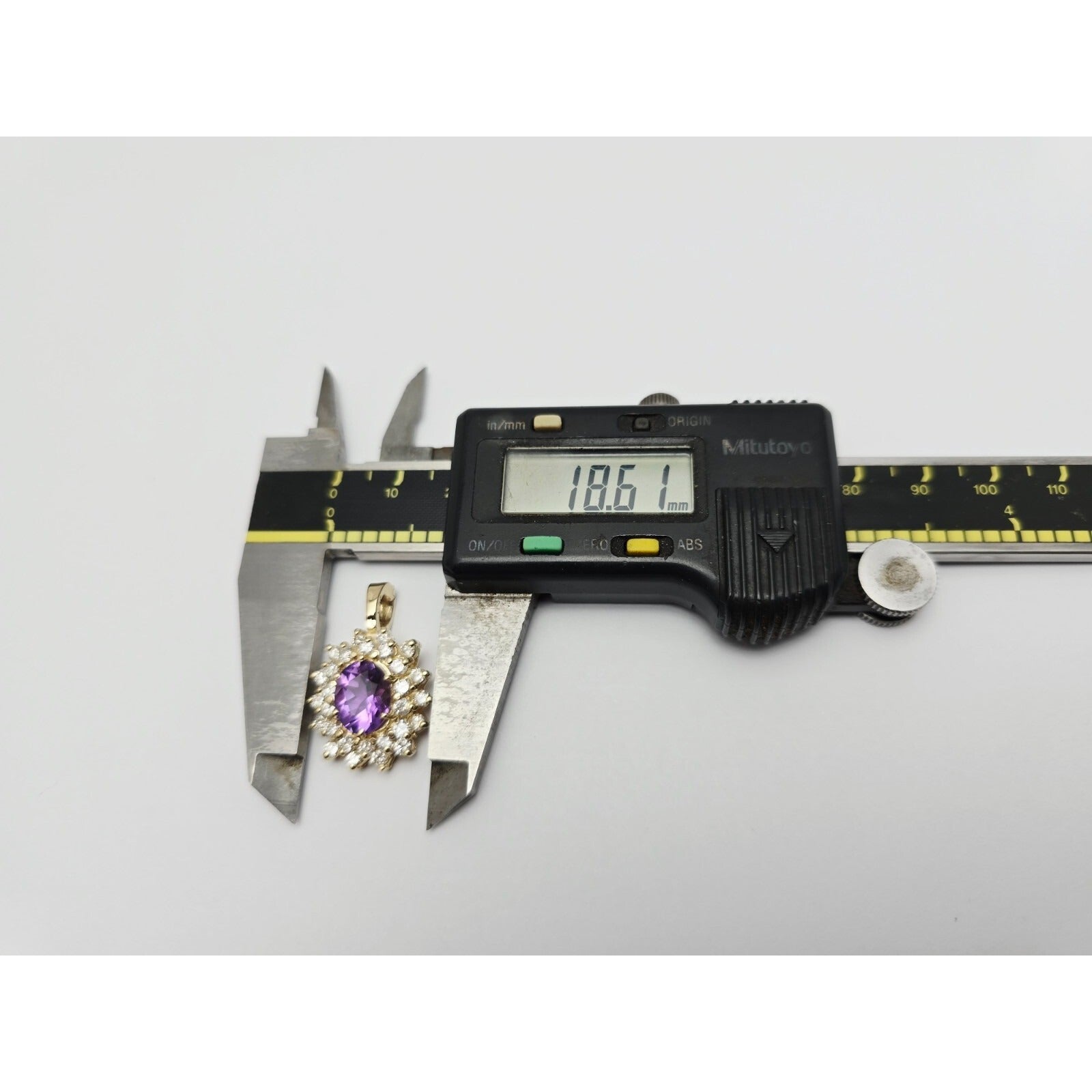 14K Yellow Gold Flower Halo Amethyst & Diamond Drop Charm Pendant