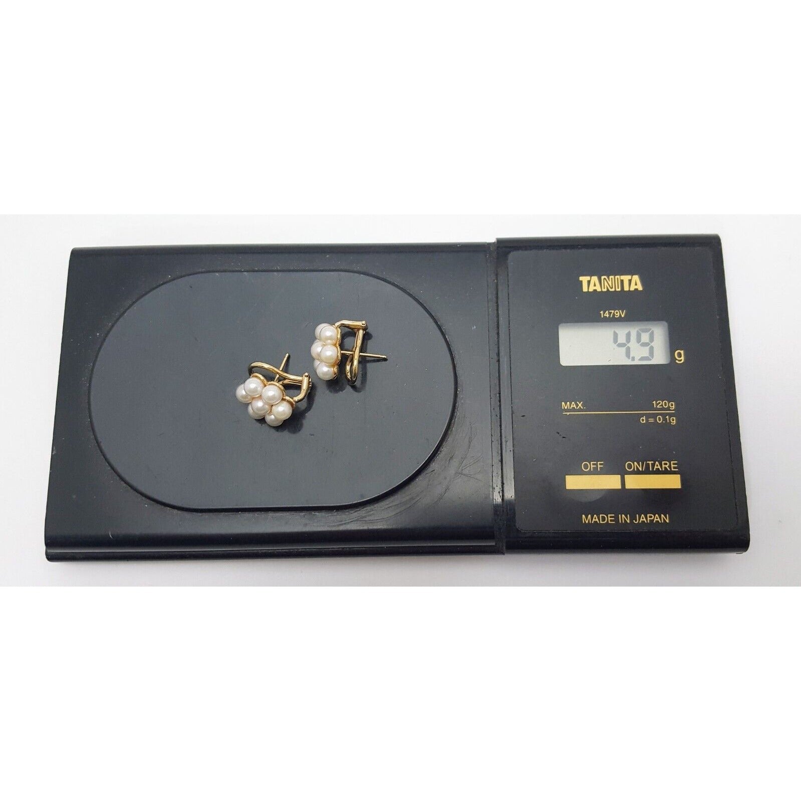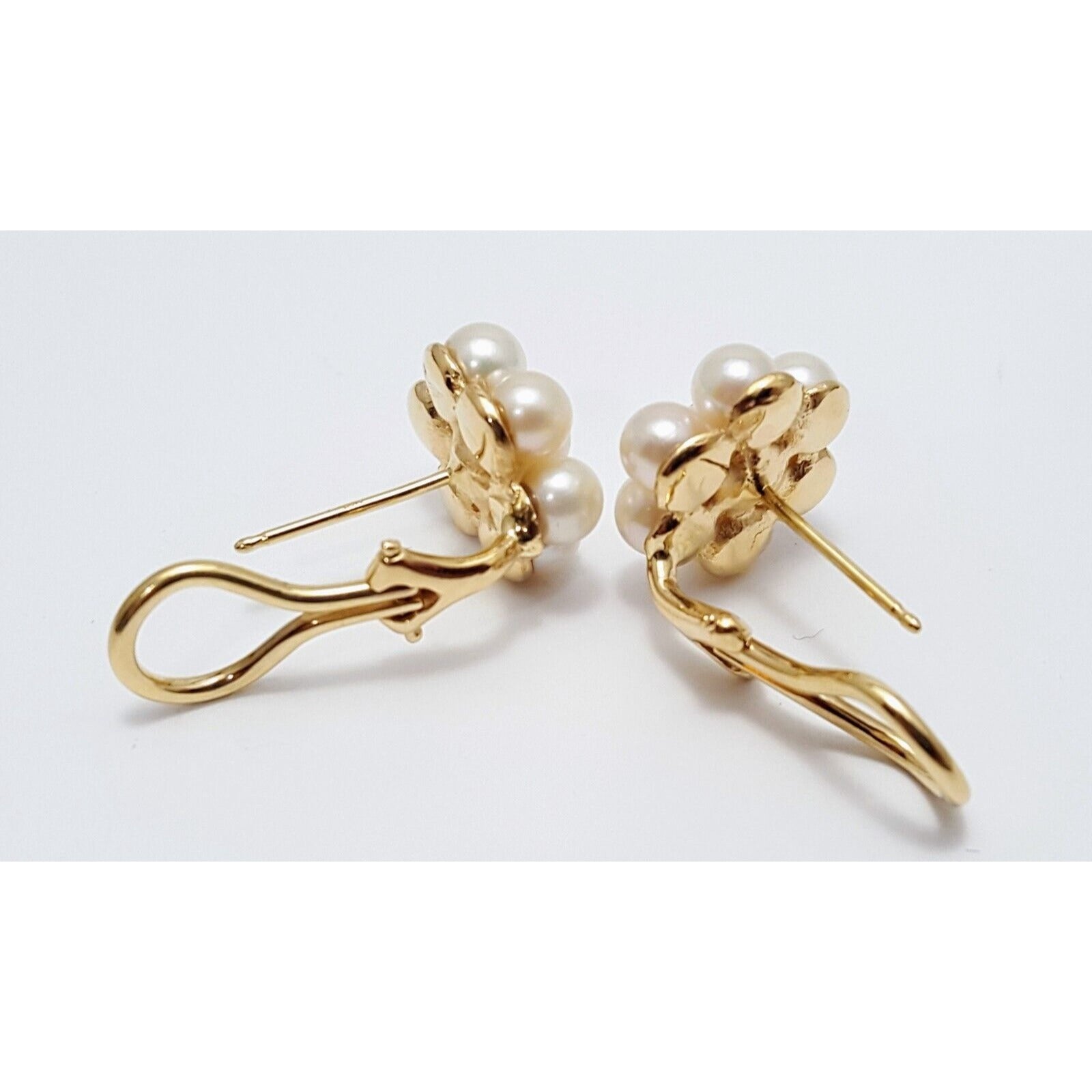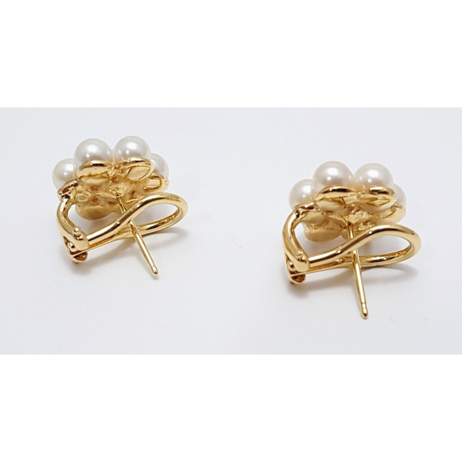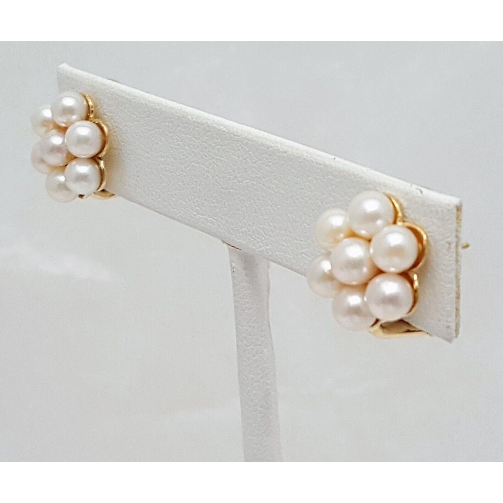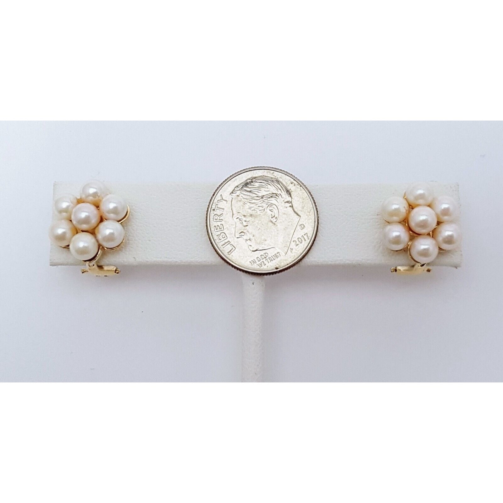 14K Yellow Gold Flower Pearl French Clip Earrings