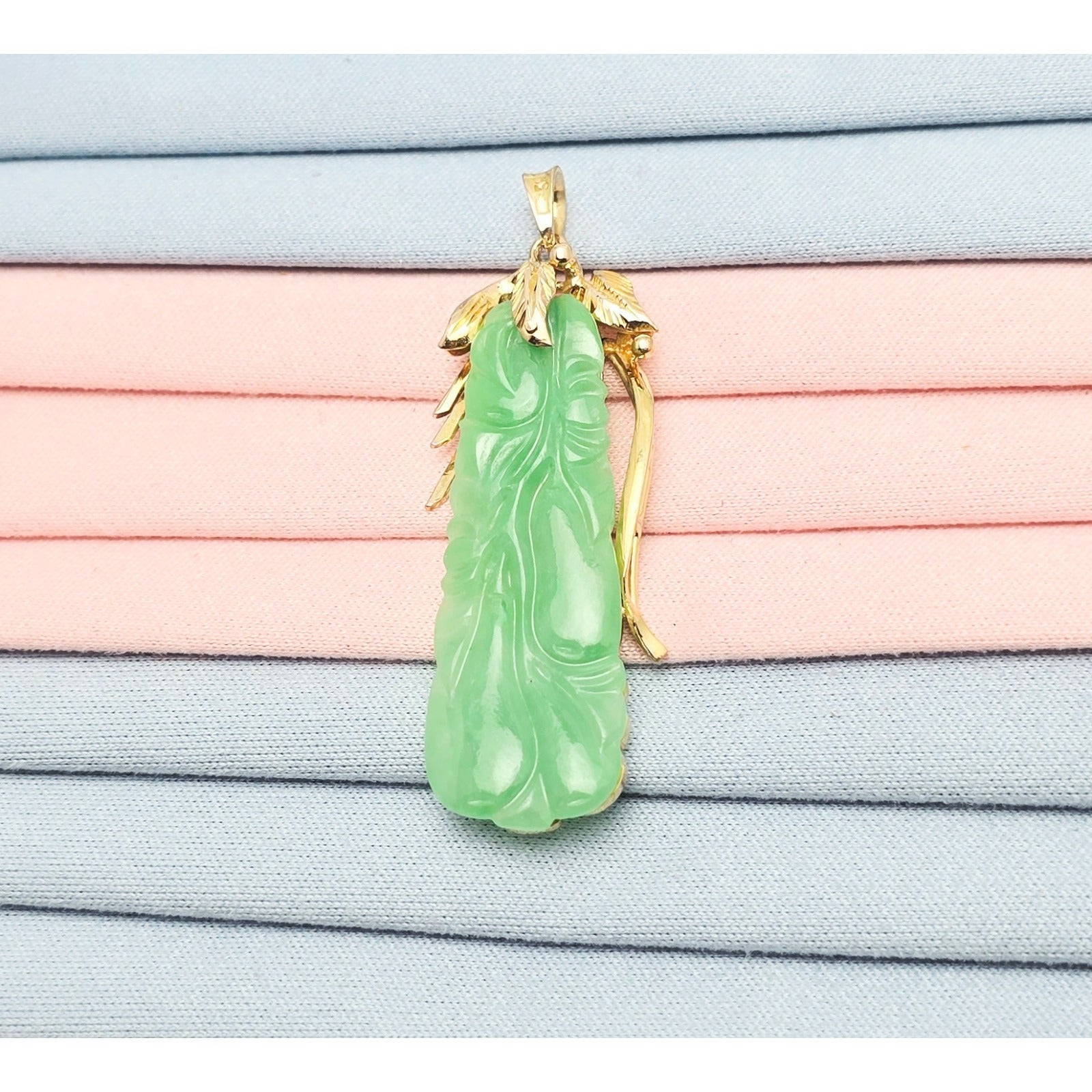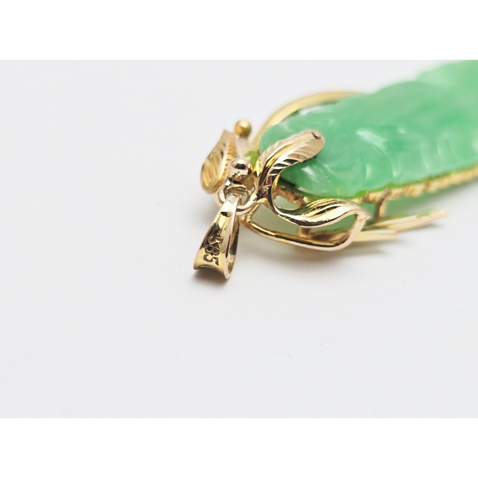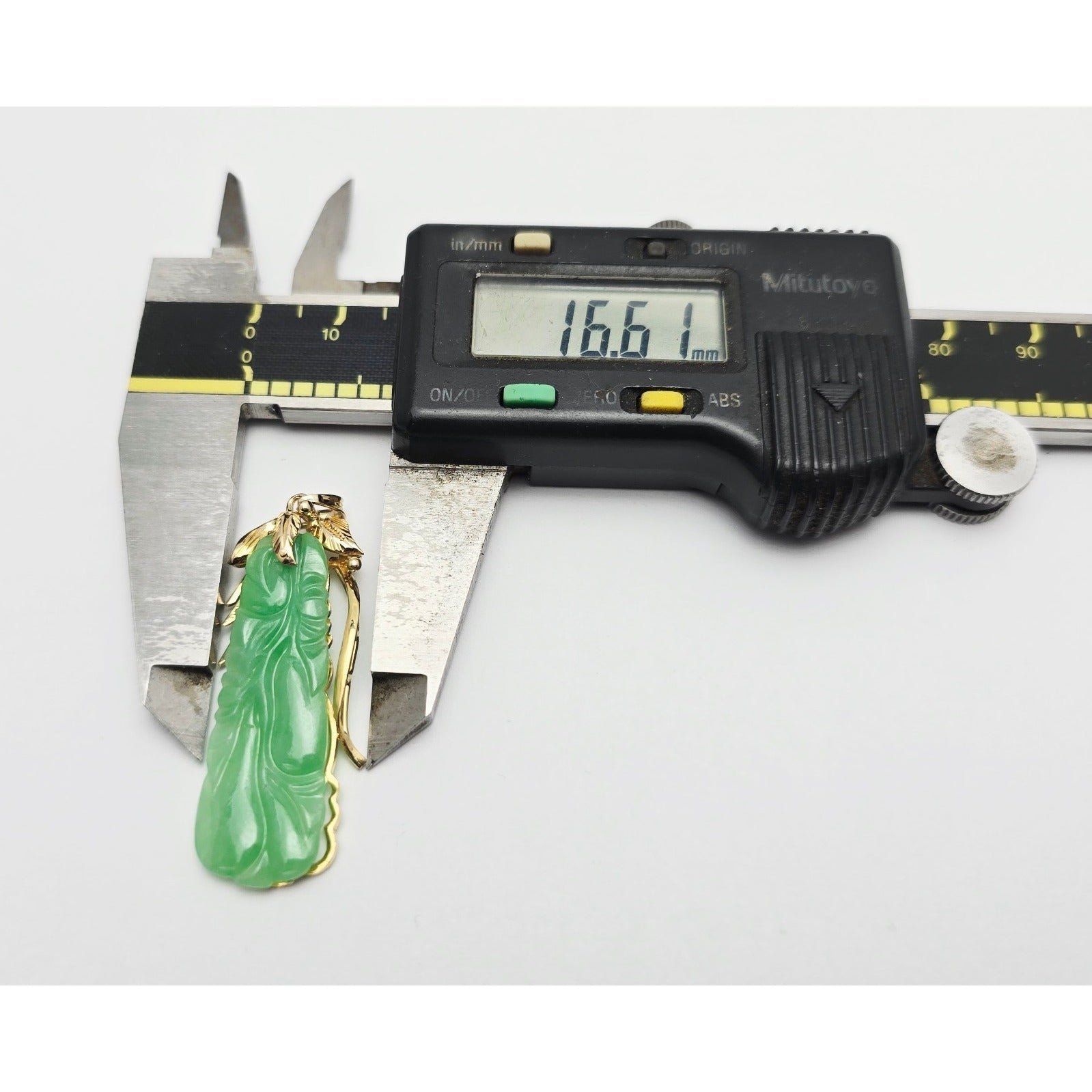 14K Yellow Gold Green Jadeite Jade Carved Floral Charm Pendant