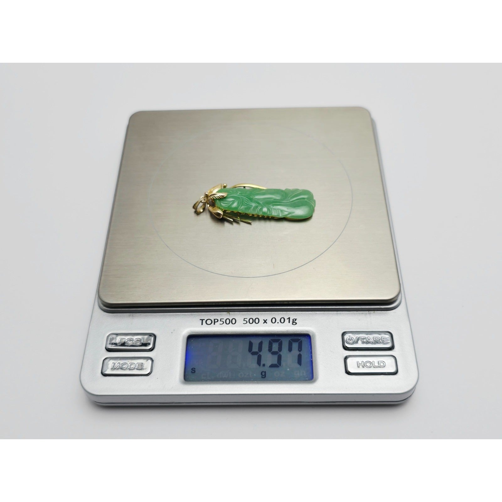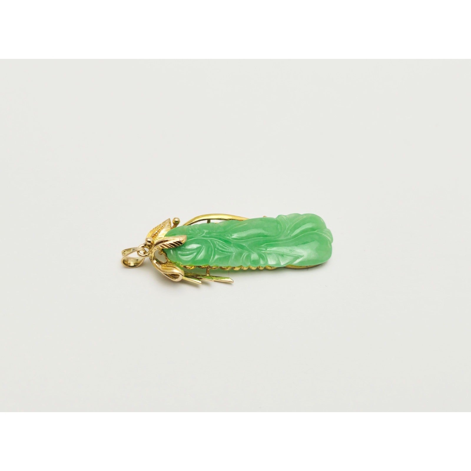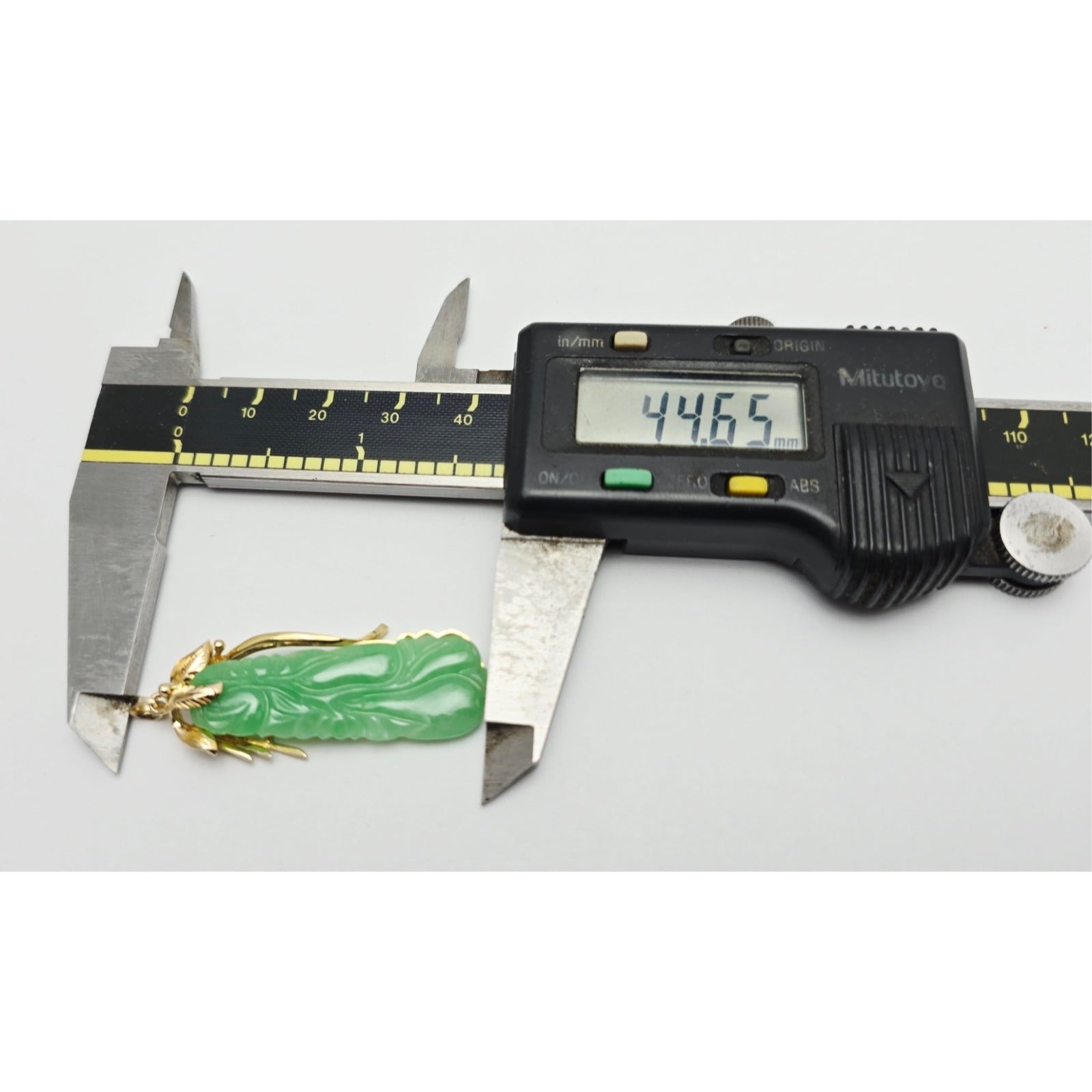 14K Yellow Gold Green Jadeite Jade Carved Floral Charm Pendant
