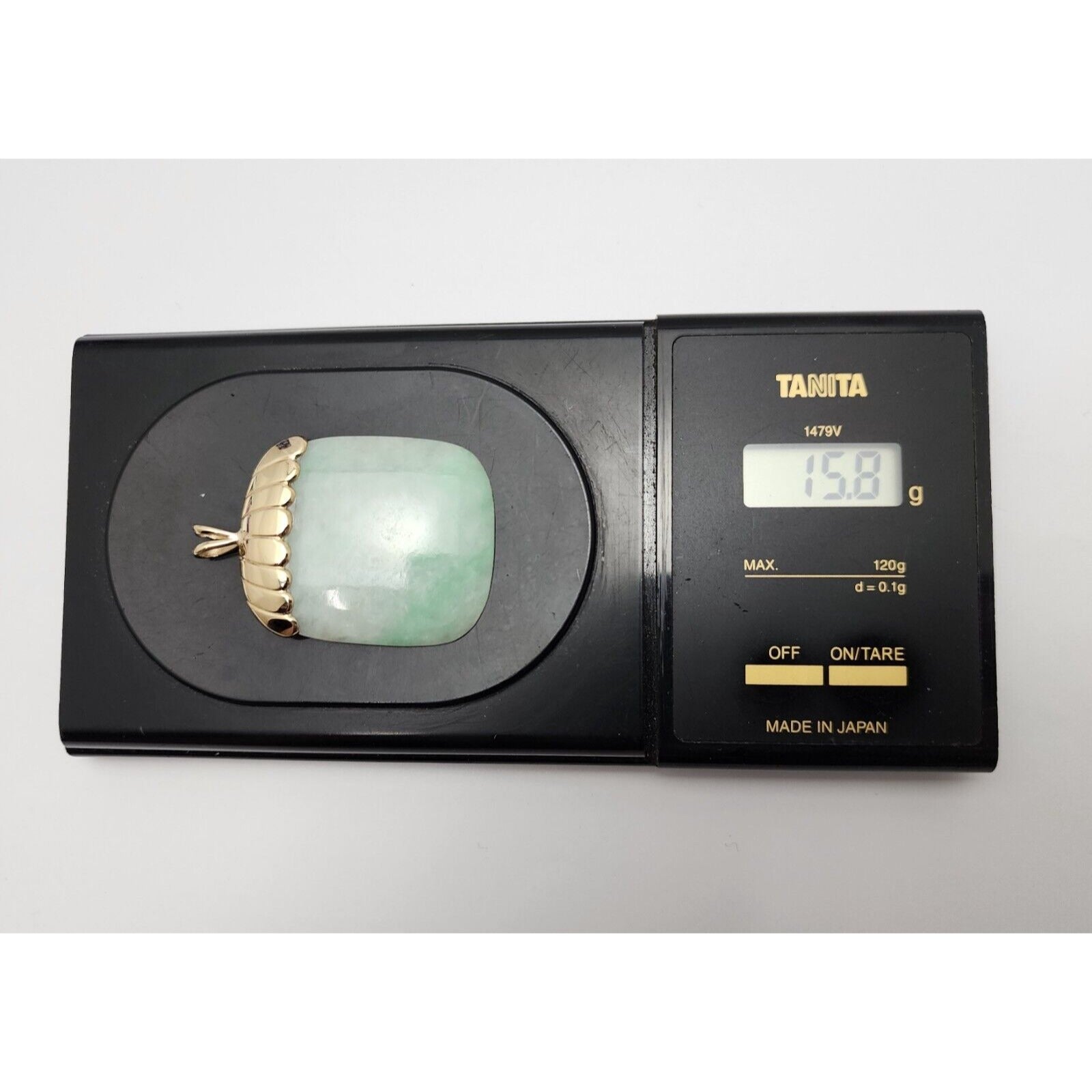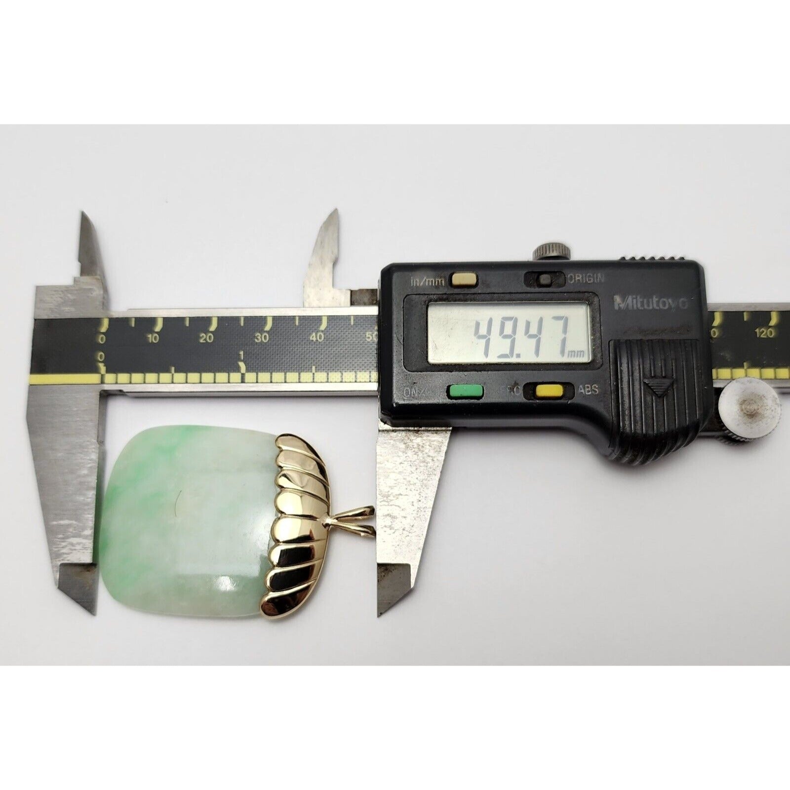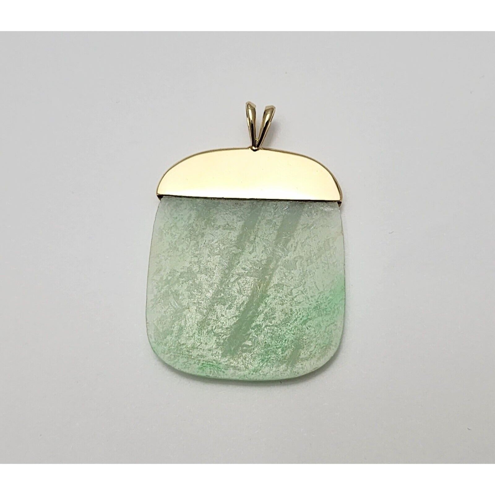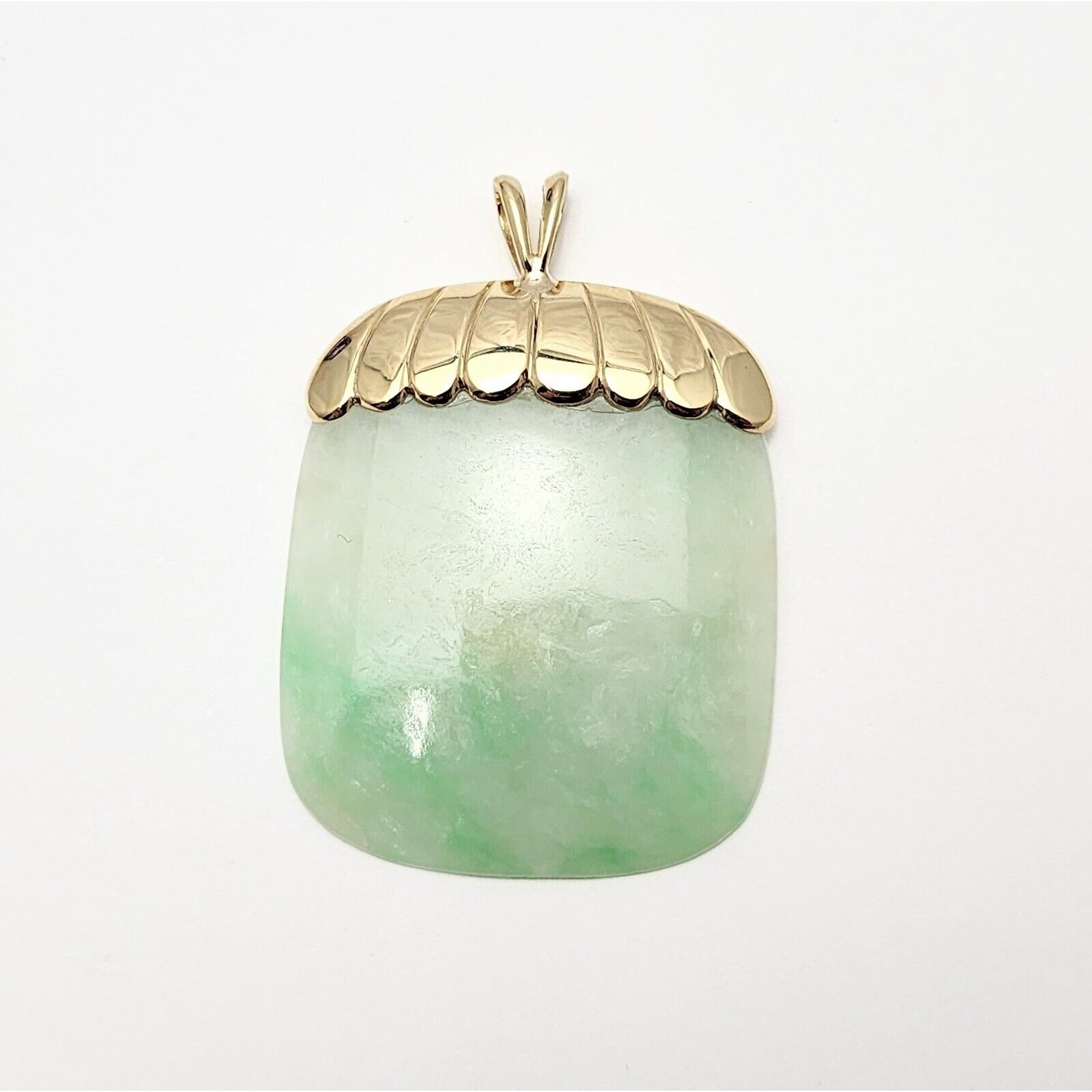 14K Yellow Gold Green Jadeite Jade Flat Charm Pendant