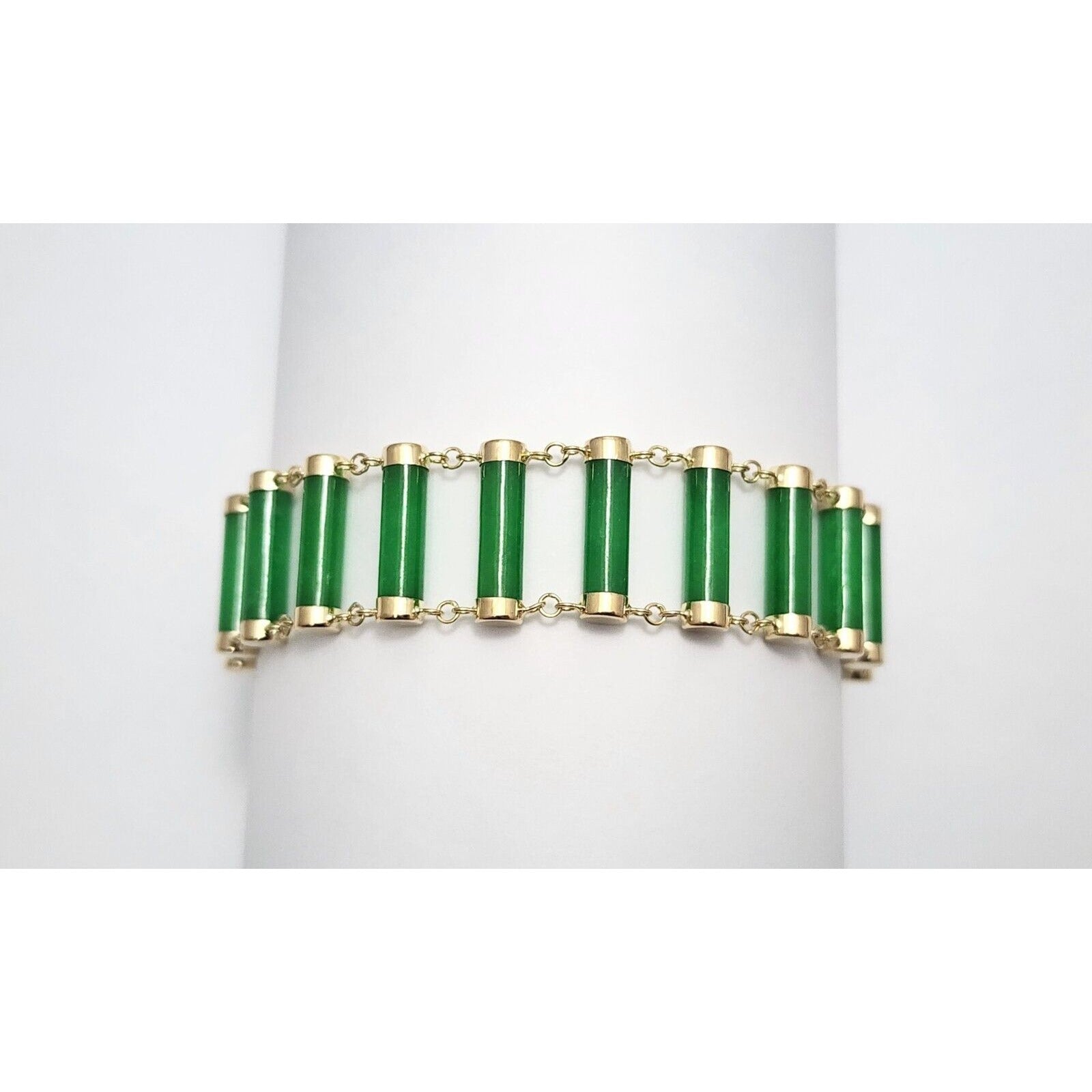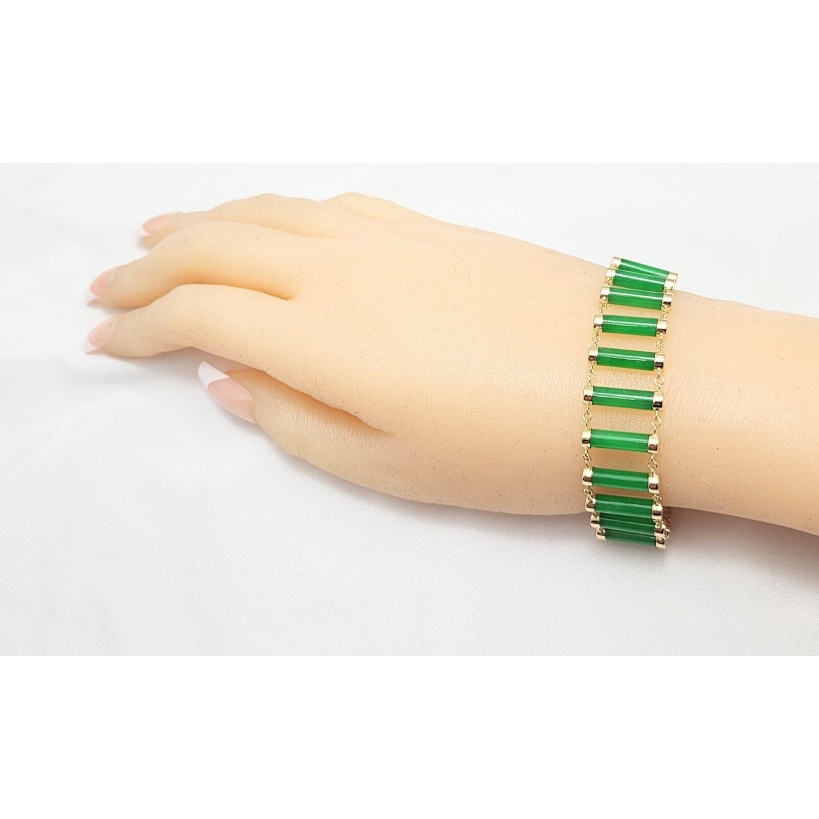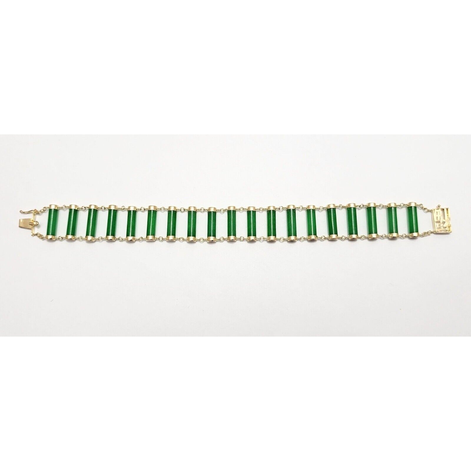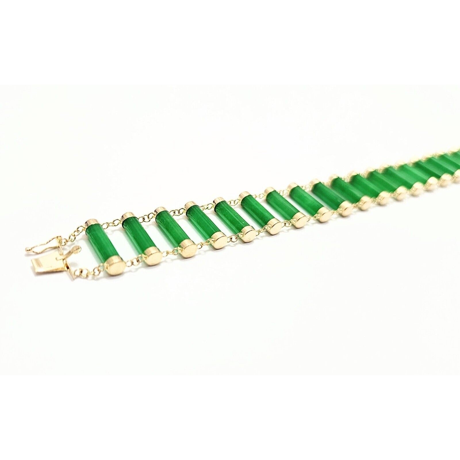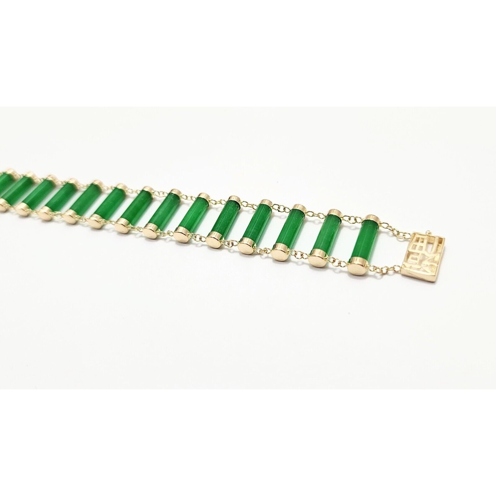 14K Yellow Gold Green Jadeite Jade Link Bracelet