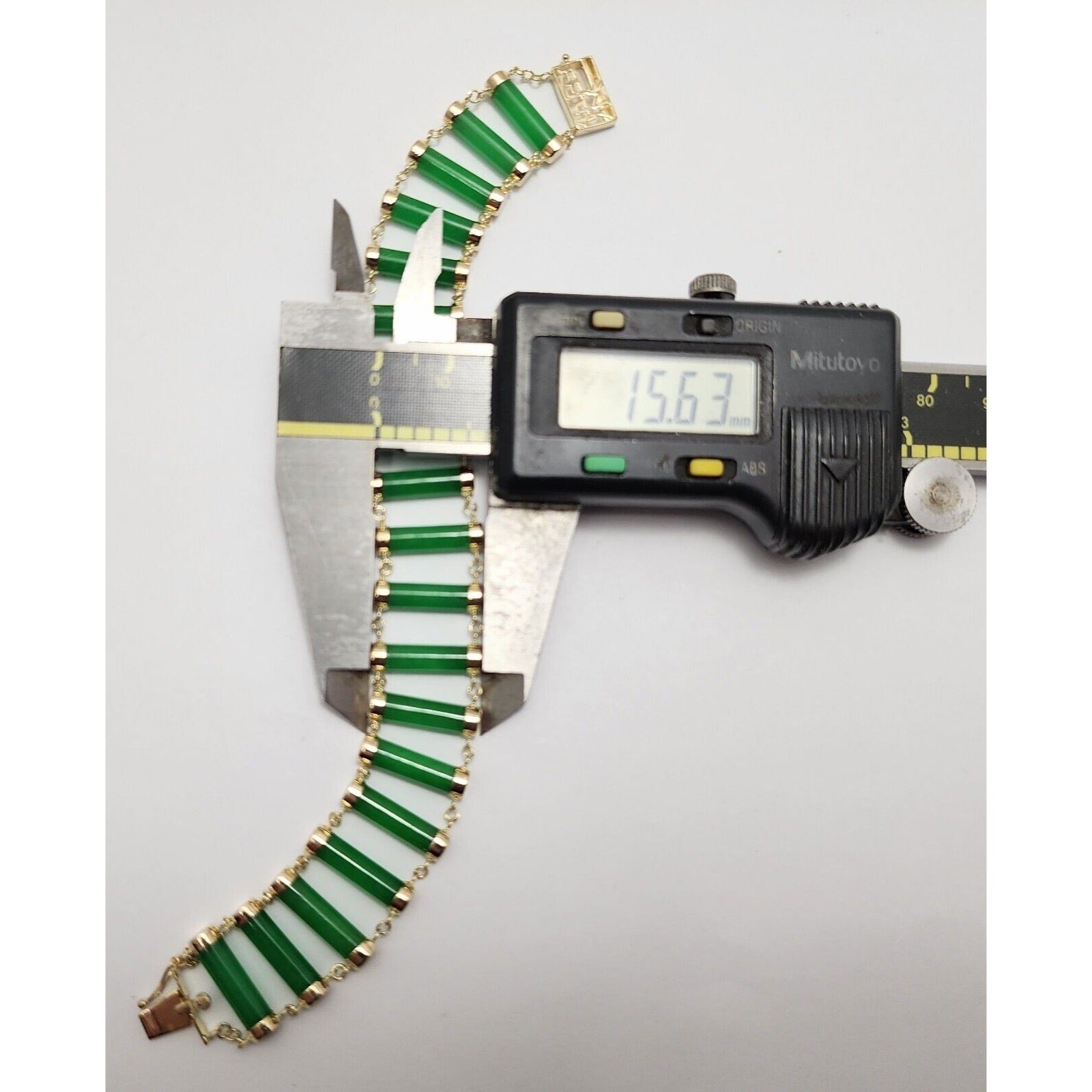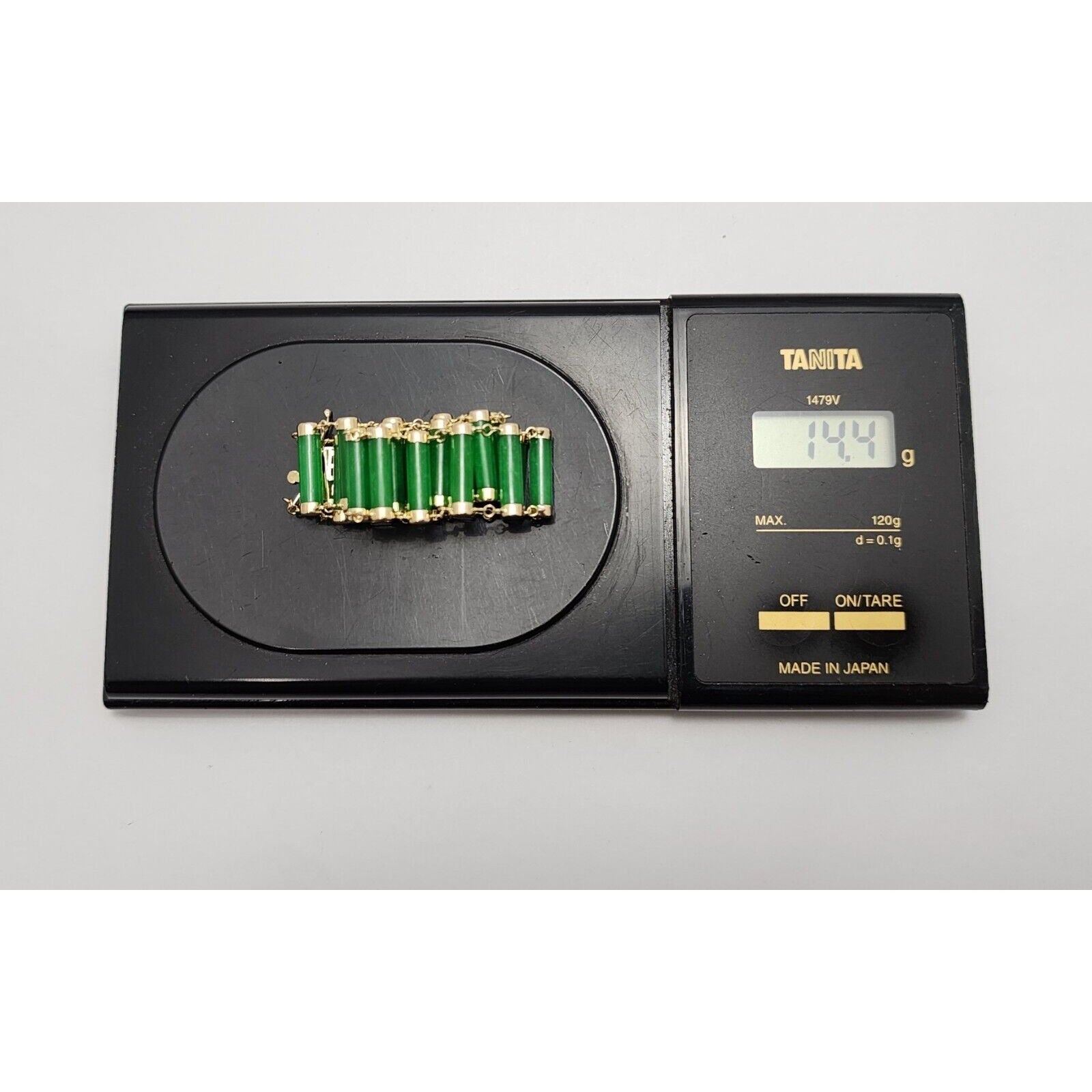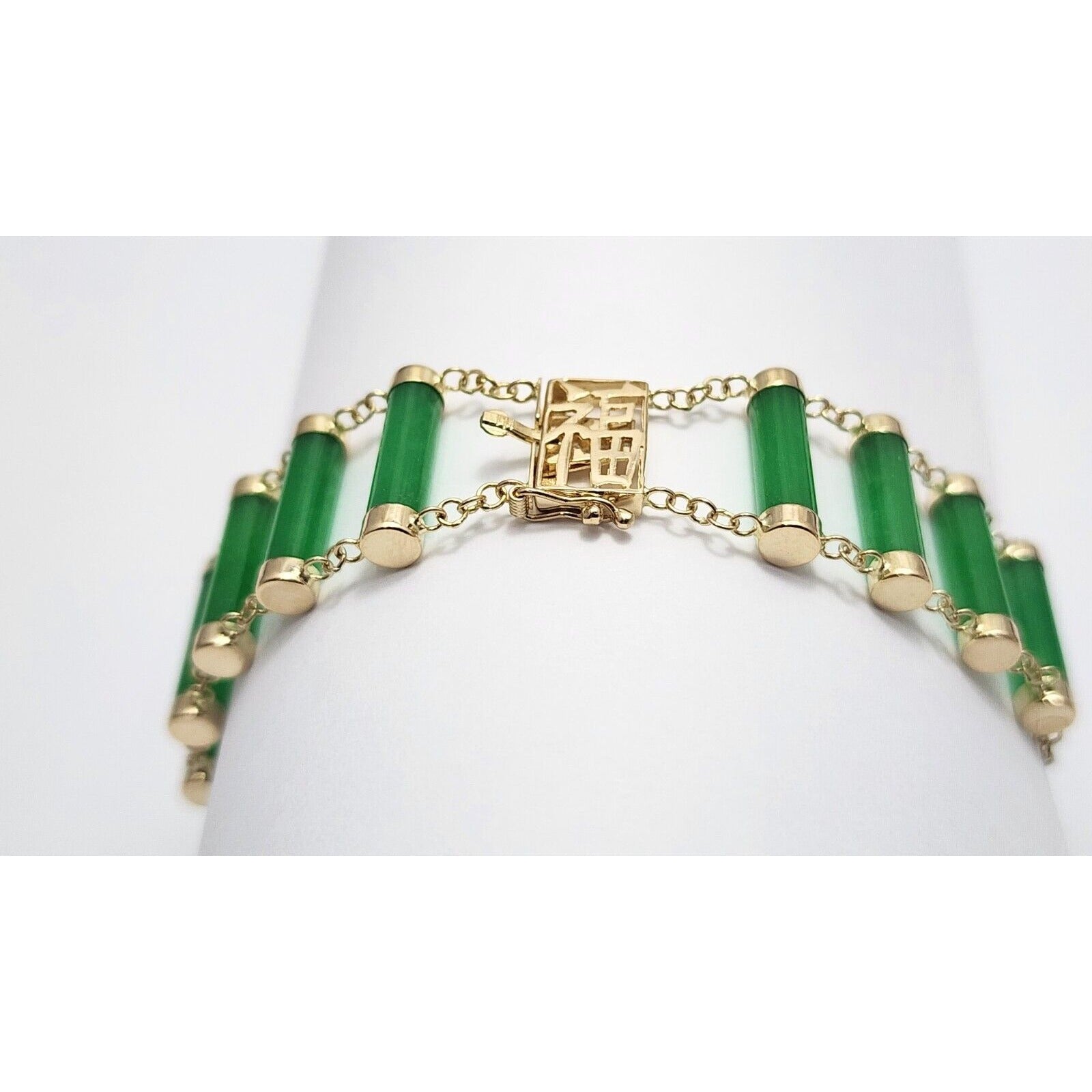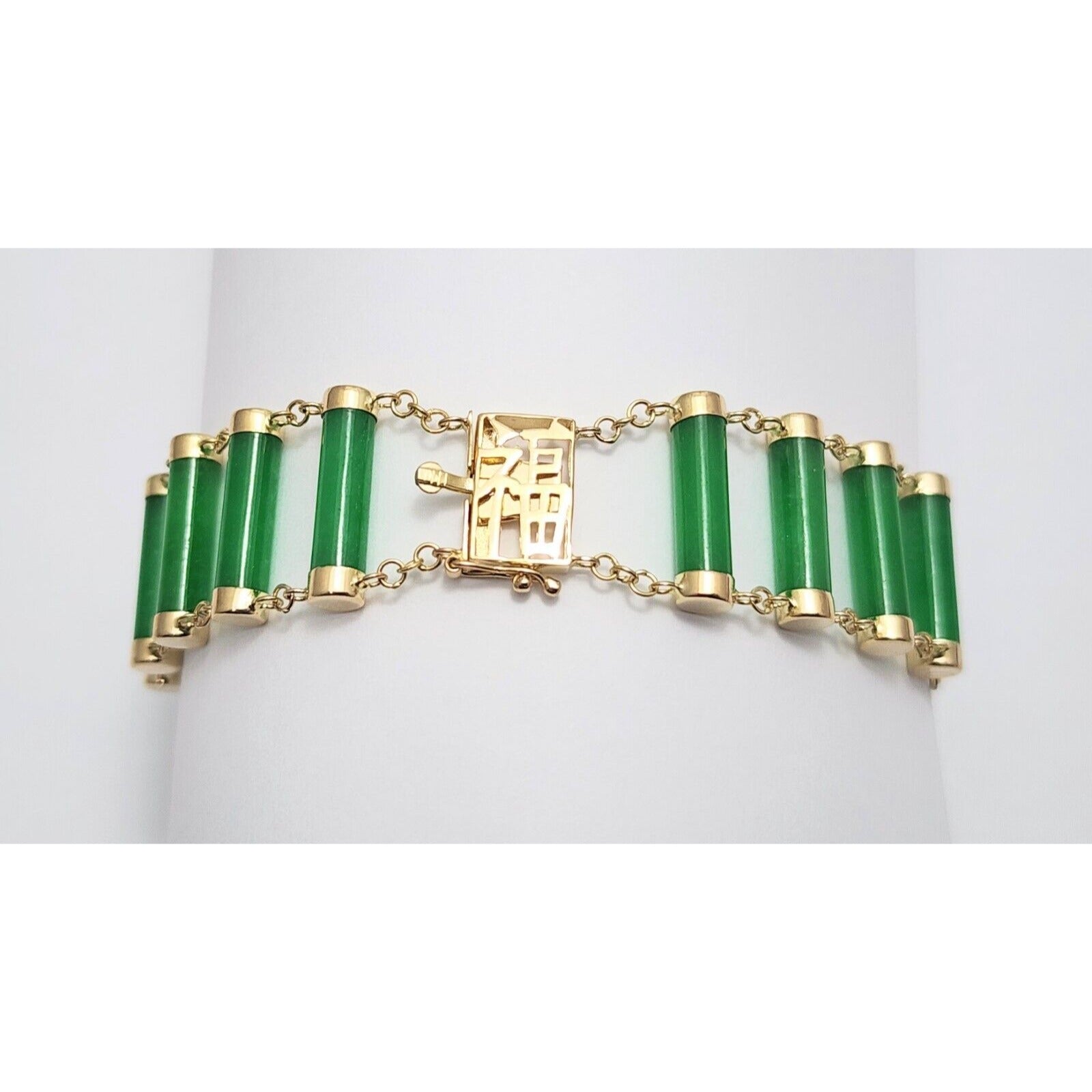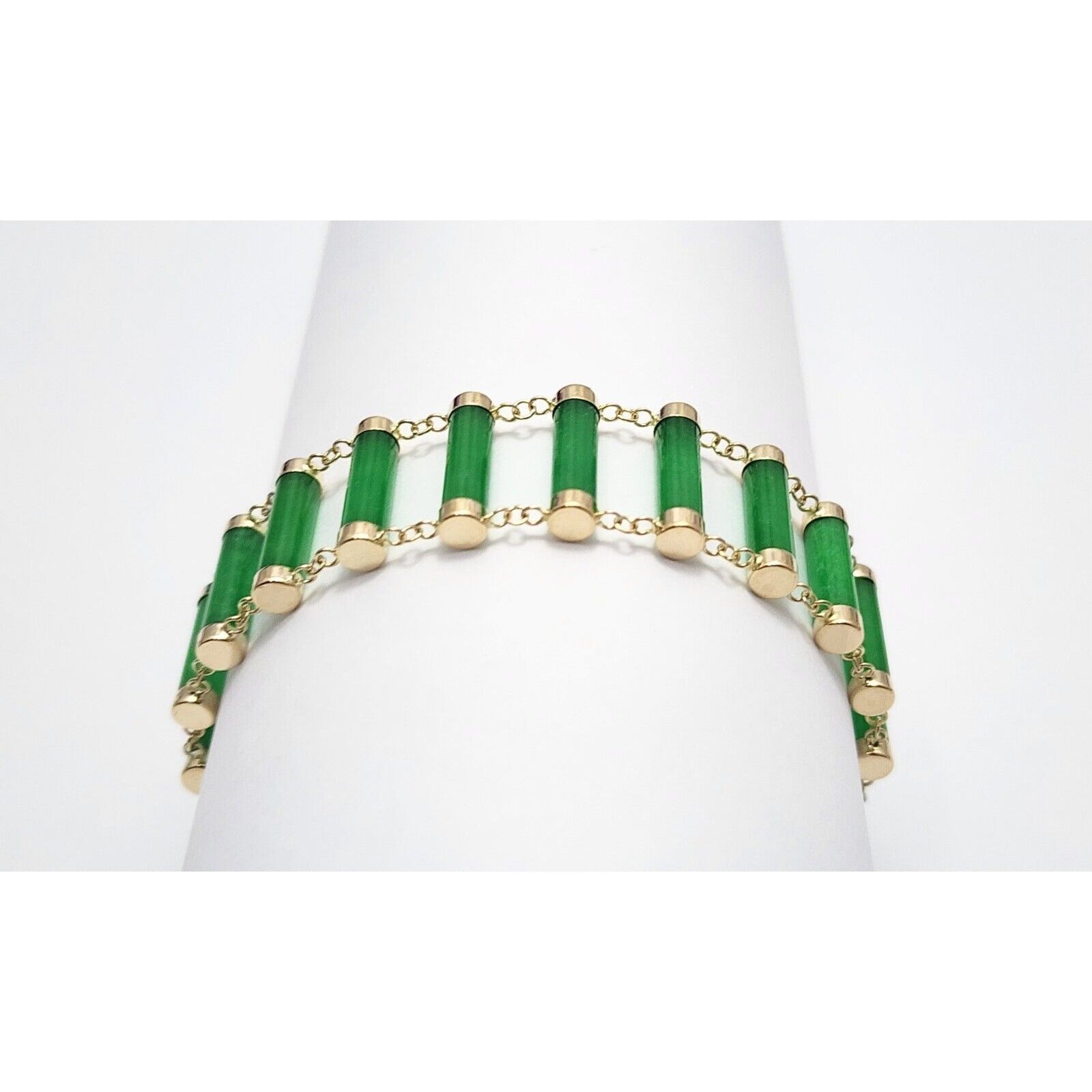 14K Yellow Gold Green Jadeite Jade Link Bracelet