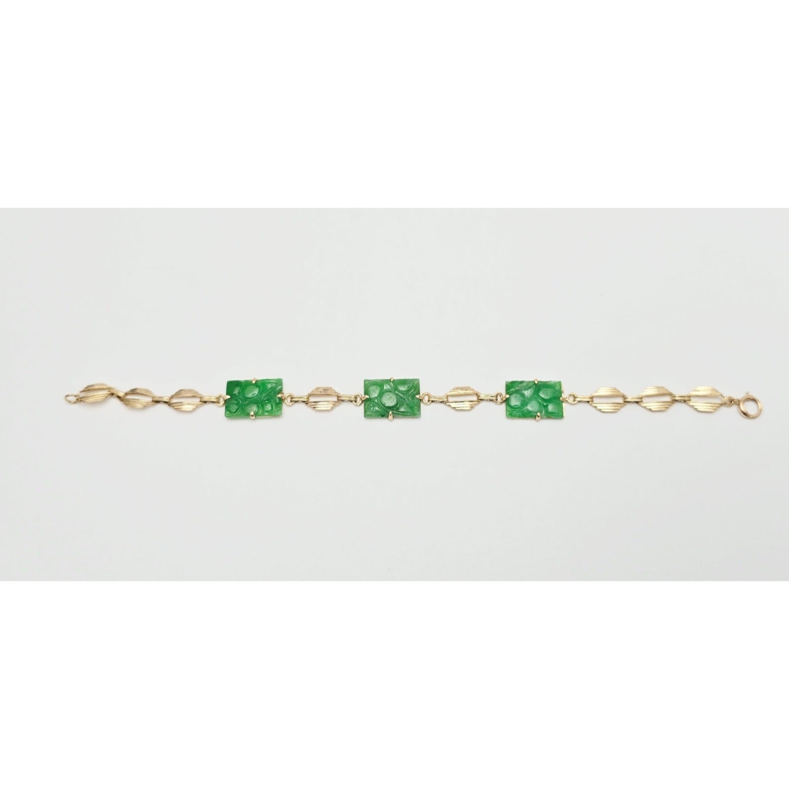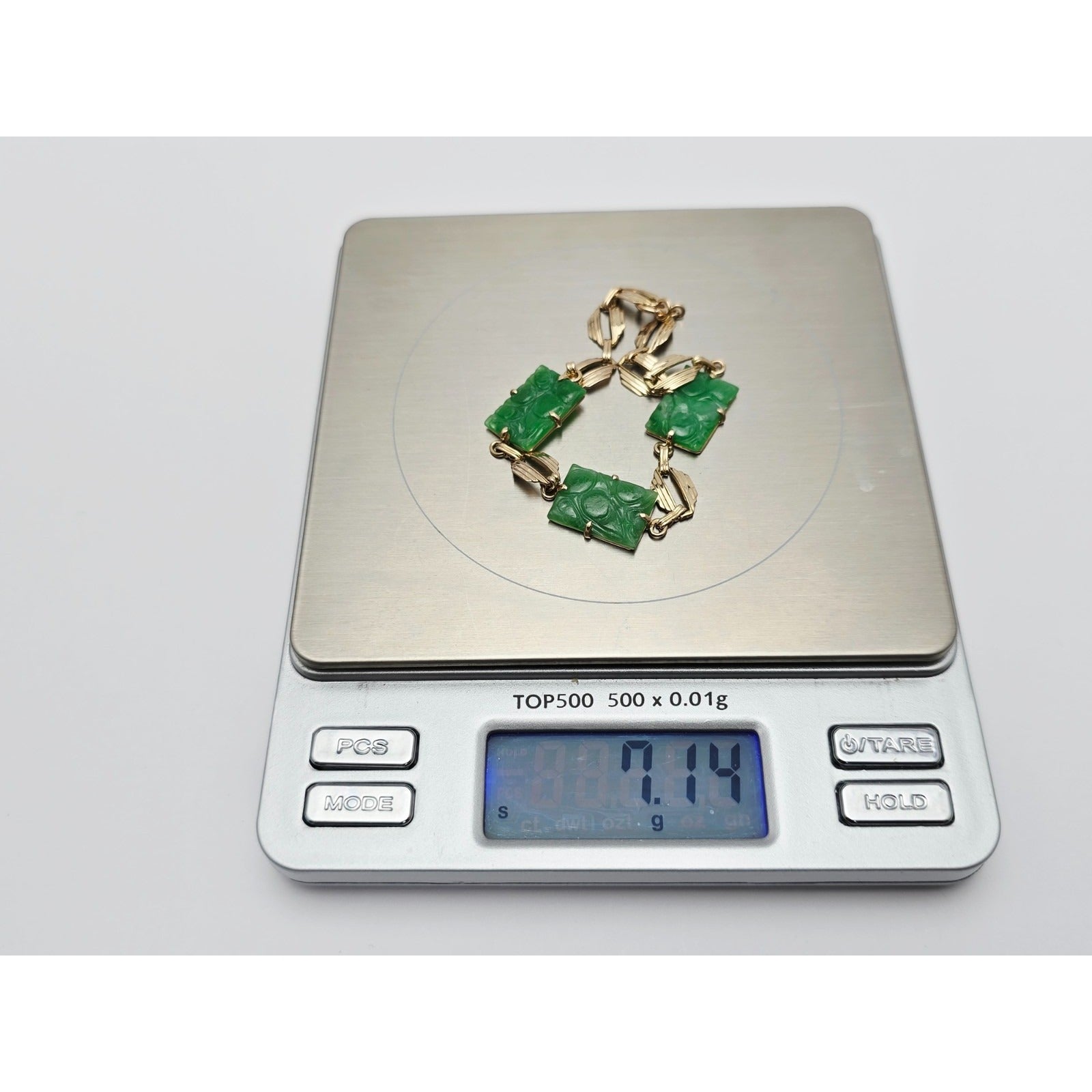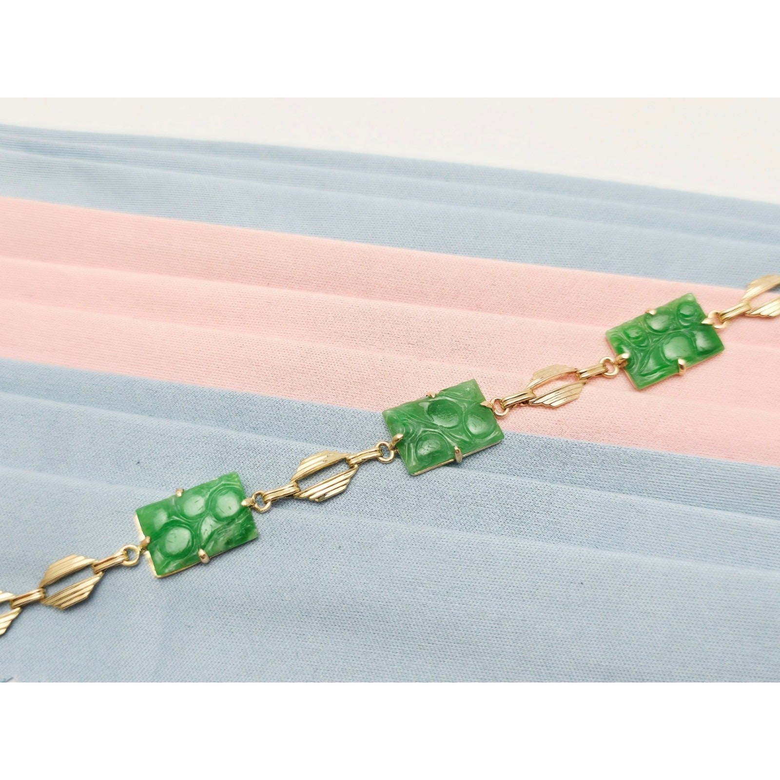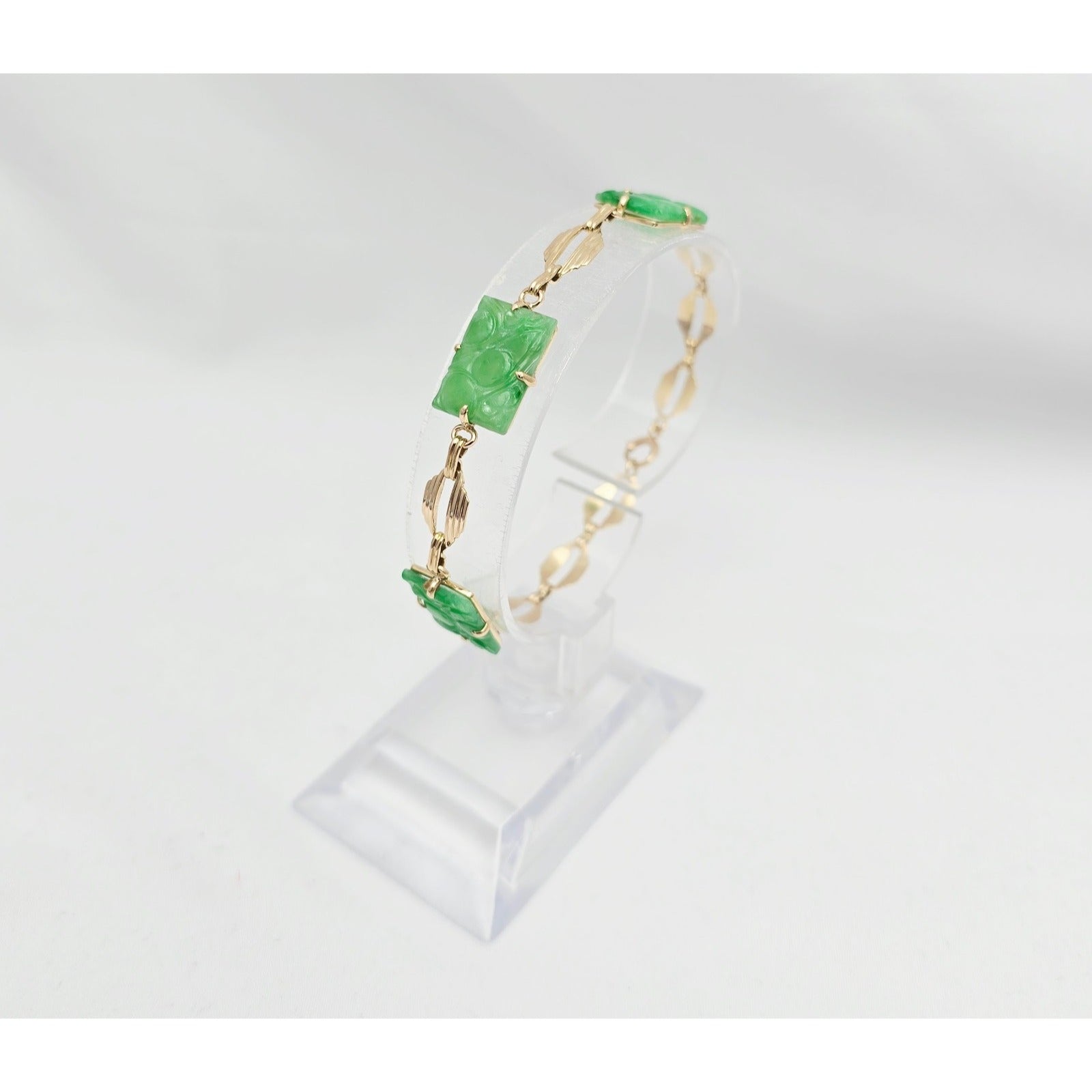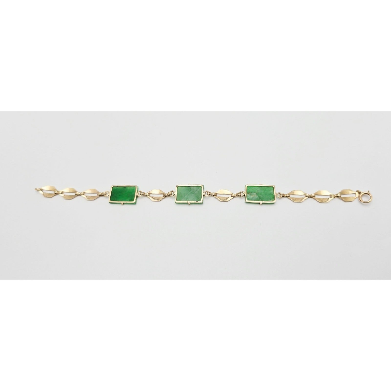 14K Yellow Gold Green Jadeite Jade Link Bracelet