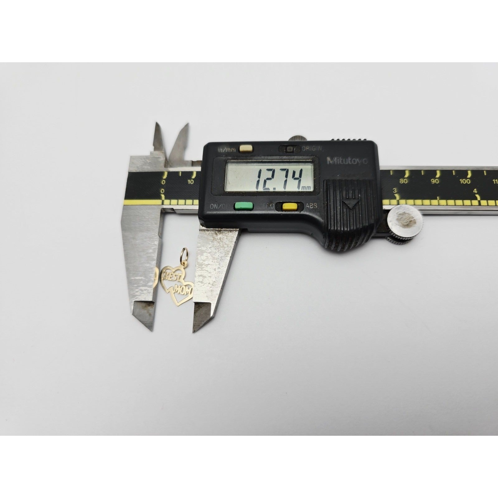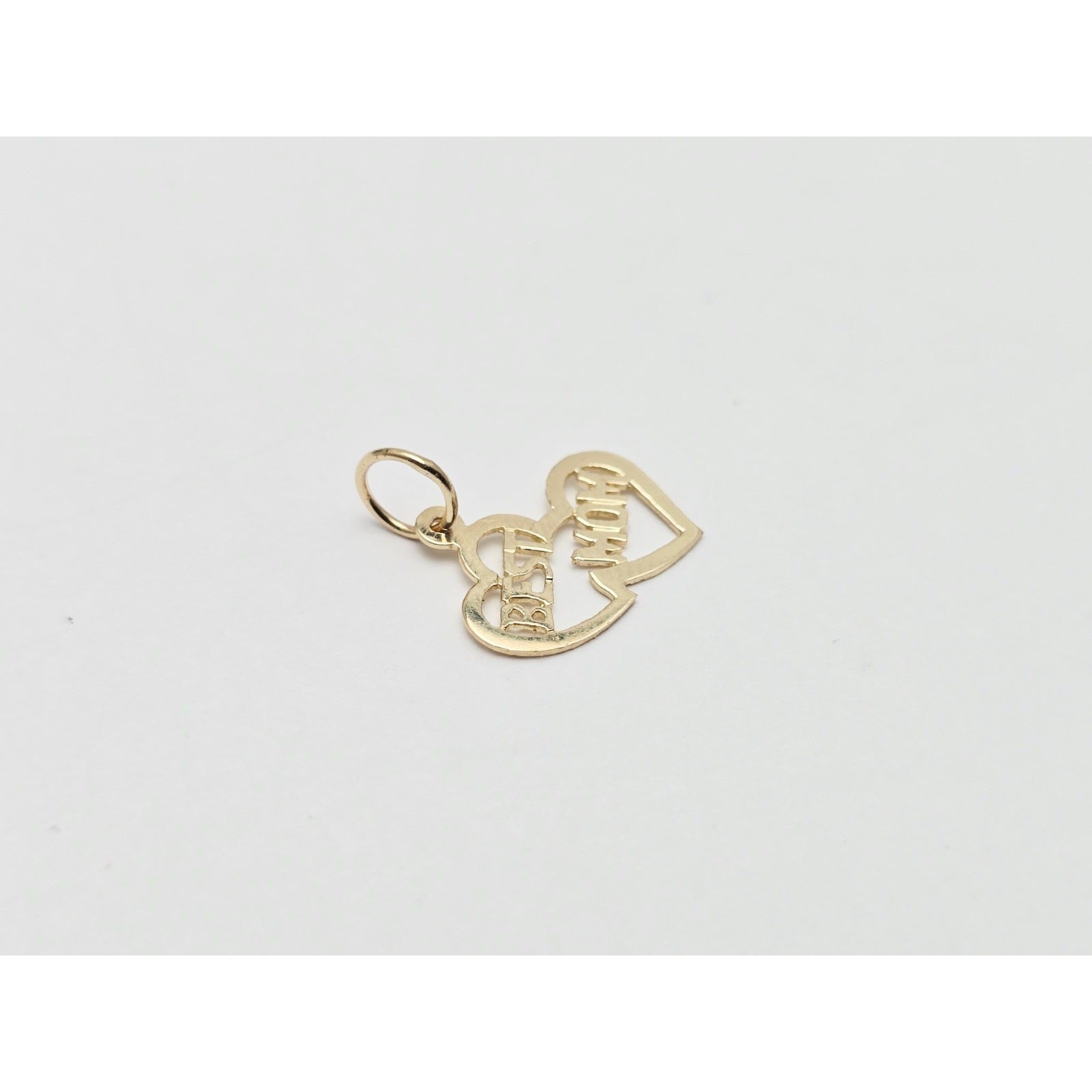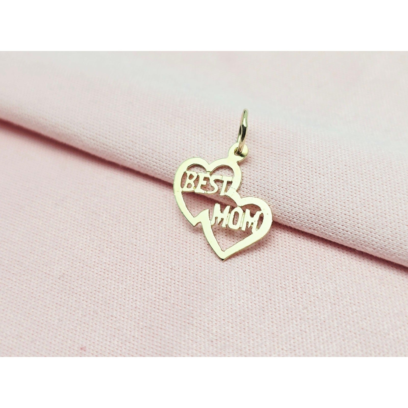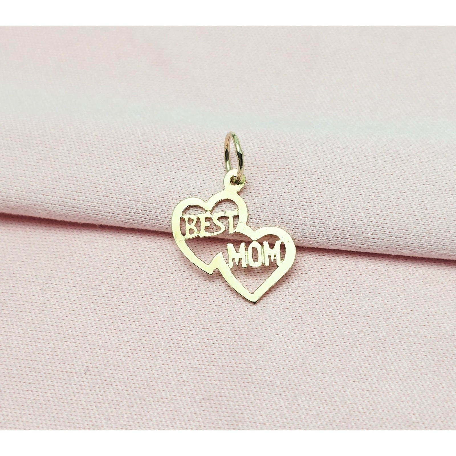 14K Yellow Gold Initial Best Mom Double Heart Charm Pendant