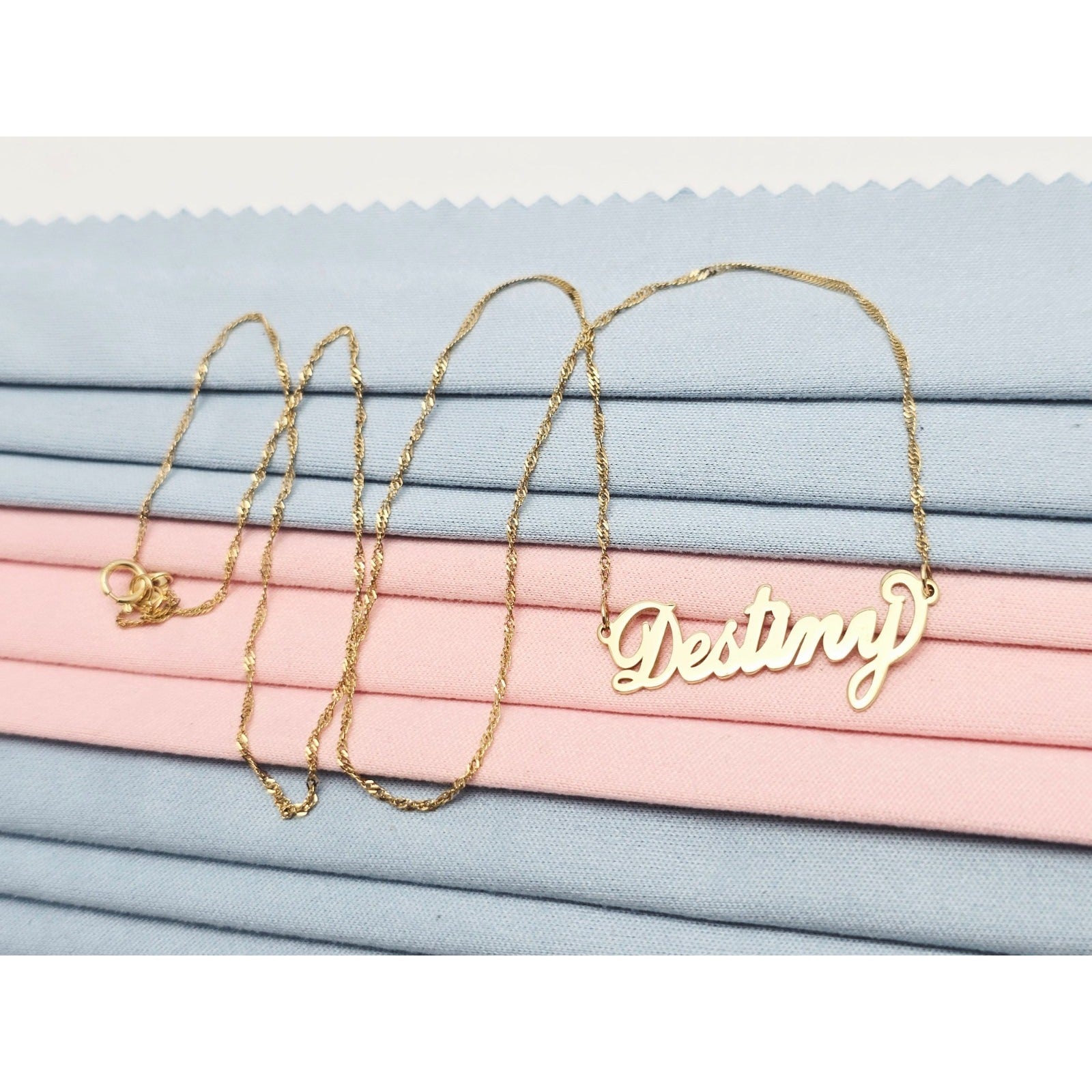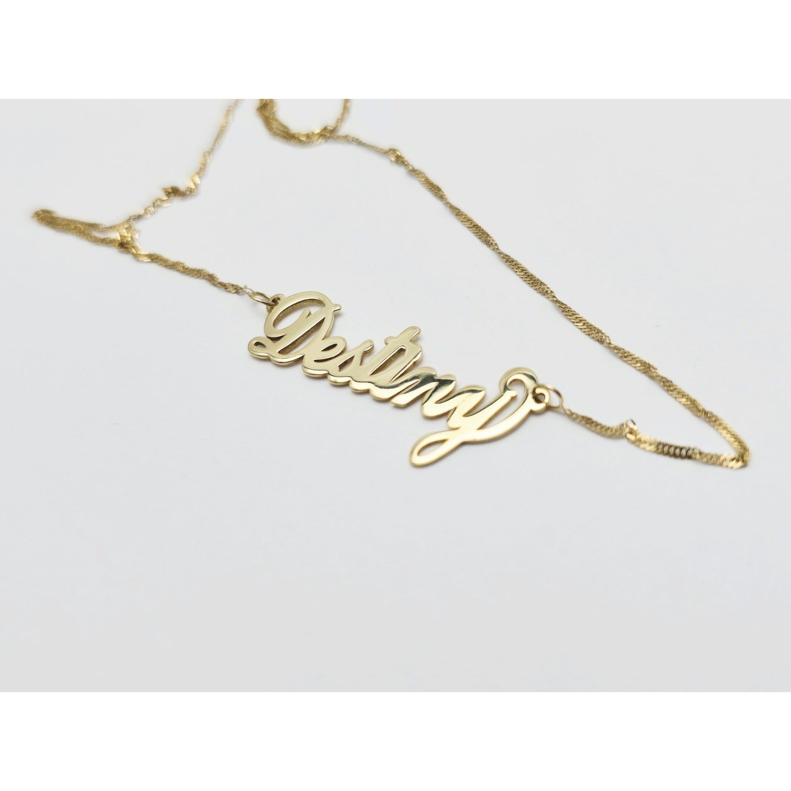 14K Yellow Gold Initial Name Destiny Charm Pendant Singapore Link Chain Necklace