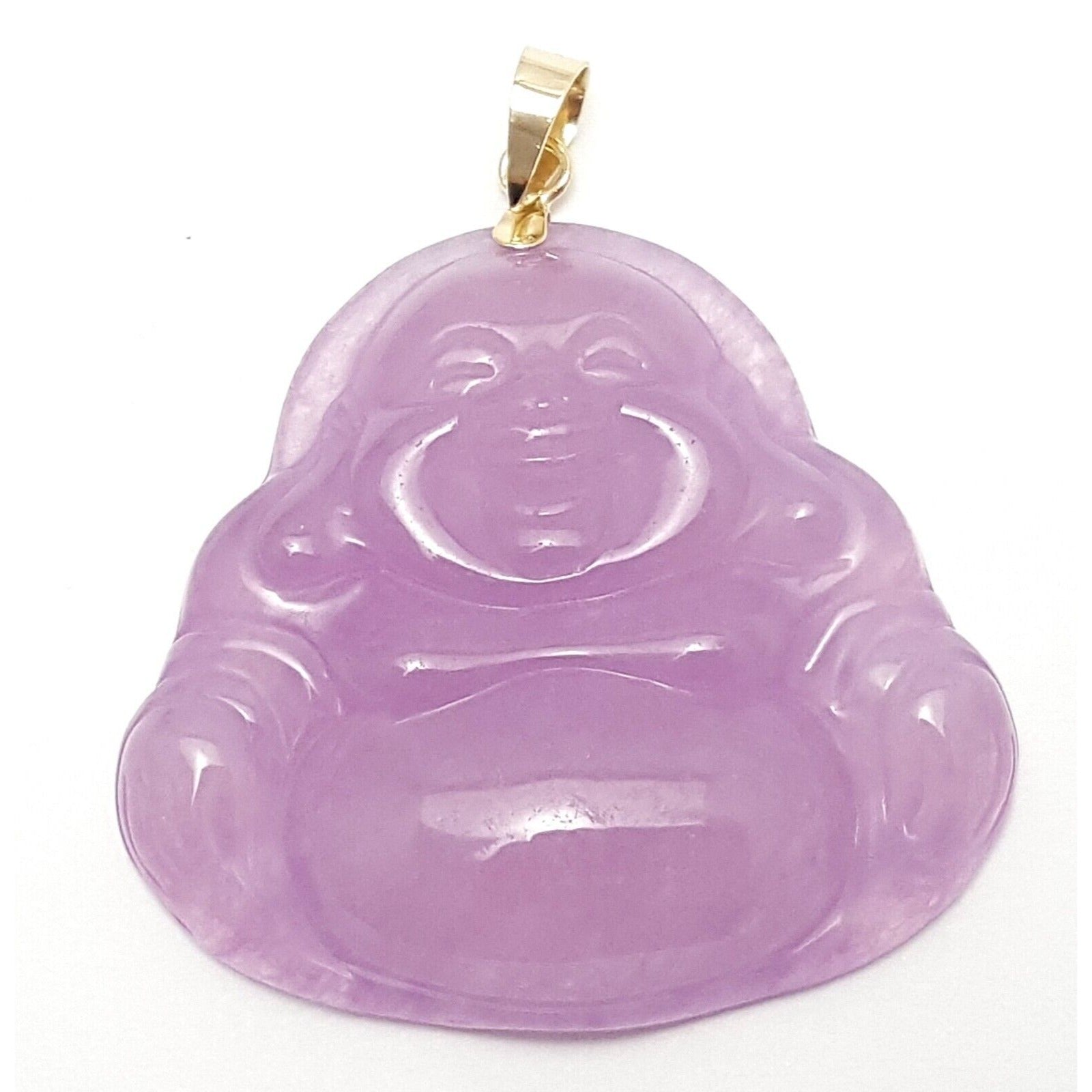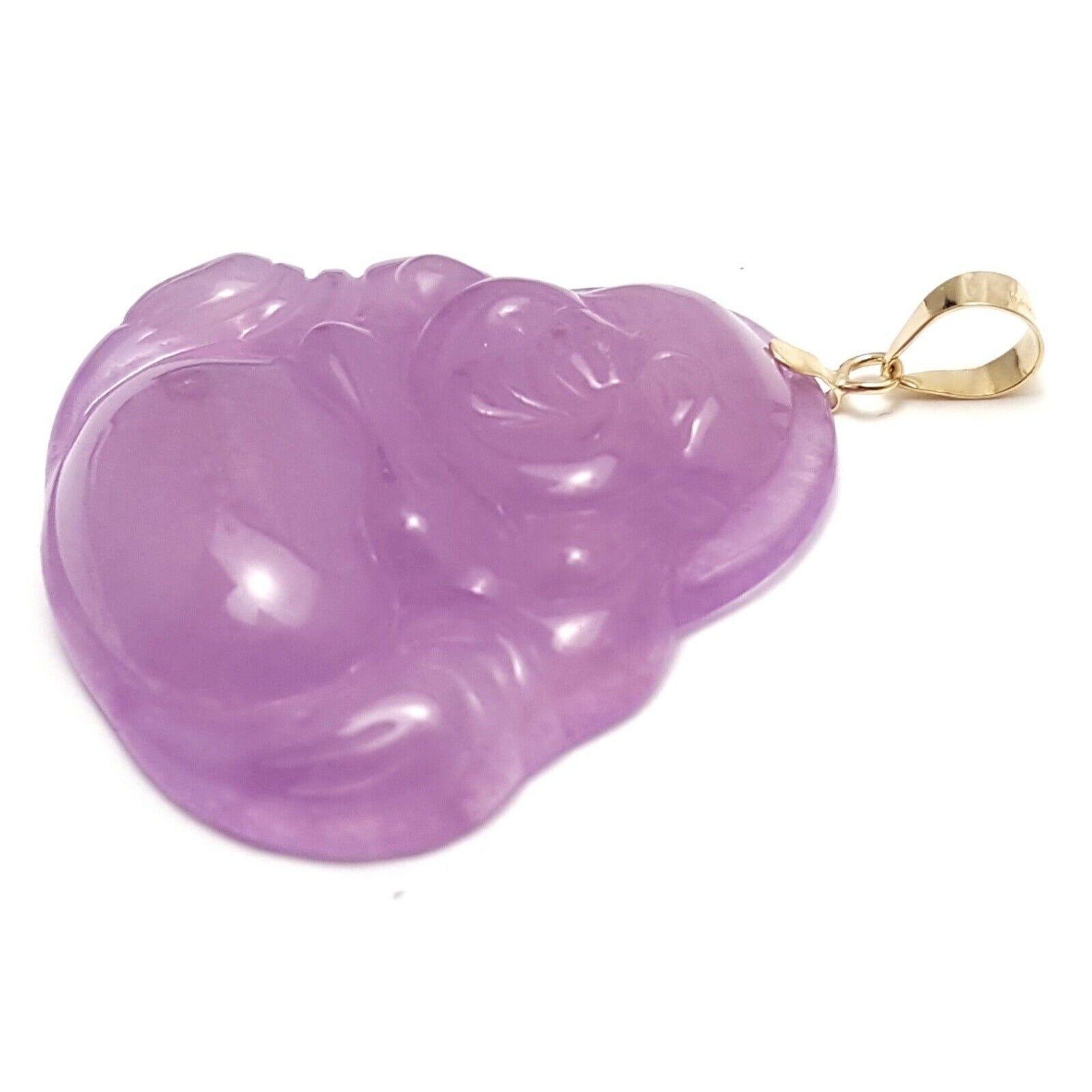 14K Yellow Gold Large Sized Purple Jade Buddha Charm Pendant