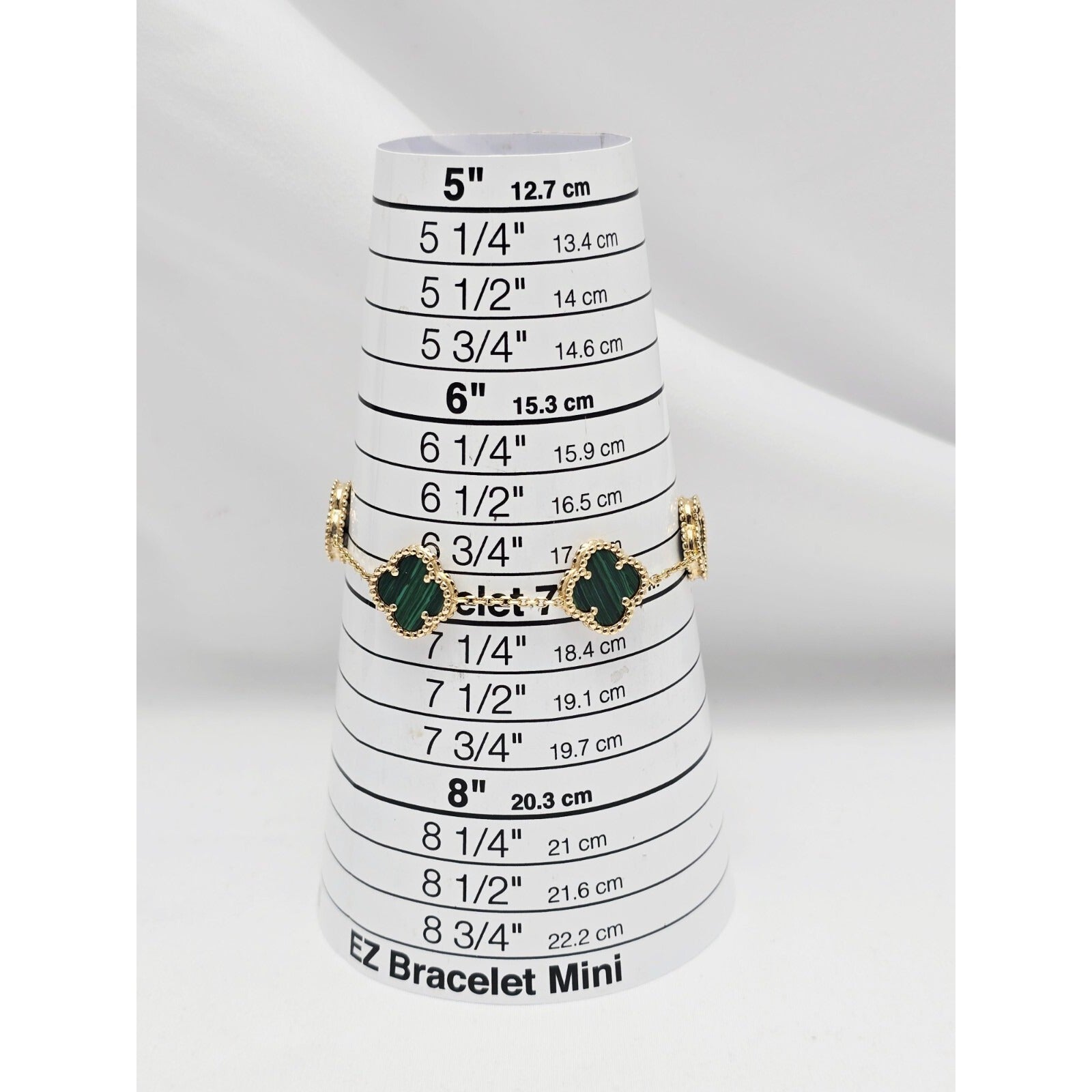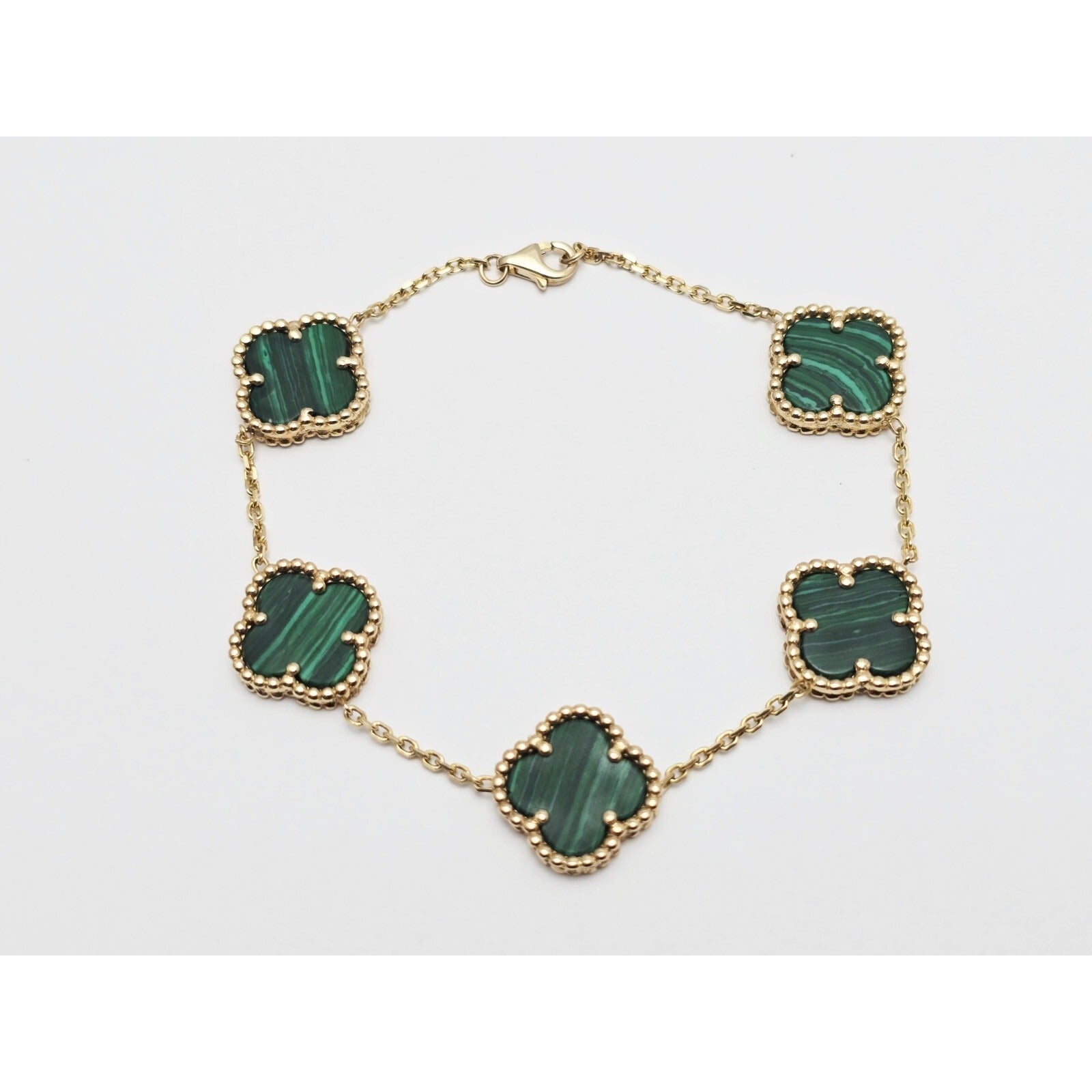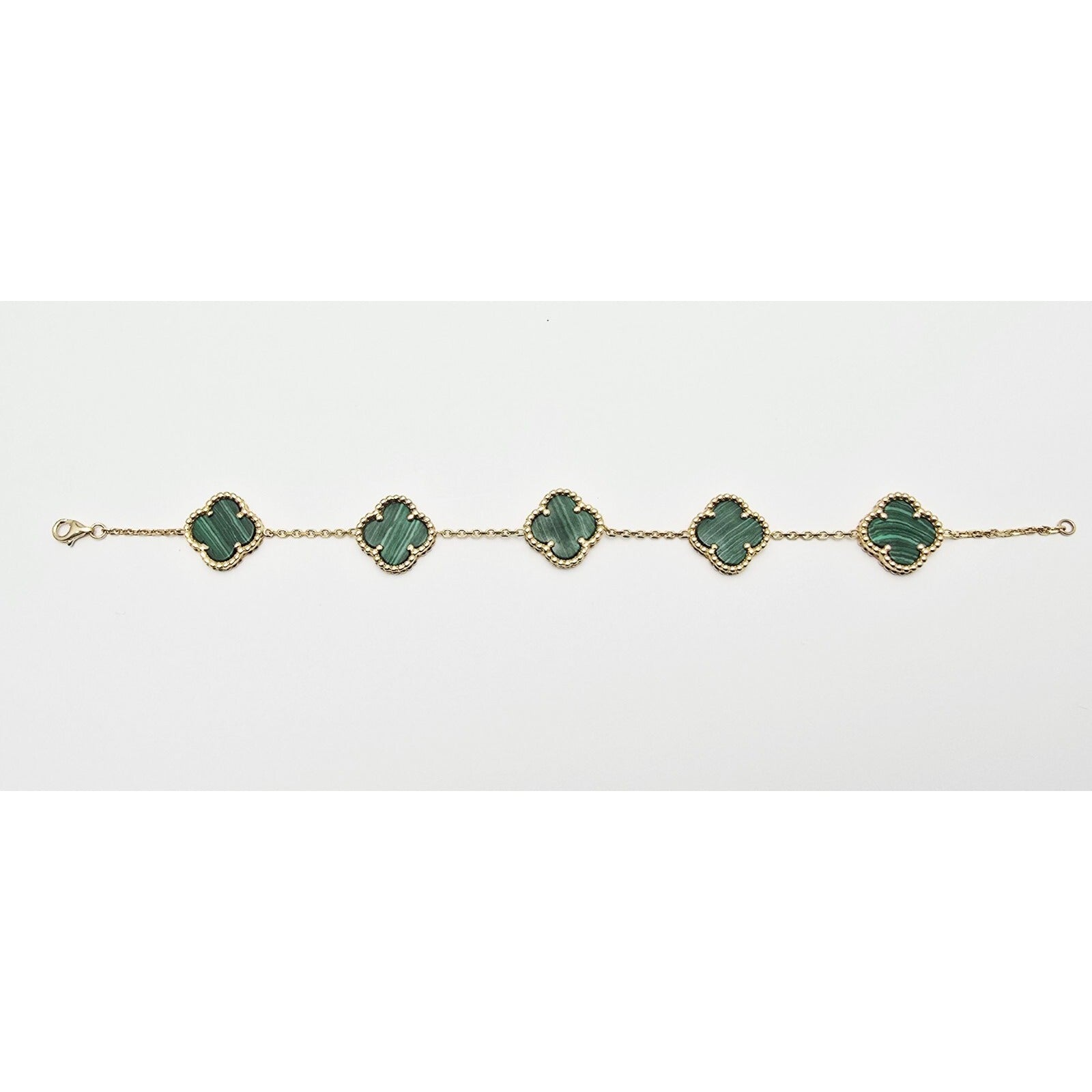 14K Yellow Gold Malachite Four Leaf Clover Cable Link Chain Bracelet