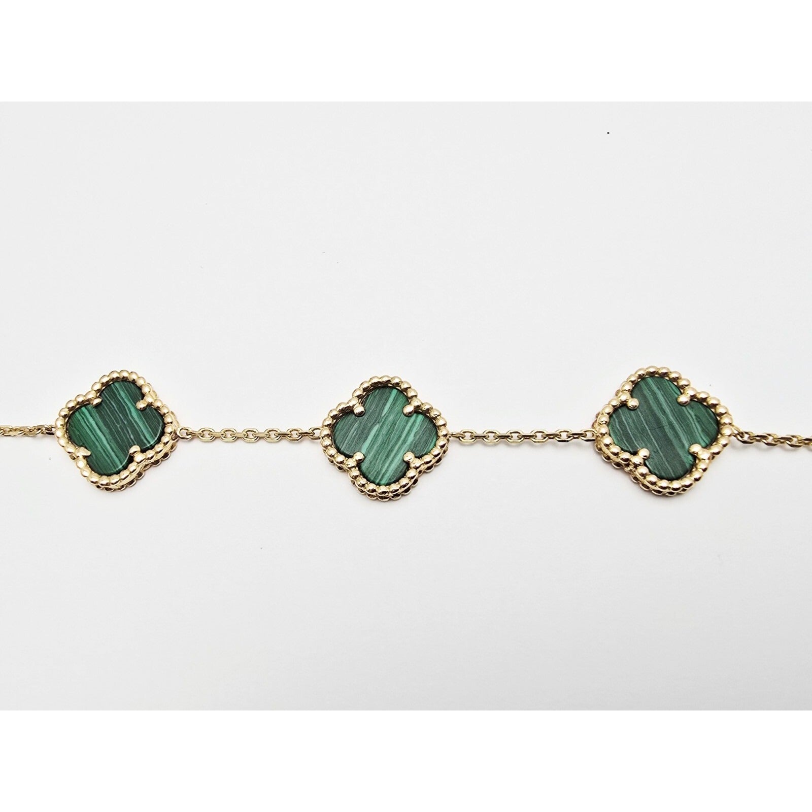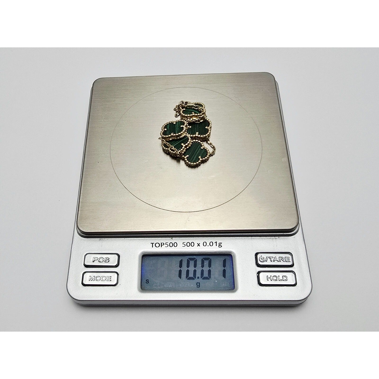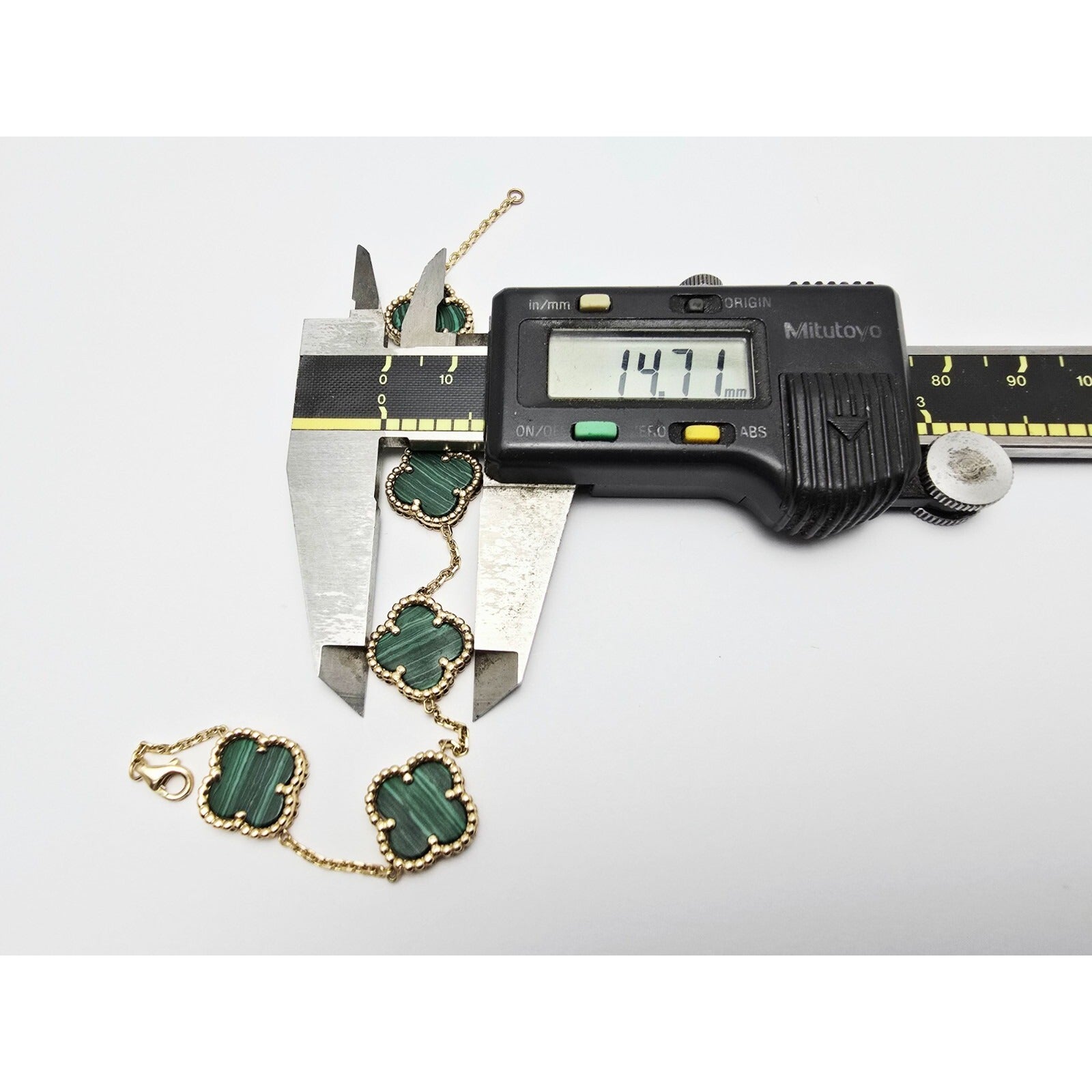 14K Yellow Gold Malachite Four Leaf Clover Cable Link Chain Bracelet