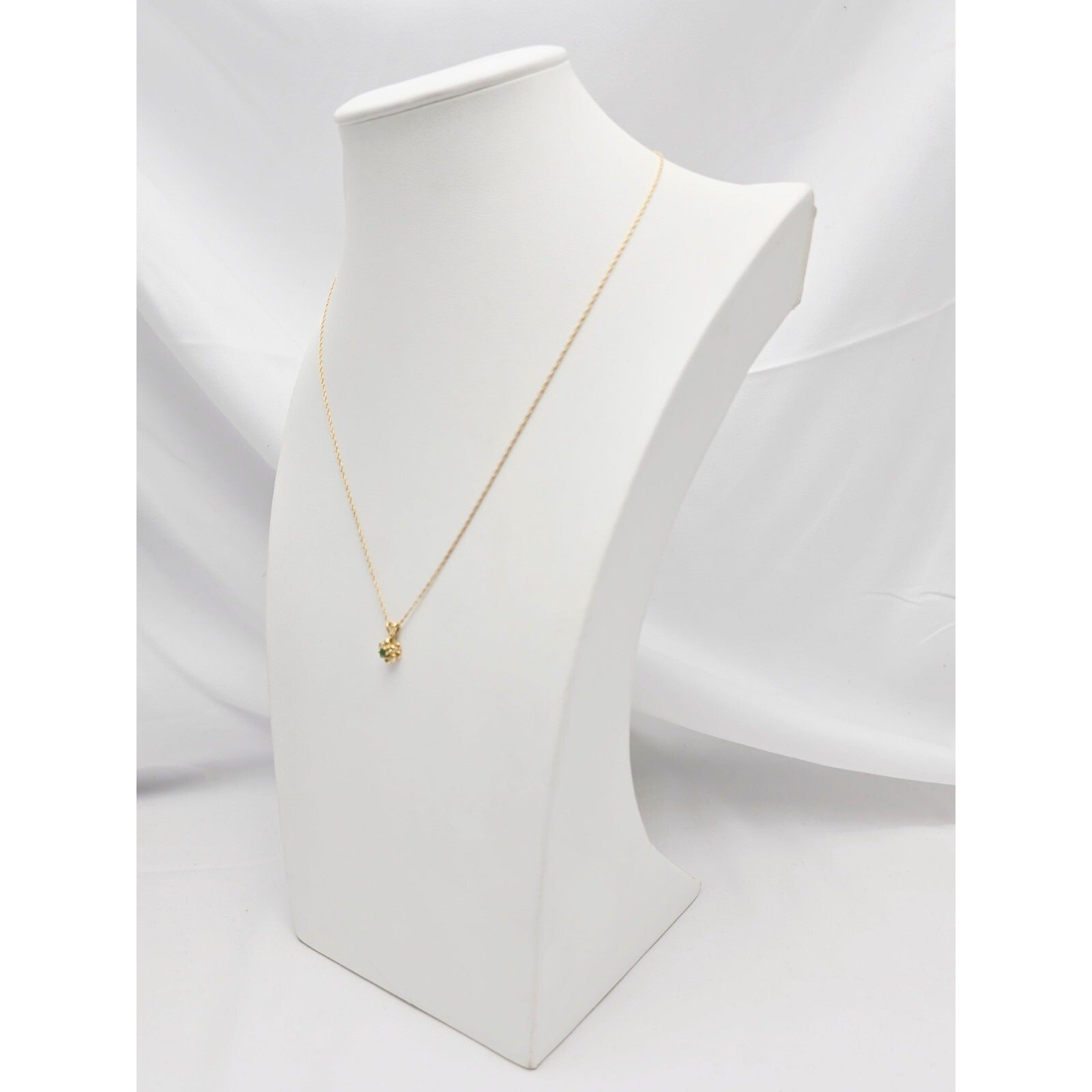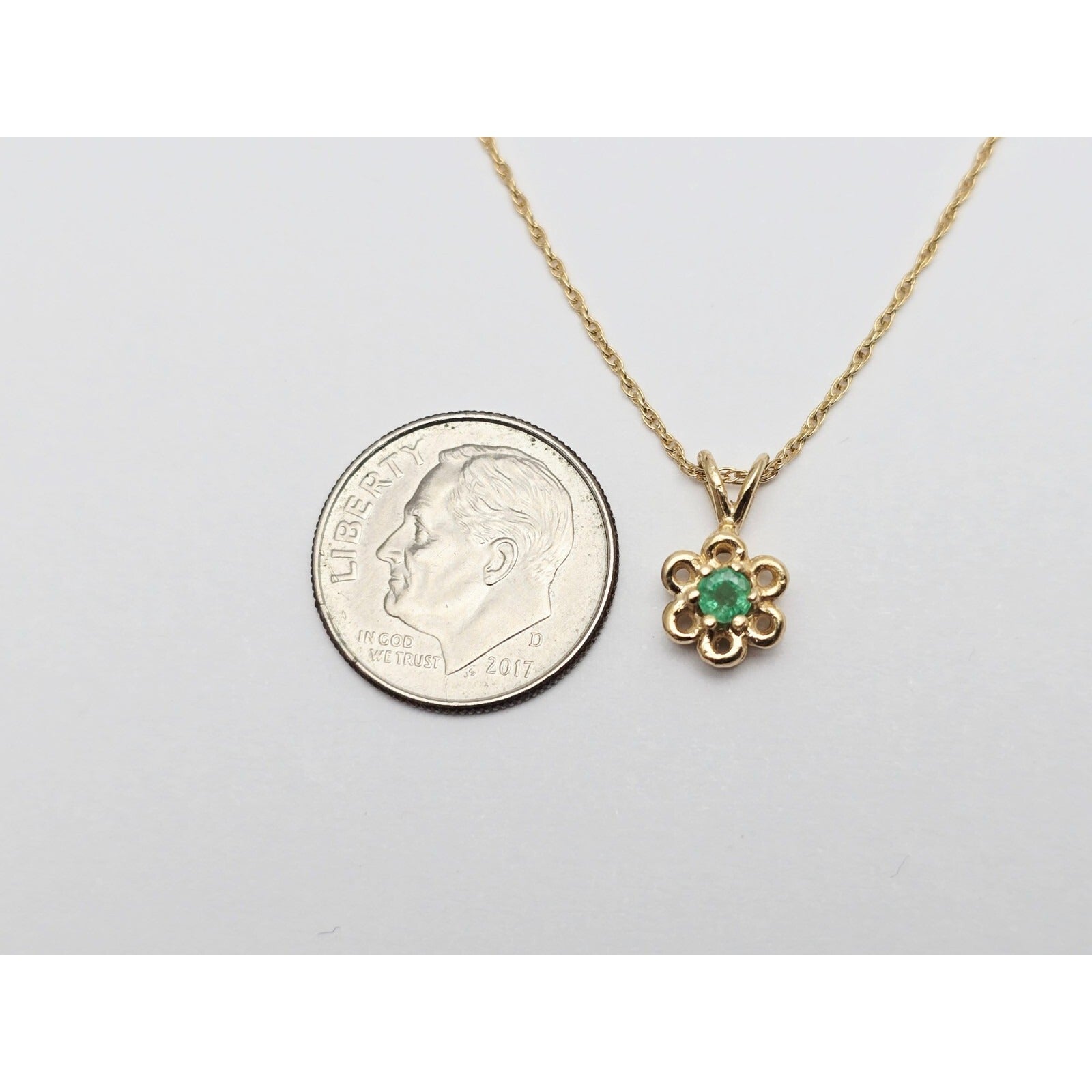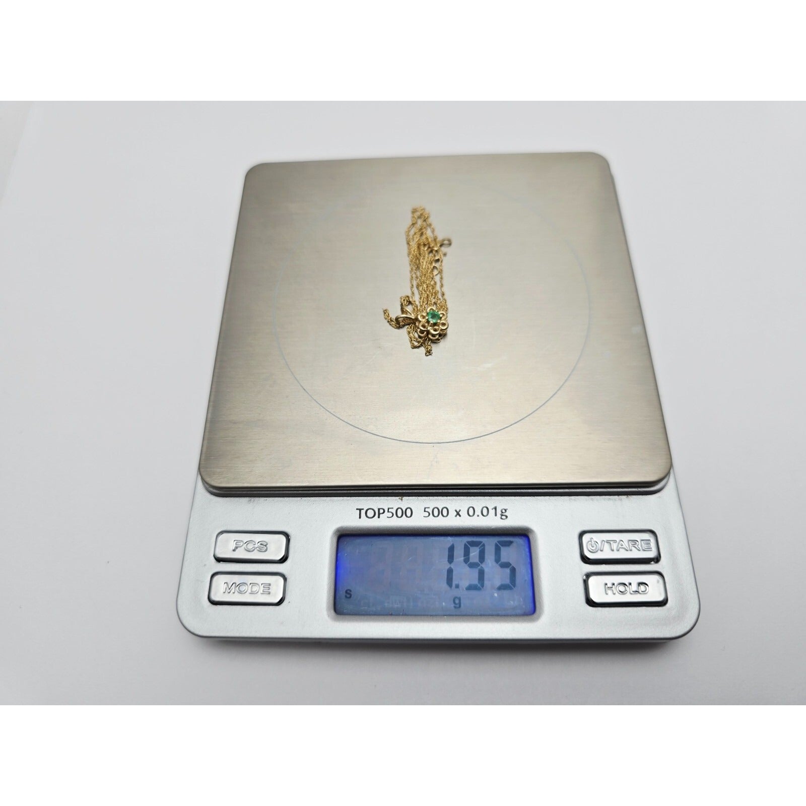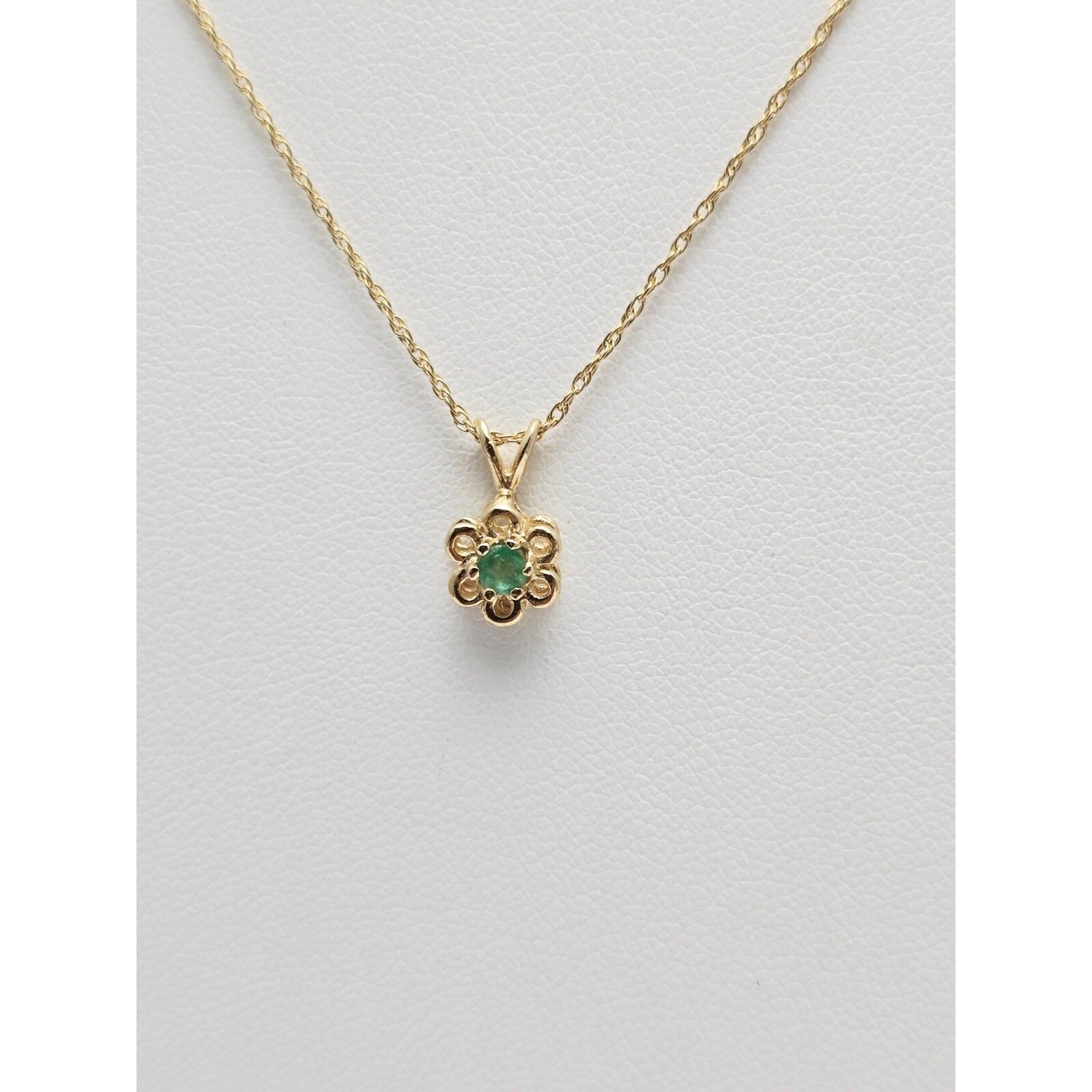 14K Yellow Gold Mesh Link Chain Necklace & Flower Emerald Charm Pendant