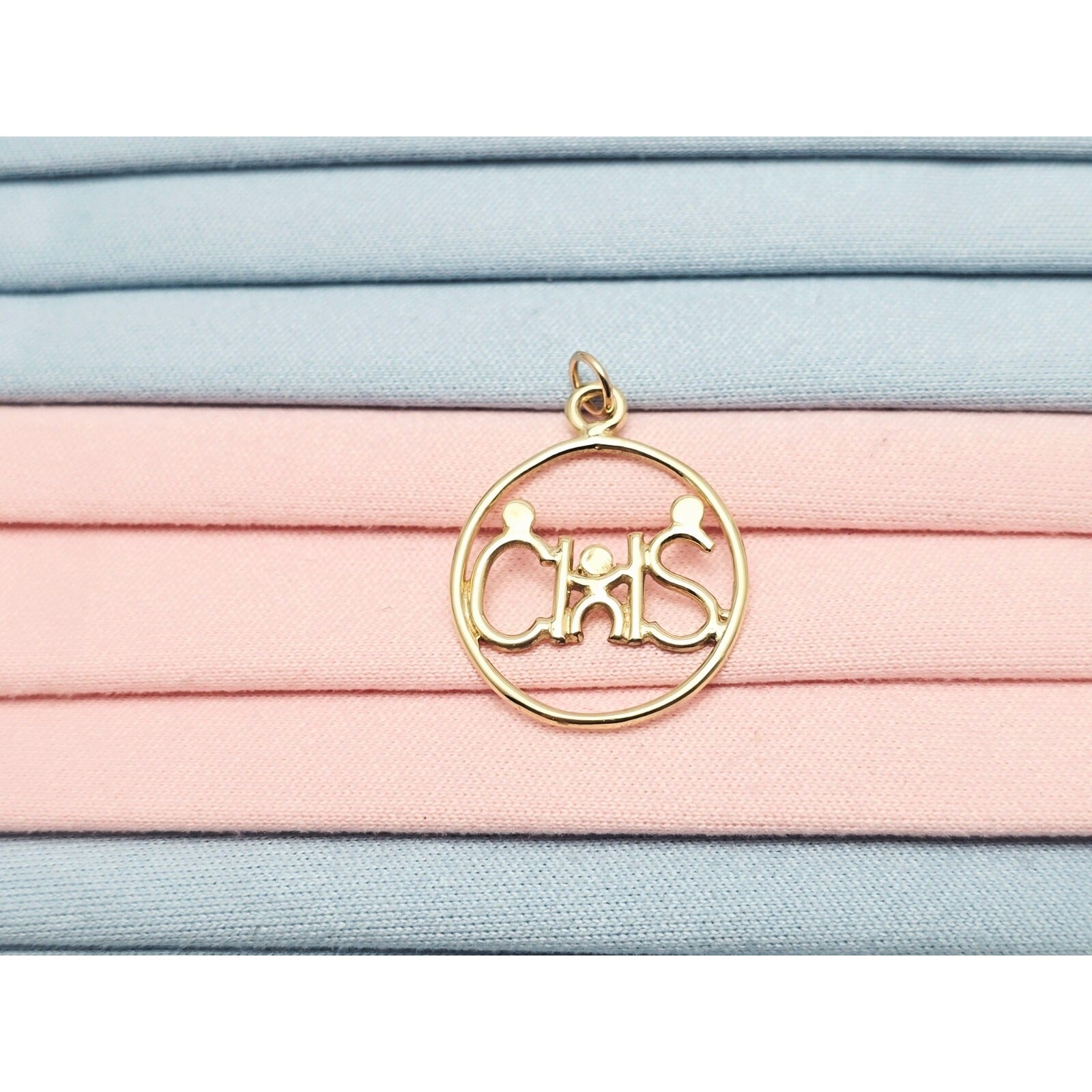 14K Yellow Gold Mom, Dad & Child Initial " C & S " Charm Pendant