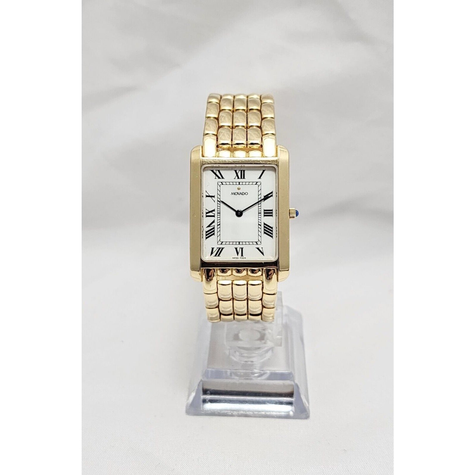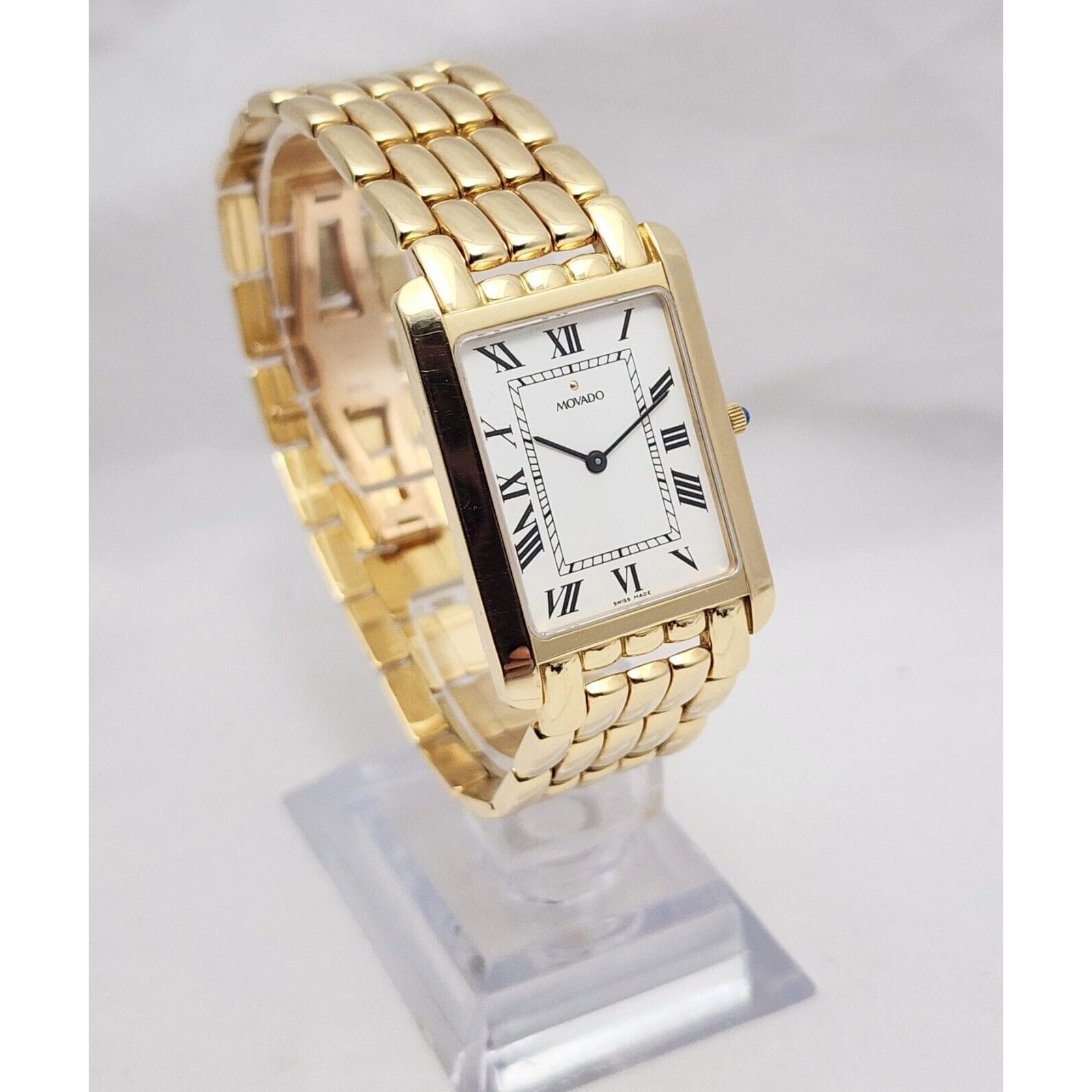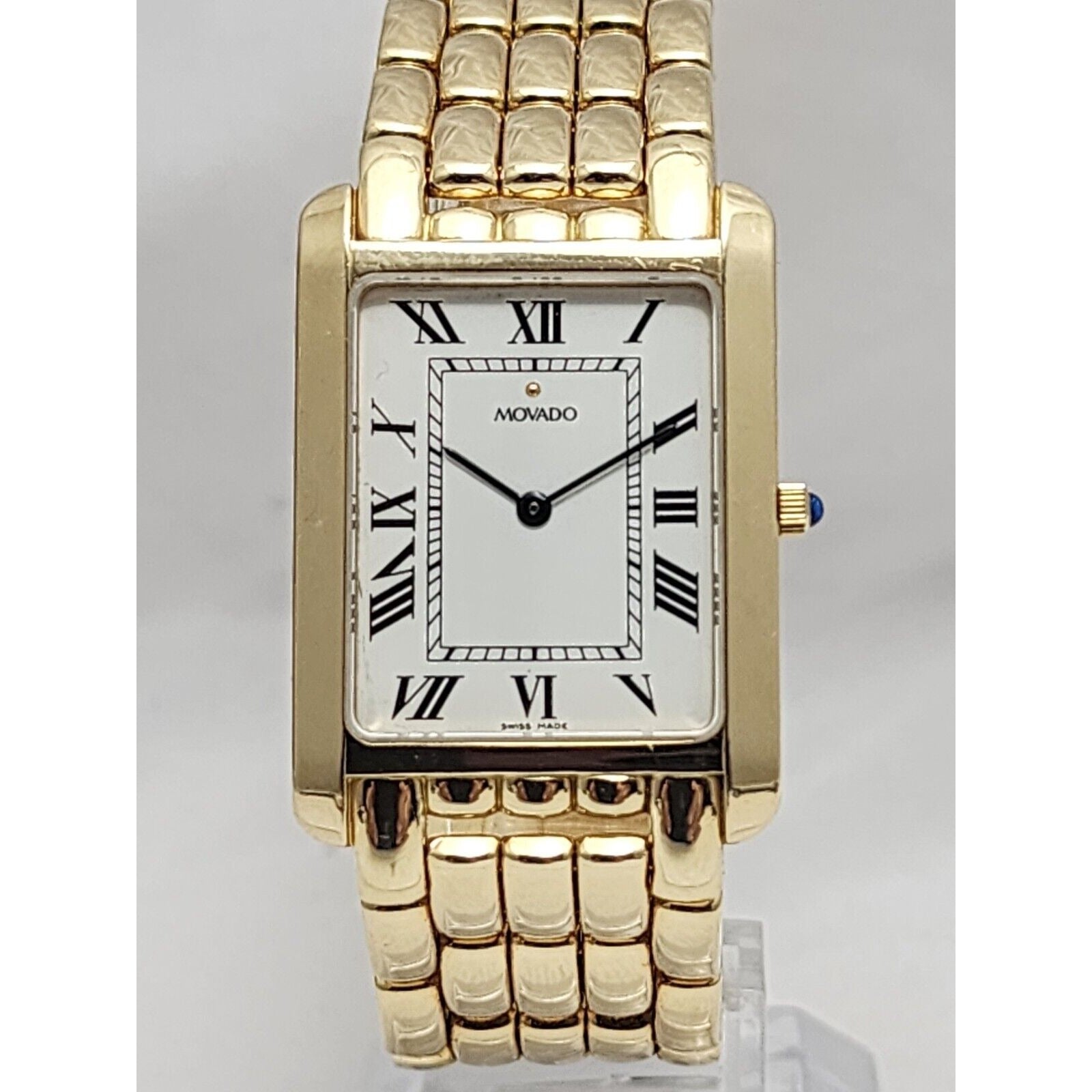 14K Yellow Gold Movado Tank 40 C6 1451 Quartz Roman Dial 36mm Watch 5680718