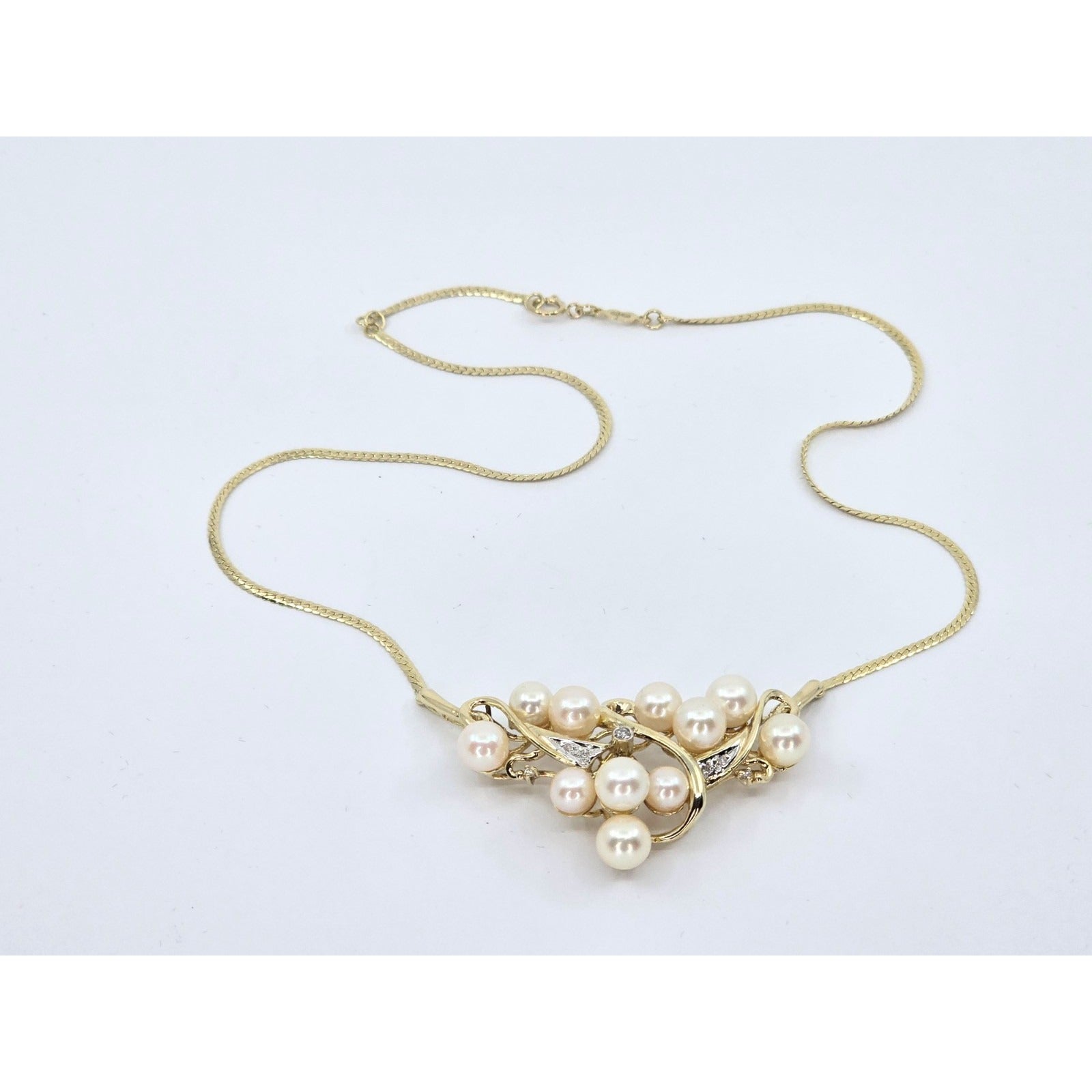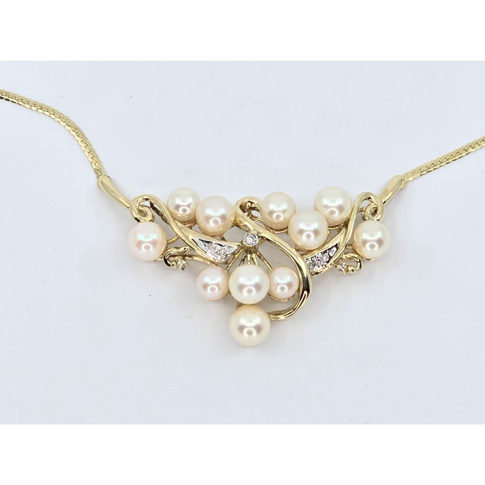 - Necklace Includes a total of 11 Pearls & 7 Round Diamonds