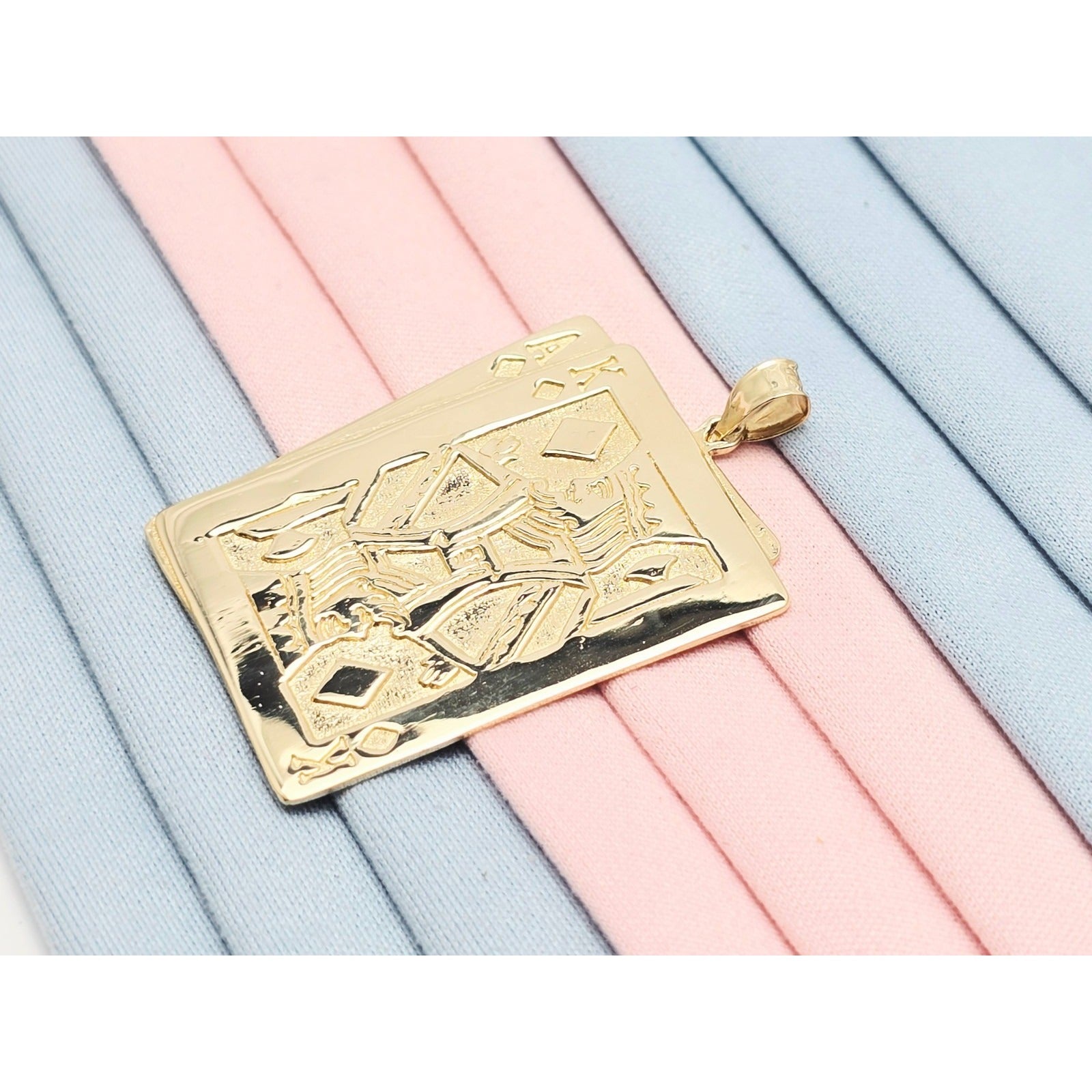 14K Yellow Gold Playing Cards Ace & King of Diamonds Charm Pendant