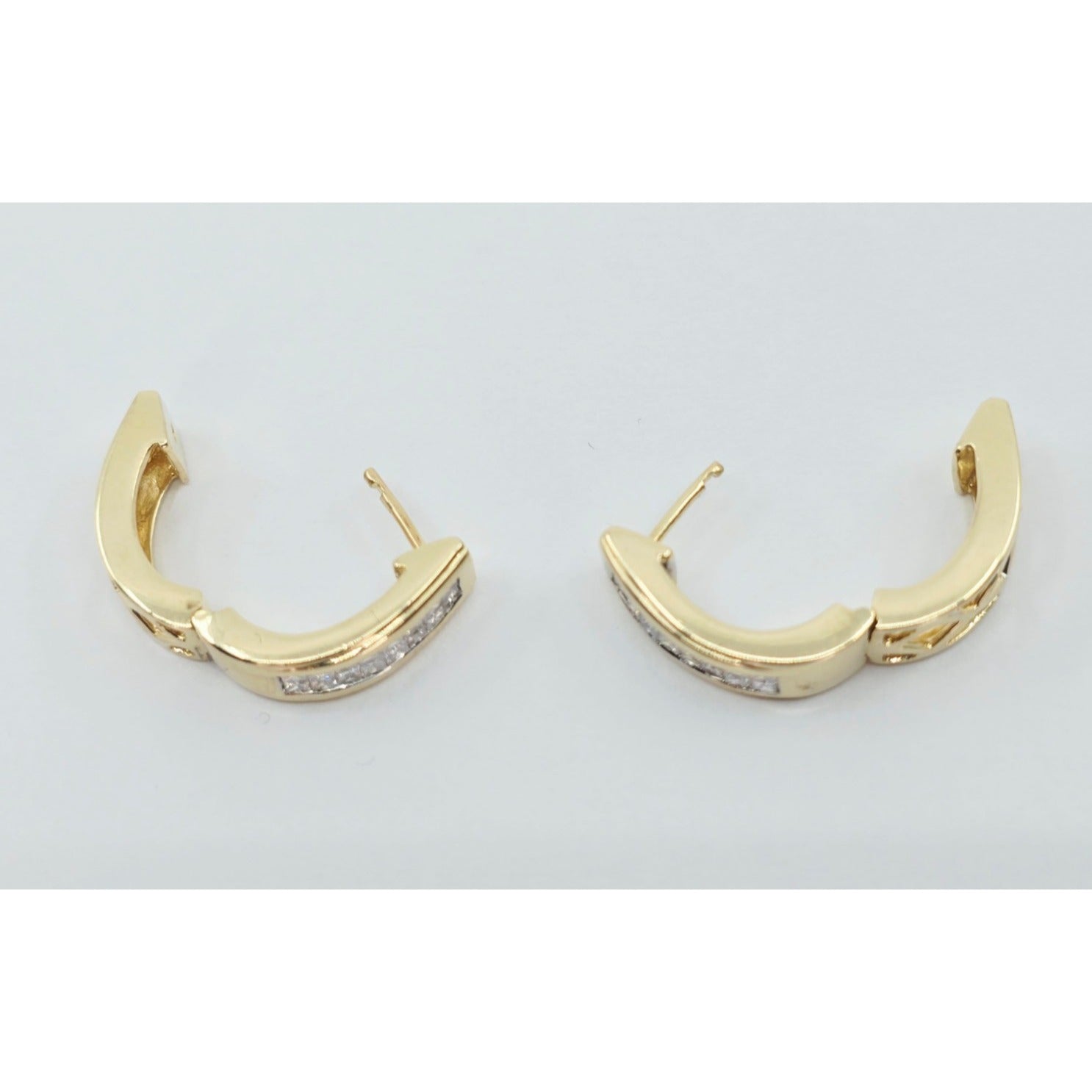 14K Yellow Gold Princess Cut Diamond Hinged Half Hoop Earrings