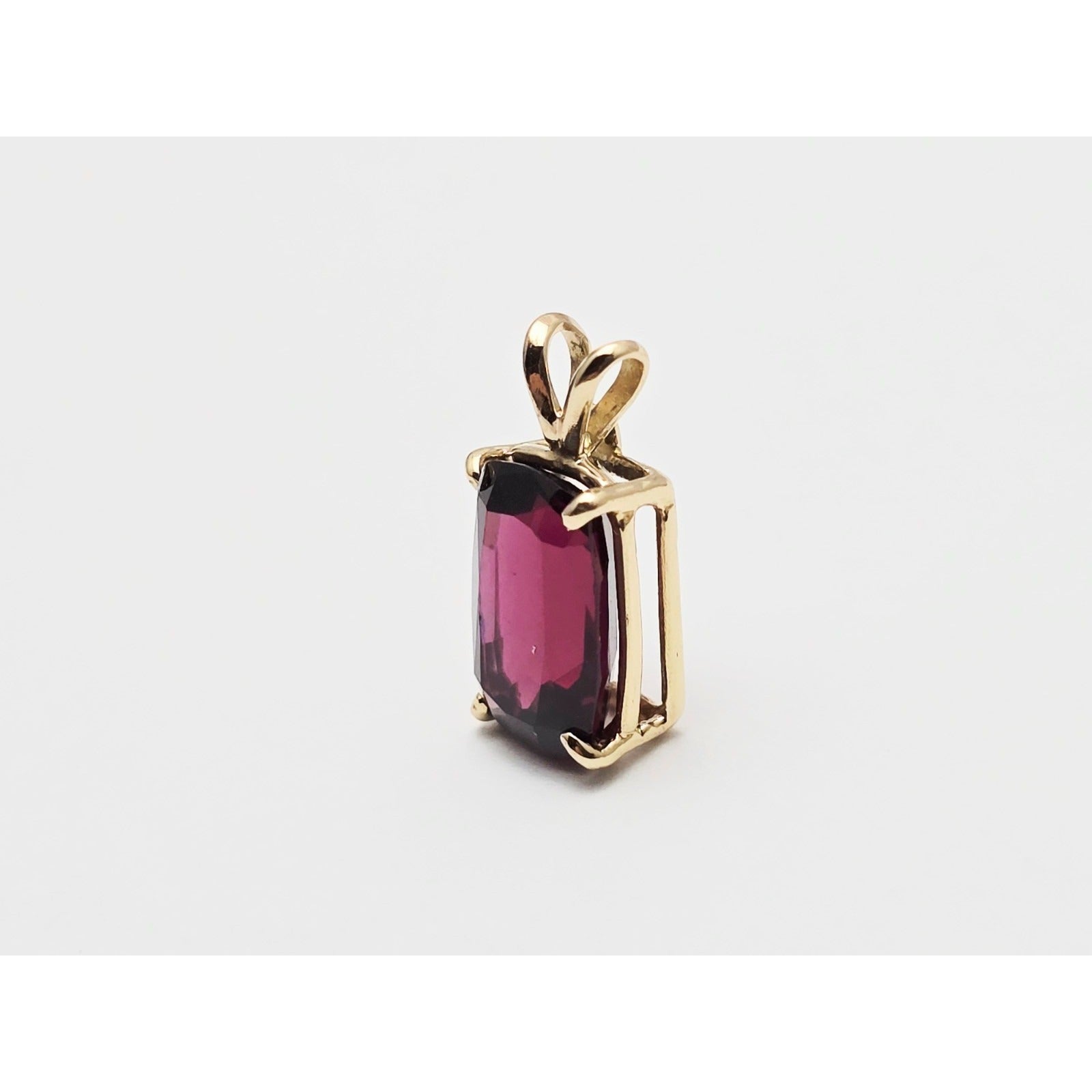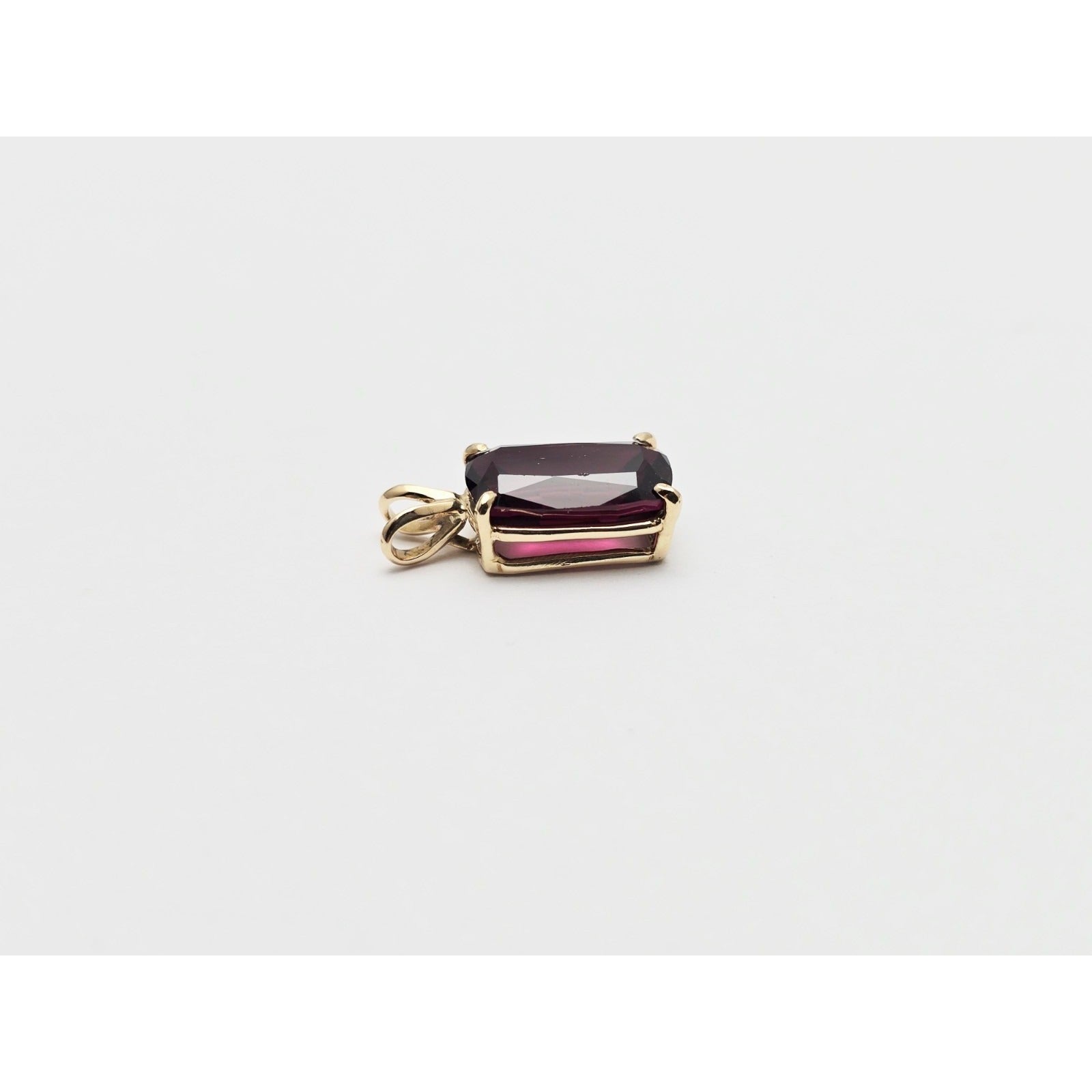 14K Yellow Gold Rectangle Cushion Cut Garnet Charm Pendant