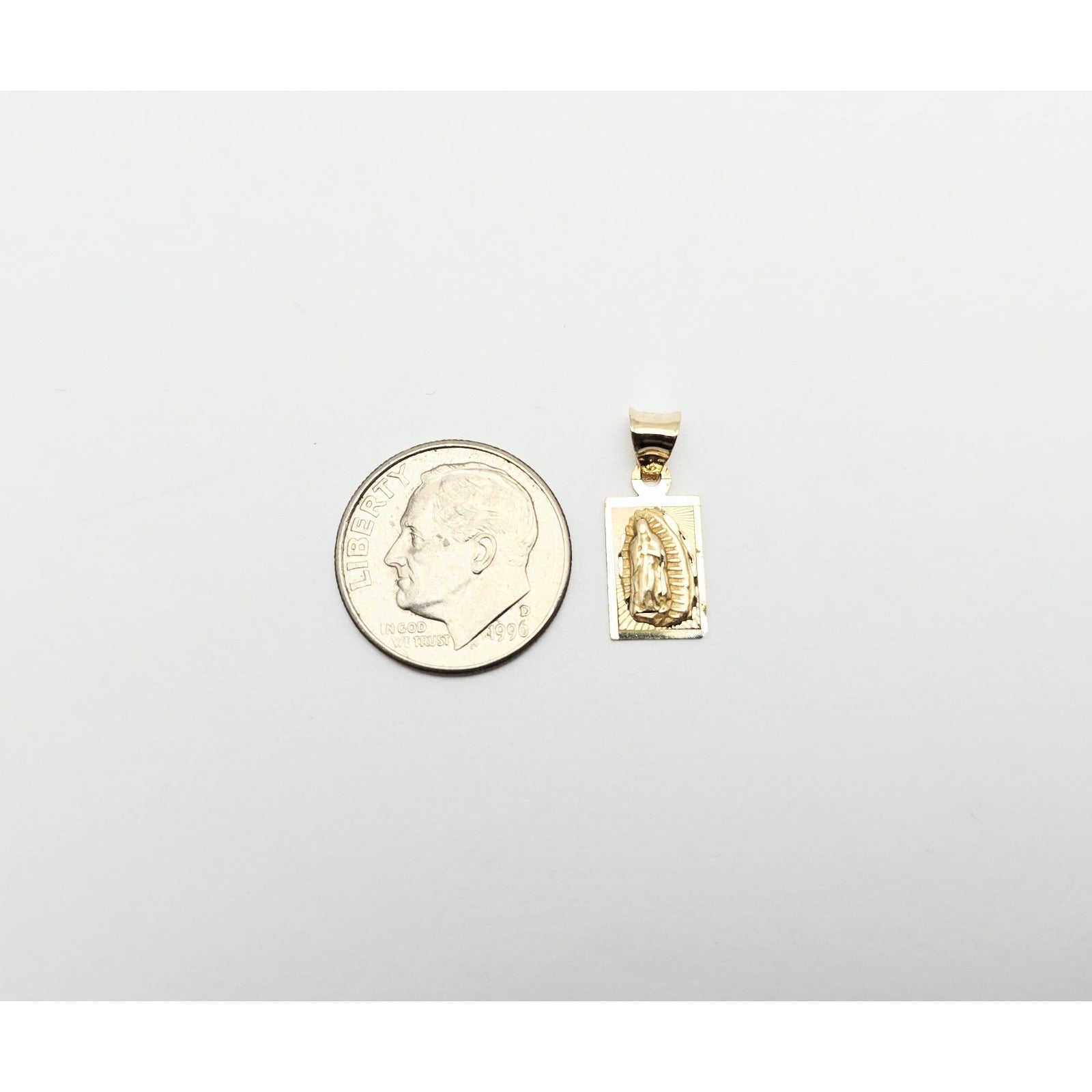 14K Yellow Gold Rectangle Saint Mary Charm Pendant