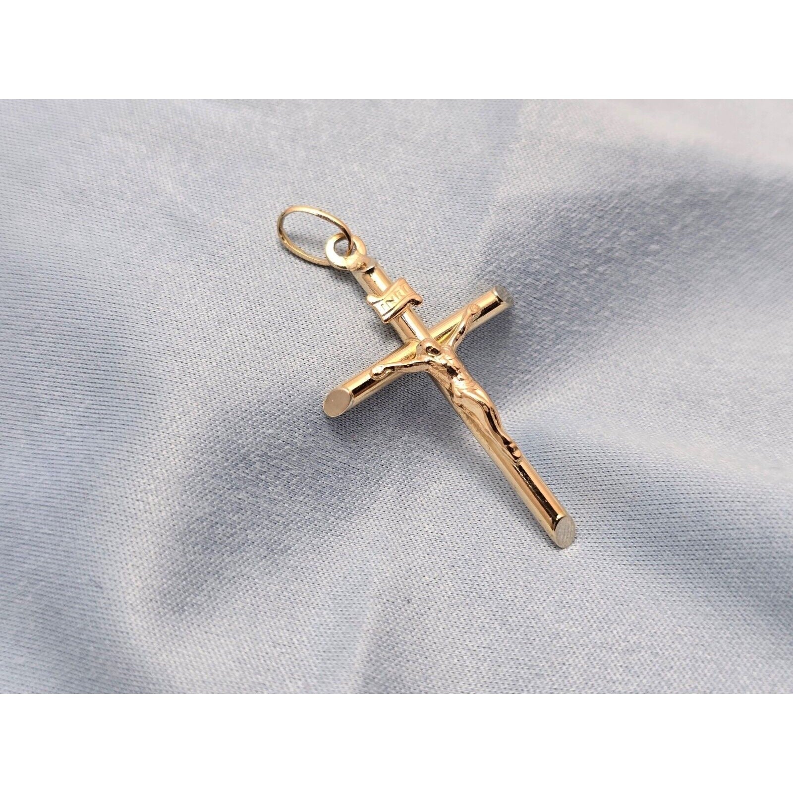 14K Yellow Gold Religious Jesus on Cross Charm Pendant