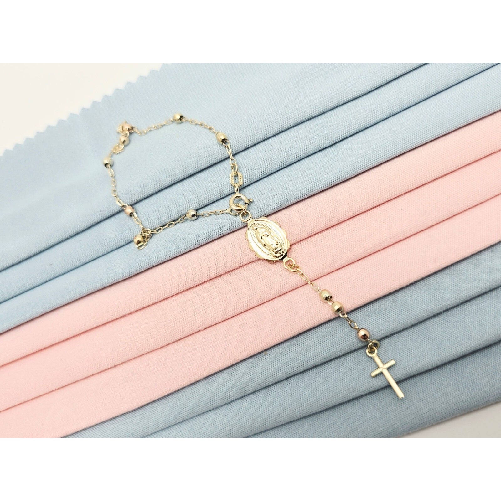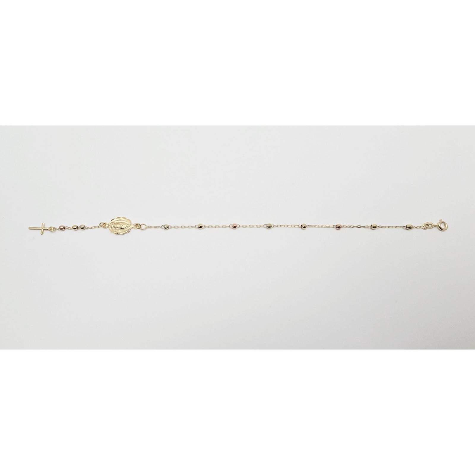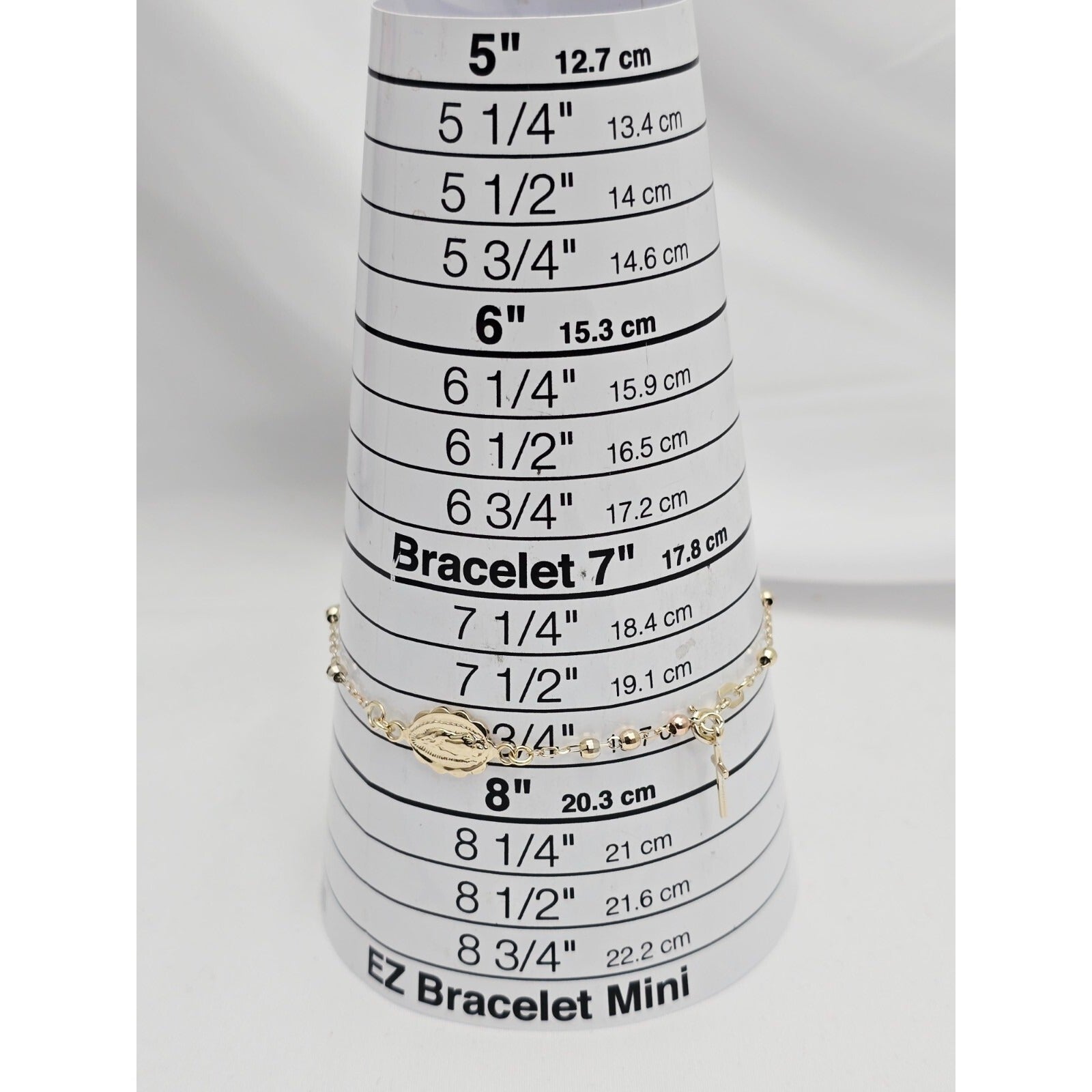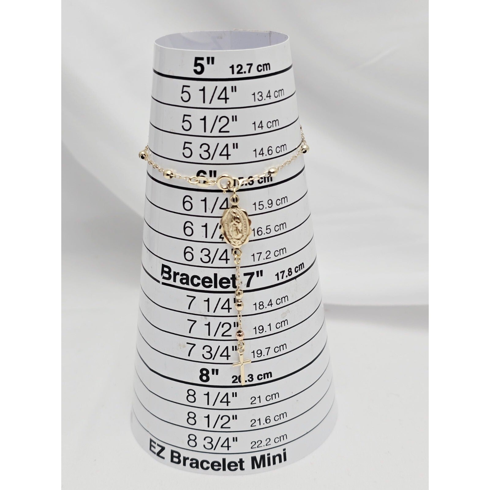 14K Yellow Gold Rosary Bead Ball Resizable Link Chain Bracelet
