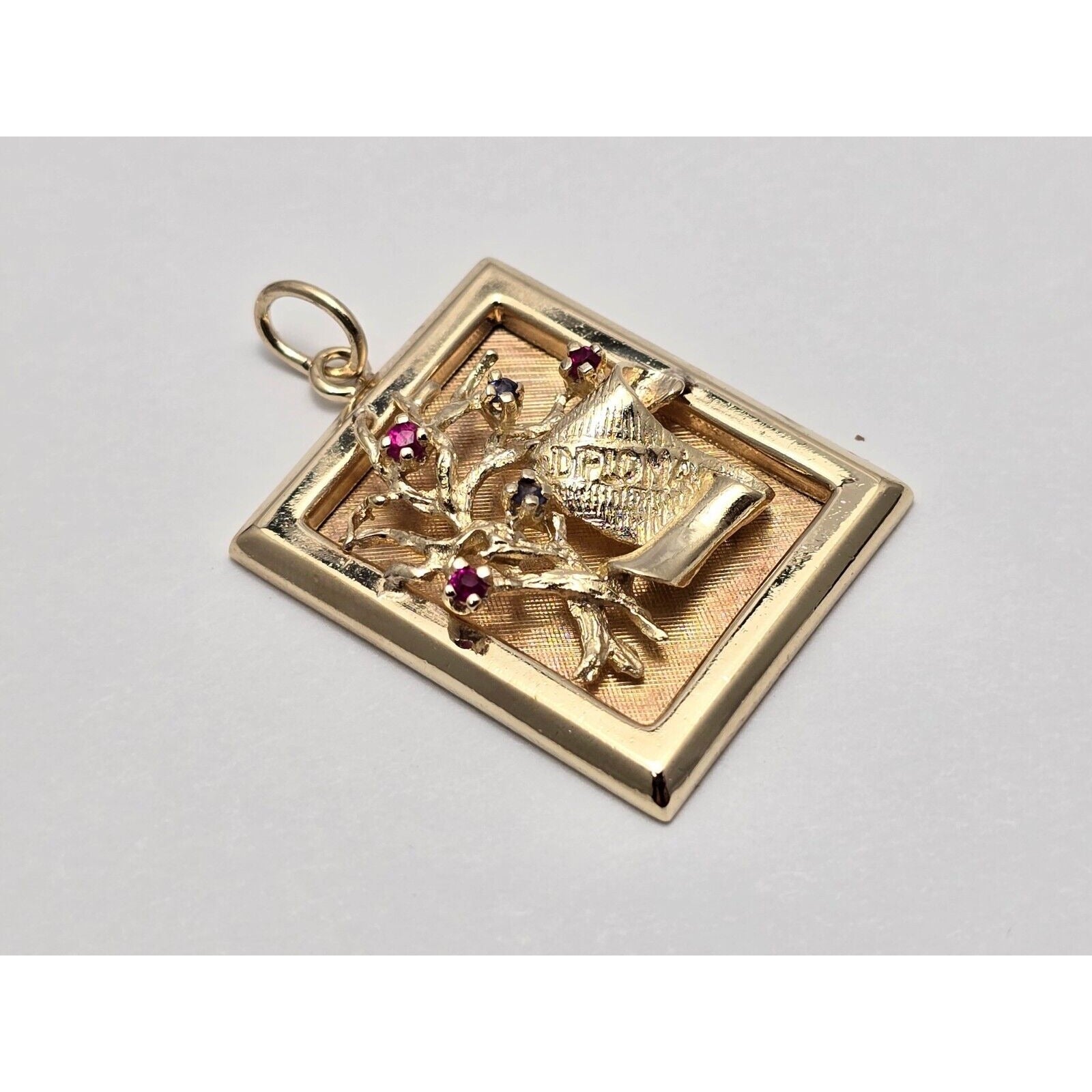 14K Yellow Gold Ruby & Sapphire Diploma Graduate Square Charm Pendant