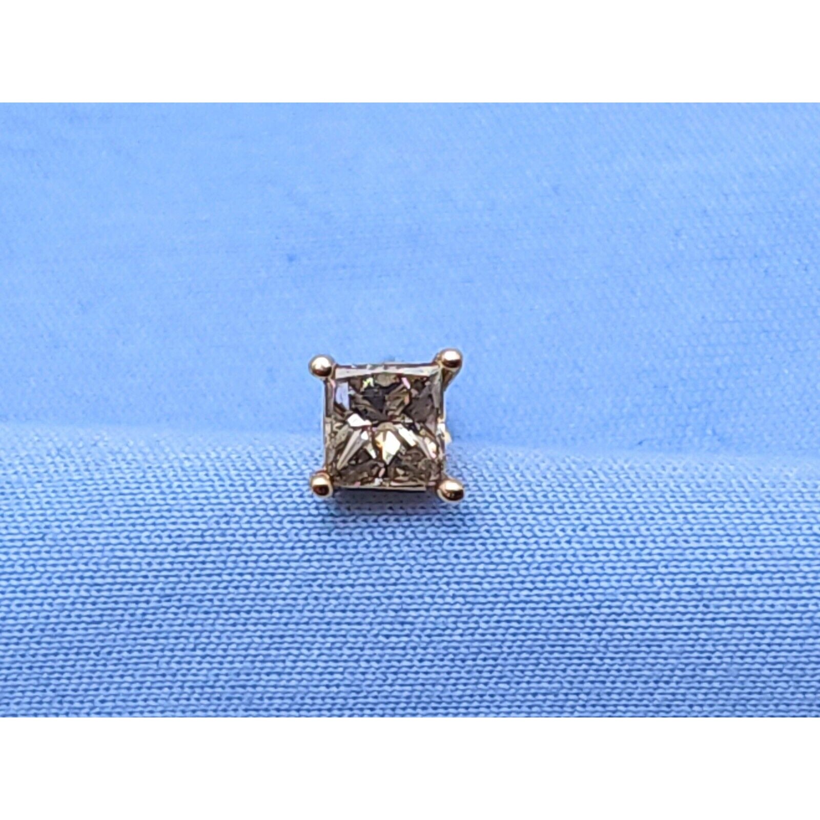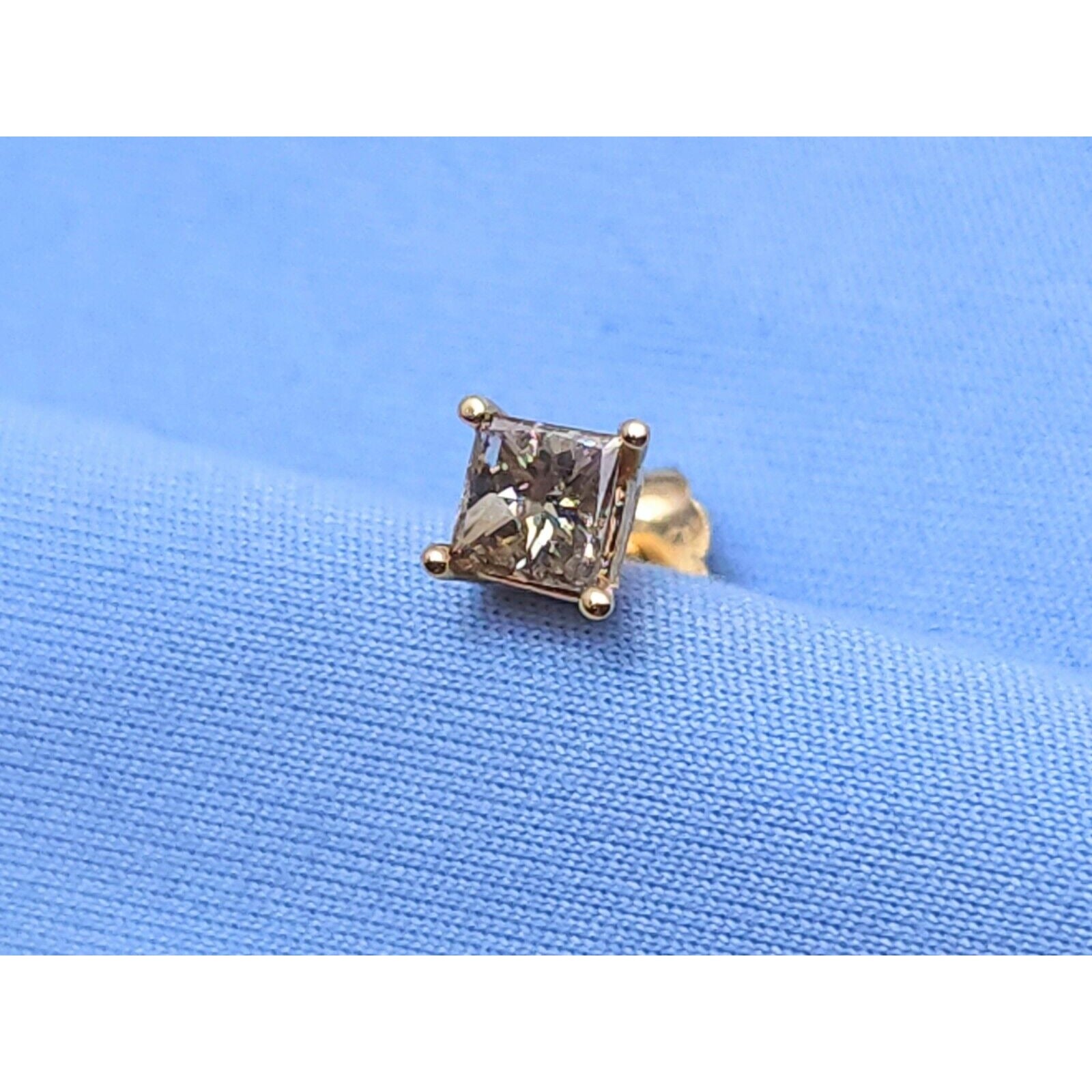 14K Yellow Gold Single Princess Cut Brown Diamond Stud Earring