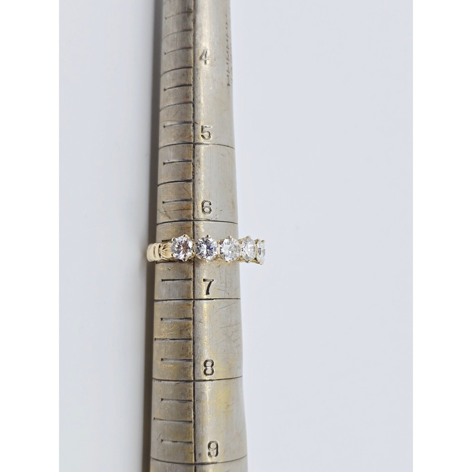 14K Yellow Gold Single Row Diamond Engraved Ring