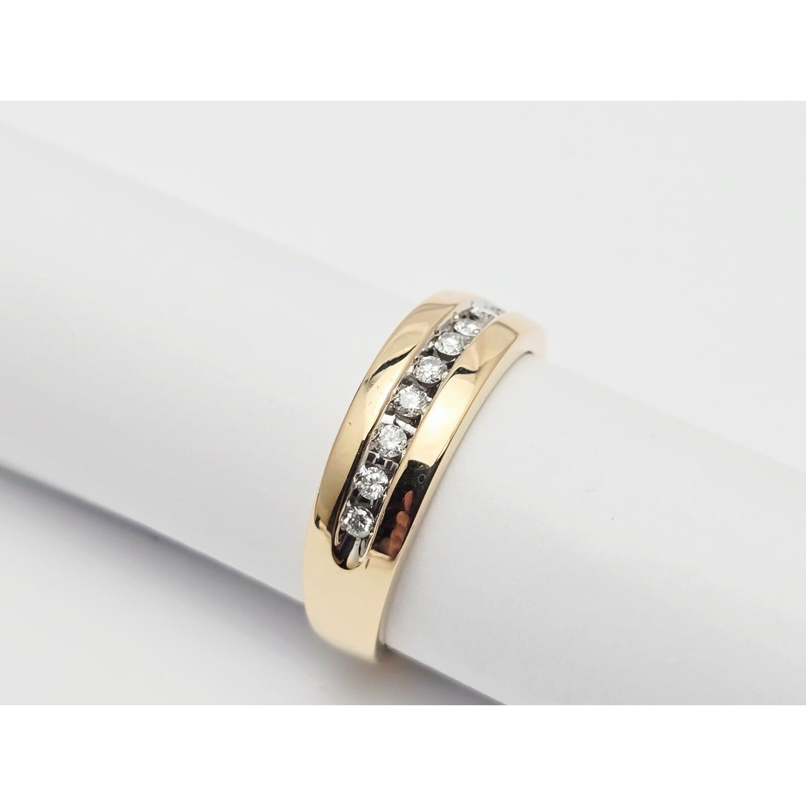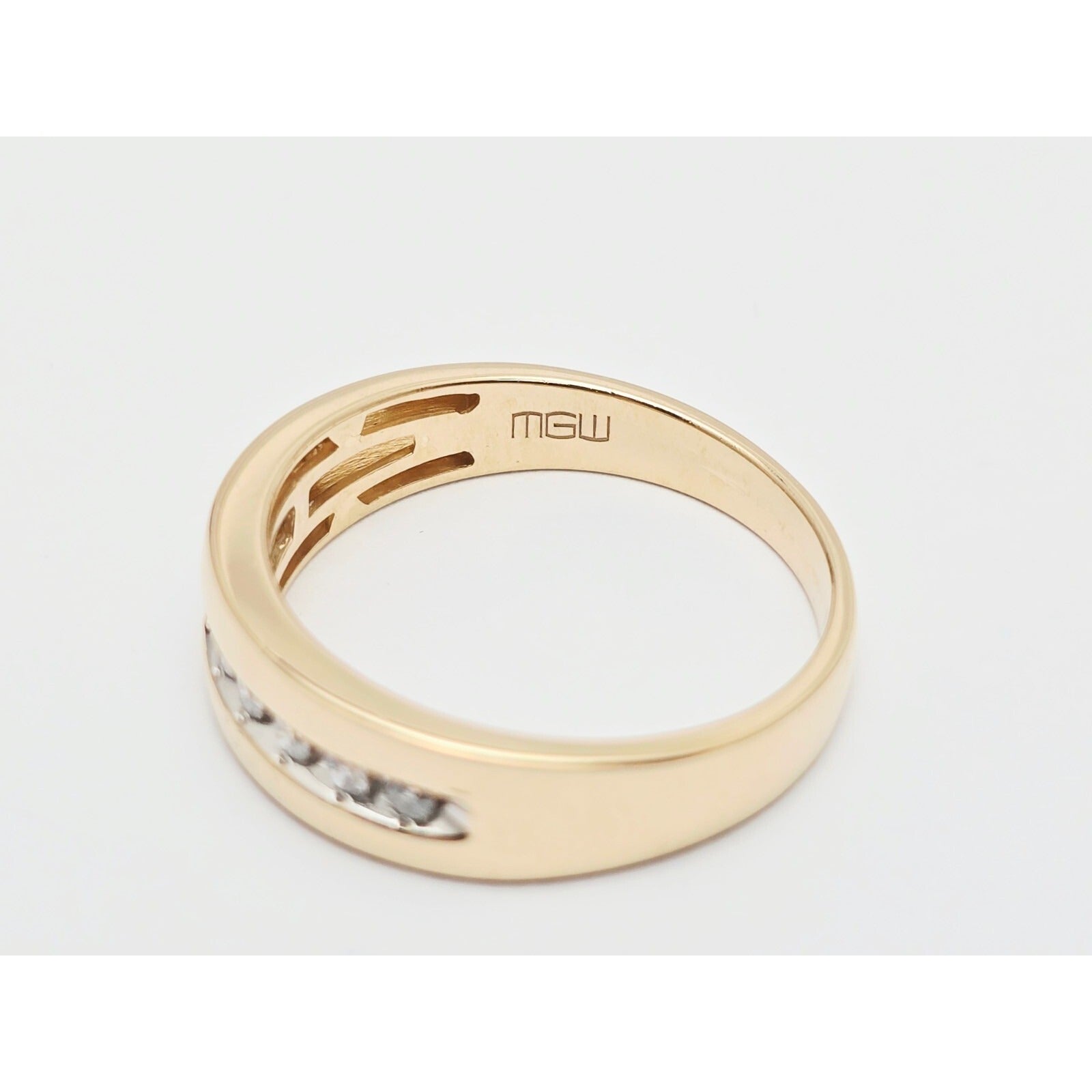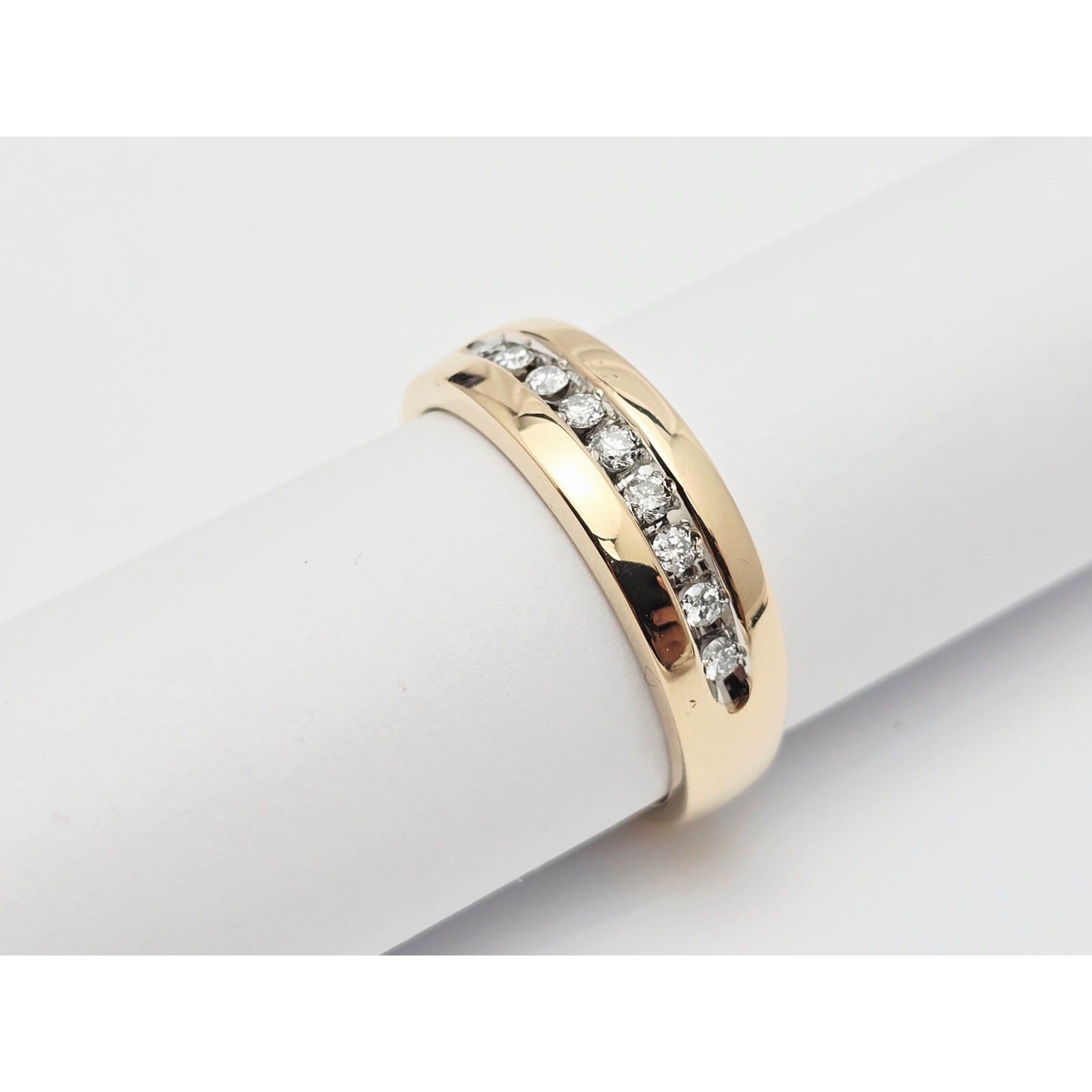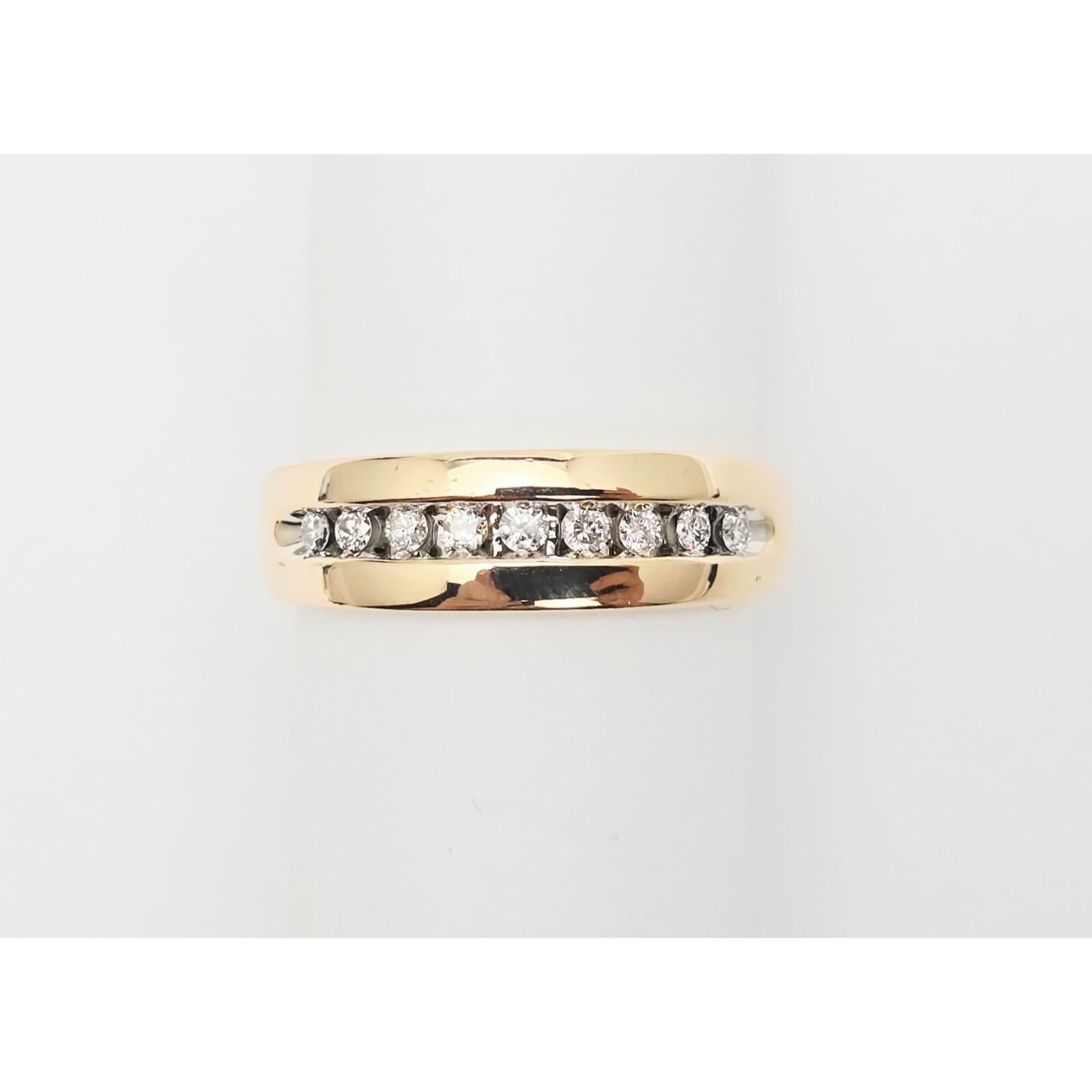 14K Yellow Gold Single Row Diamond Wedding Band Ring