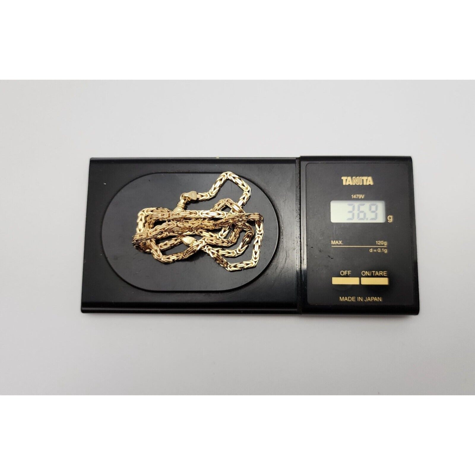 14K Yellow Gold Square Byzantine Link Chain Necklace
