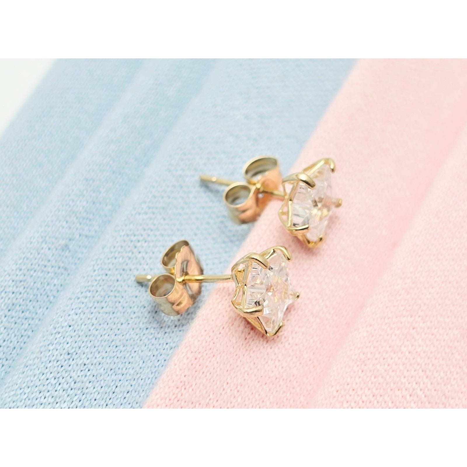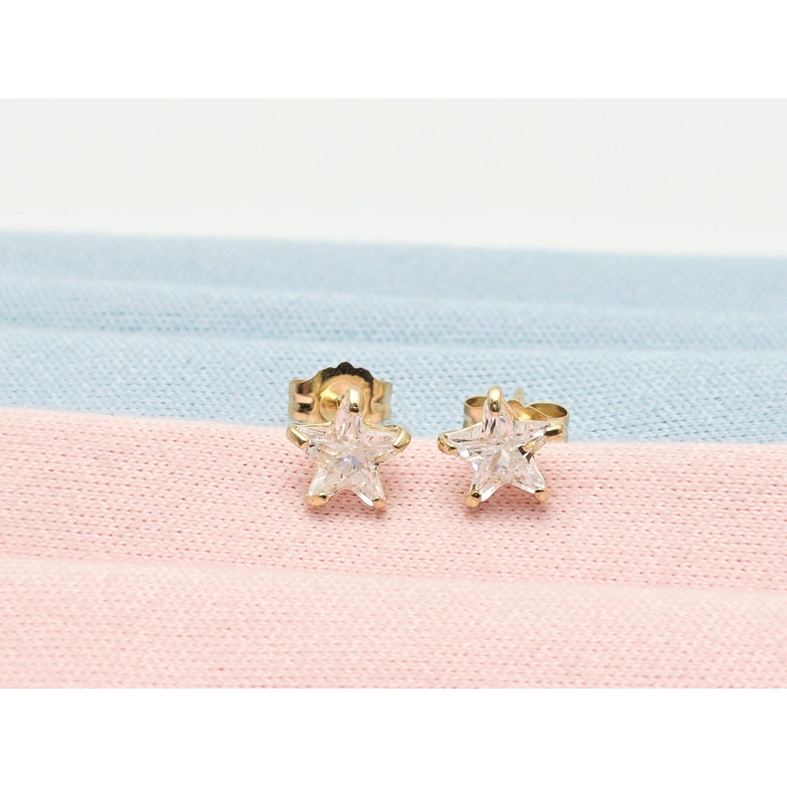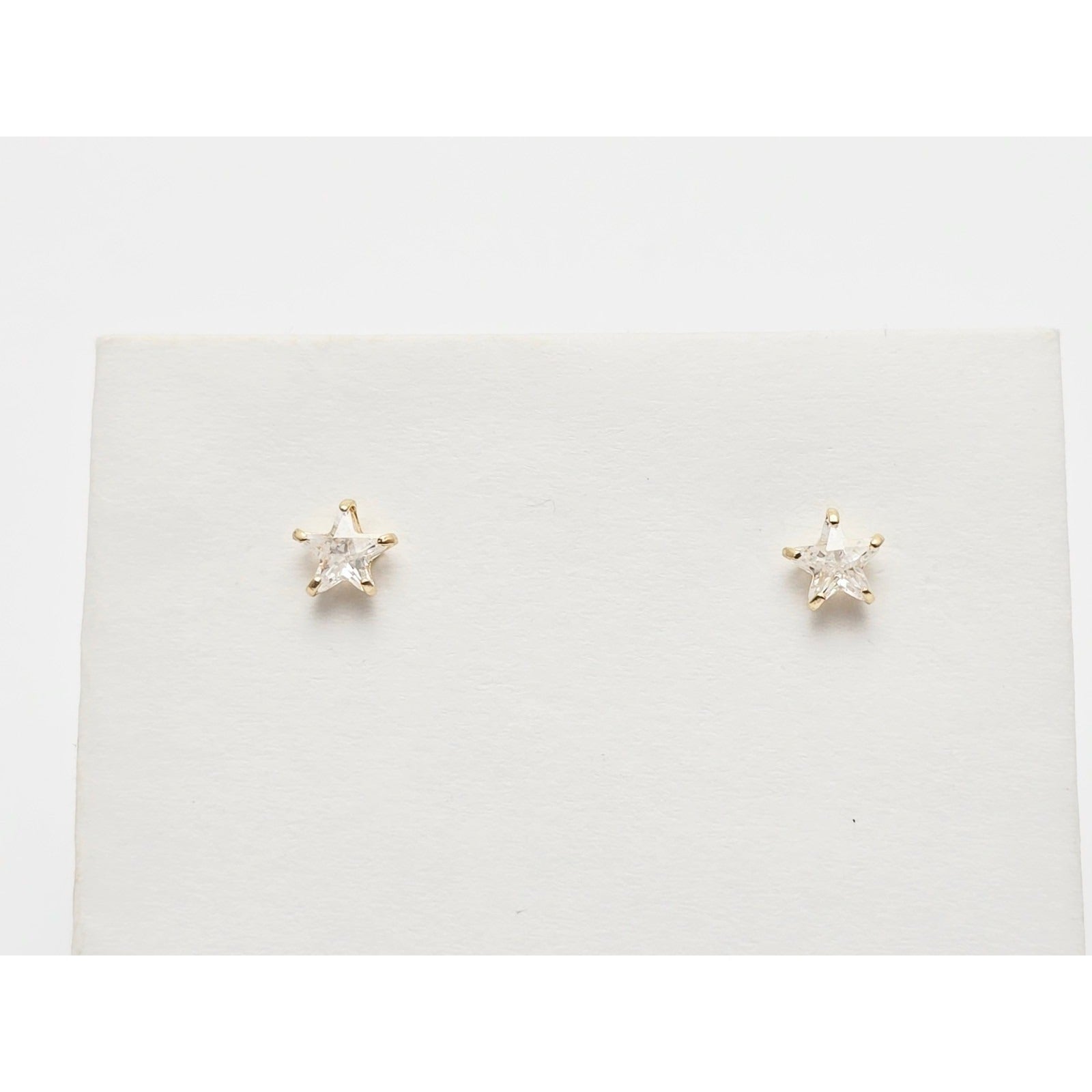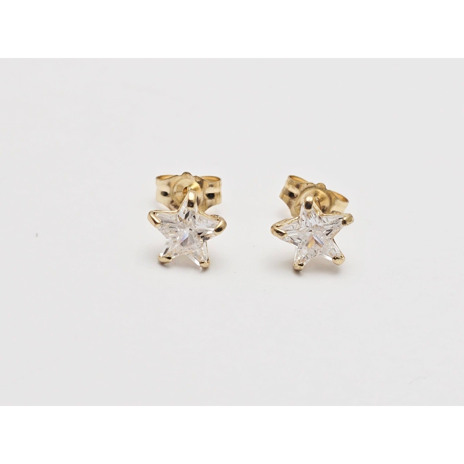 14K Yellow Gold Star Shaped CZ Stud Earrings