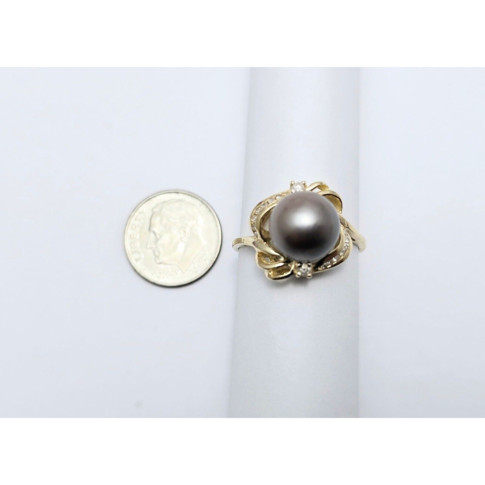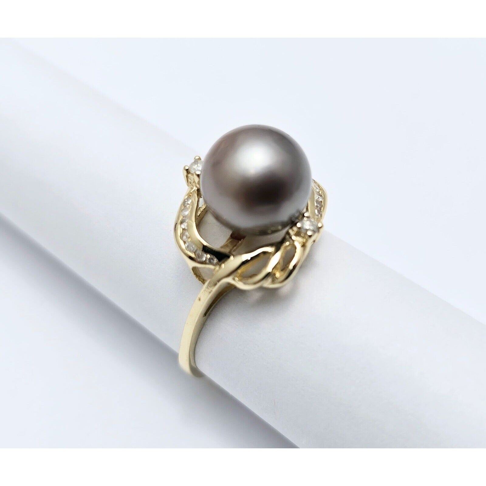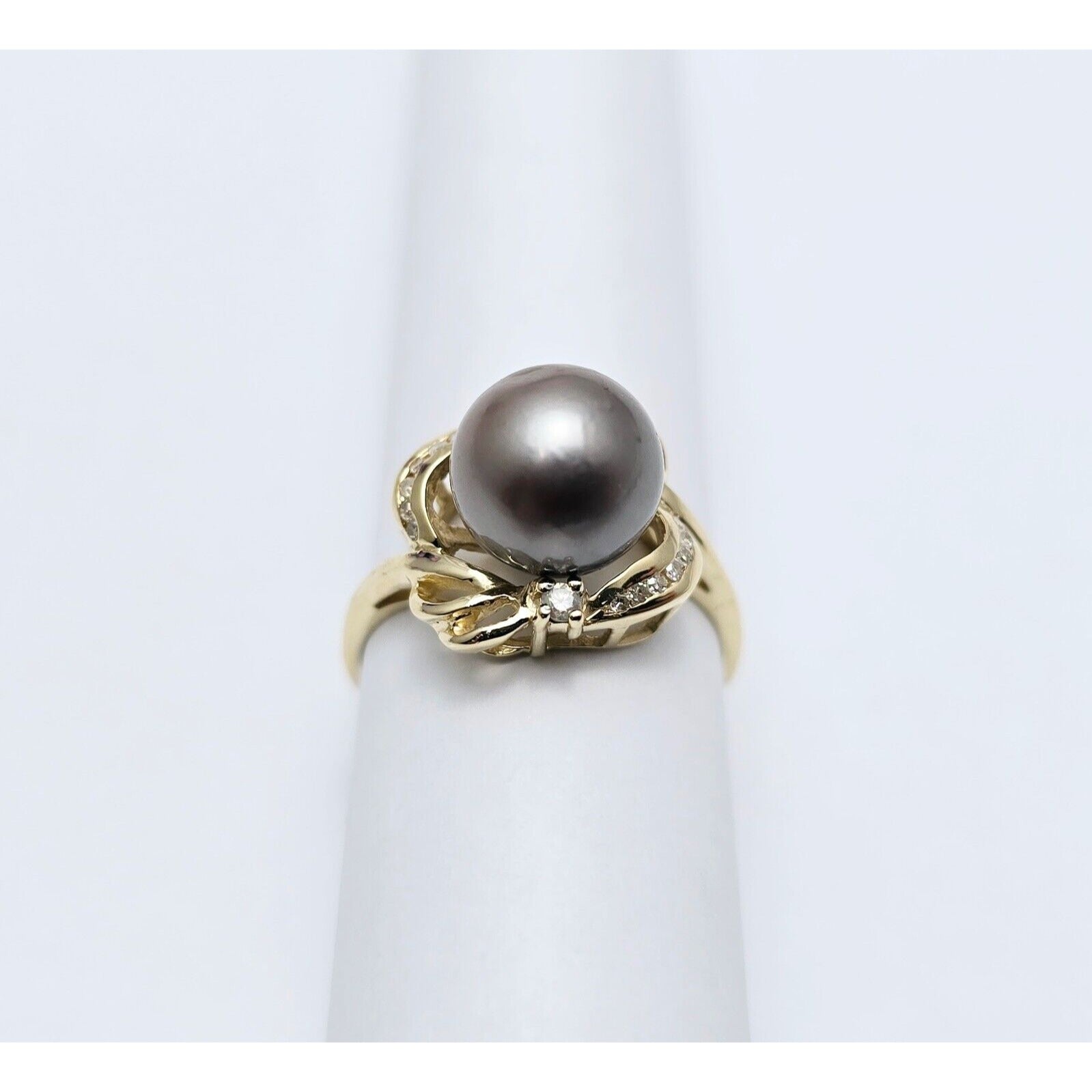 14K Yellow Gold Tahitian Pearl & Diamond Ring