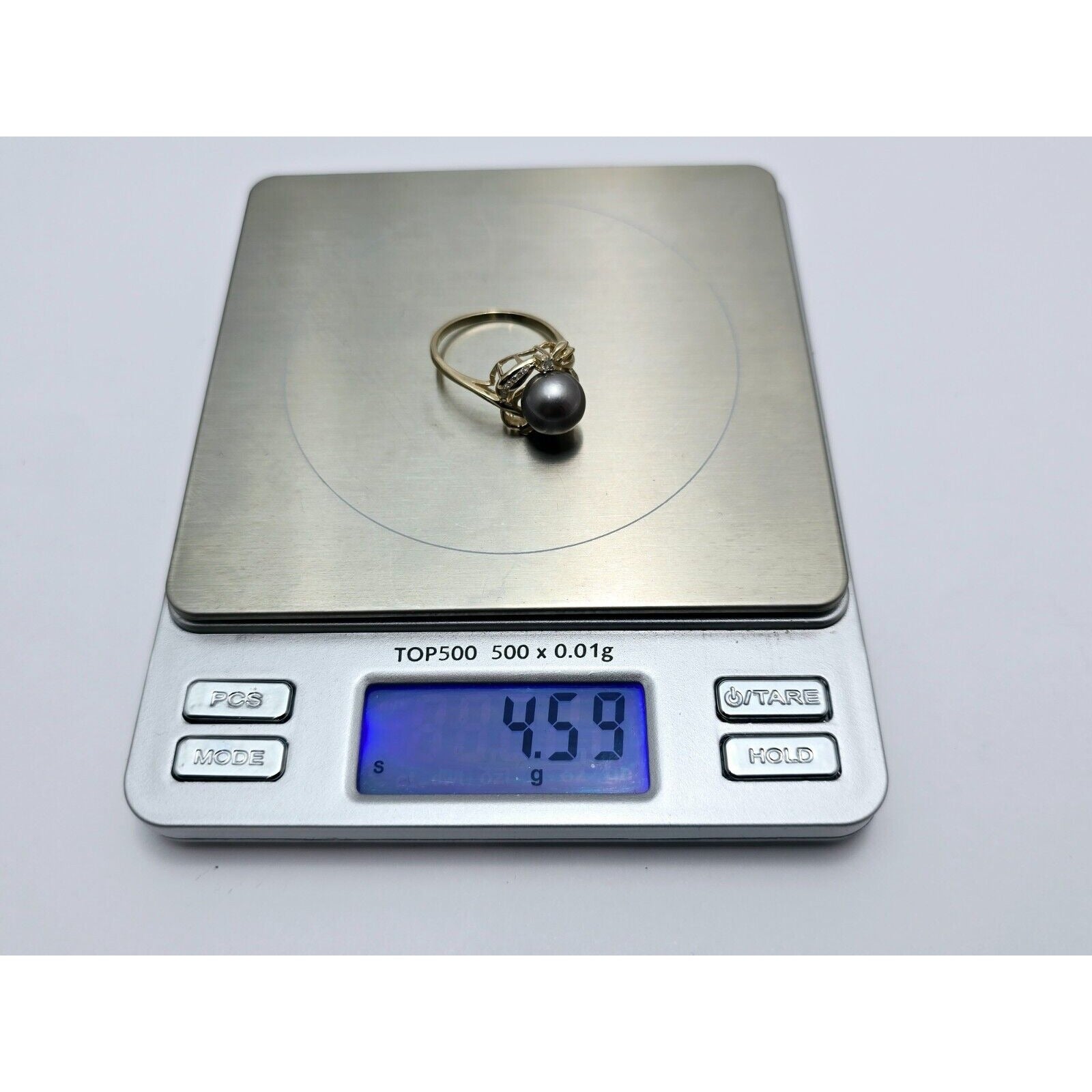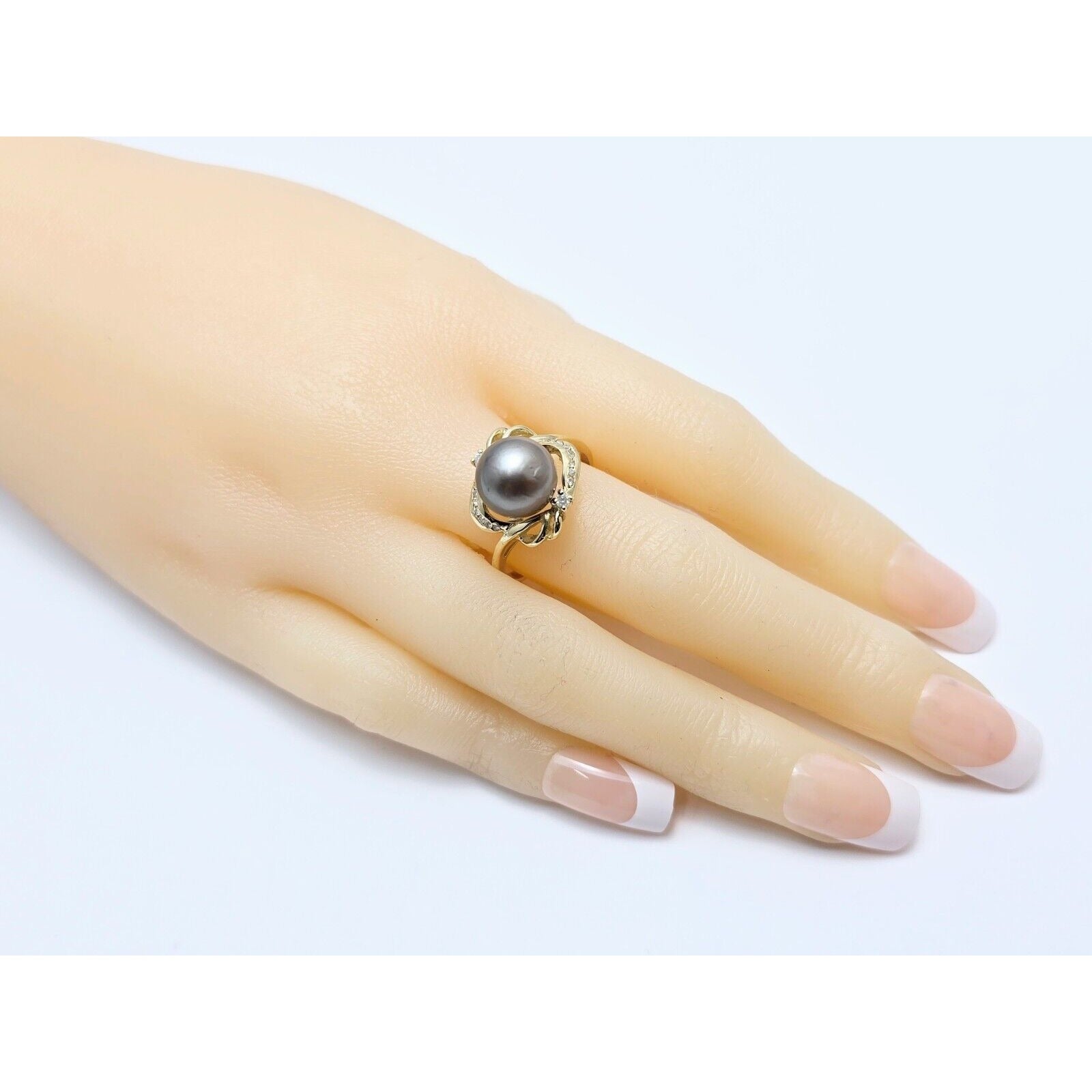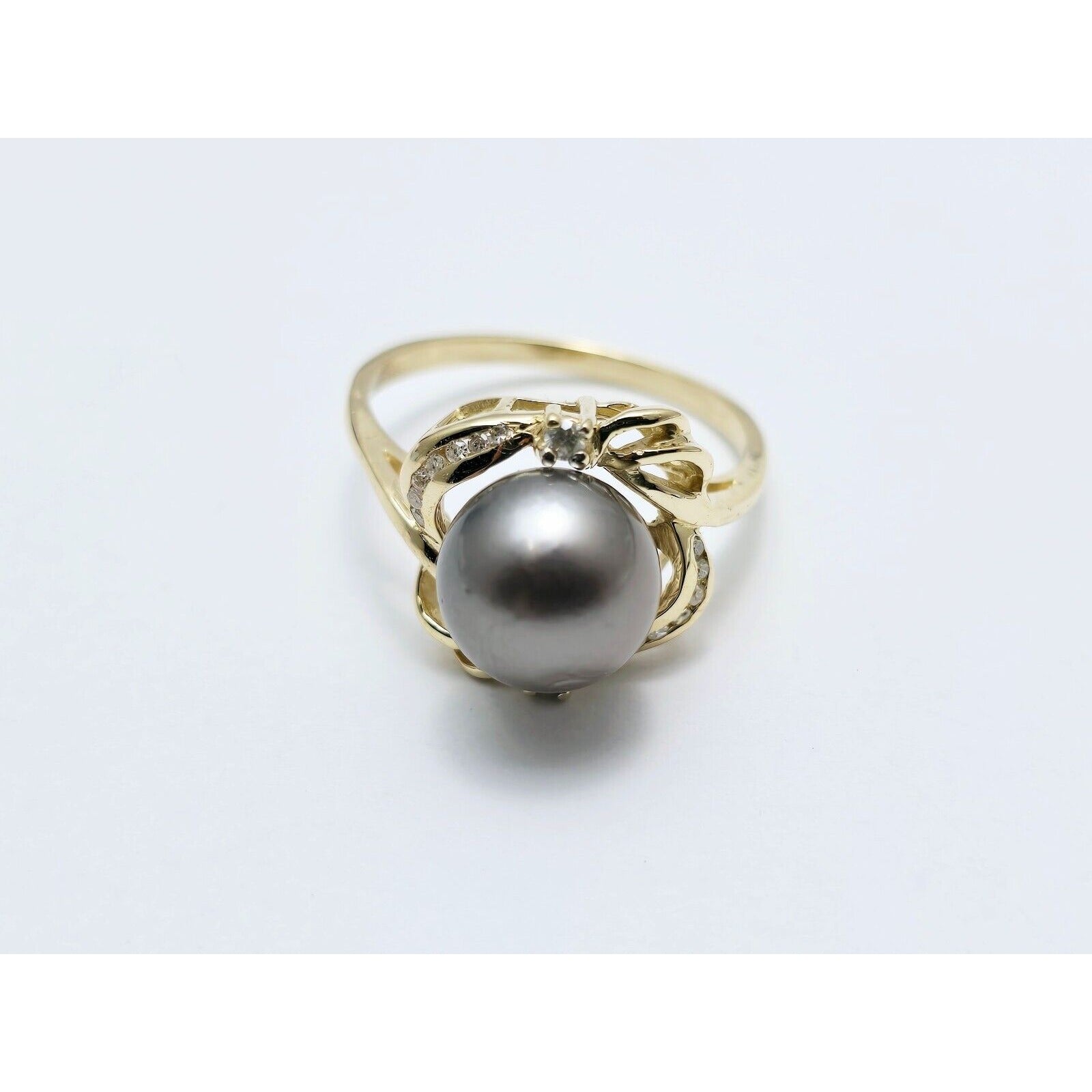 14K Yellow Gold Tahitian Pearl & Diamond Ring