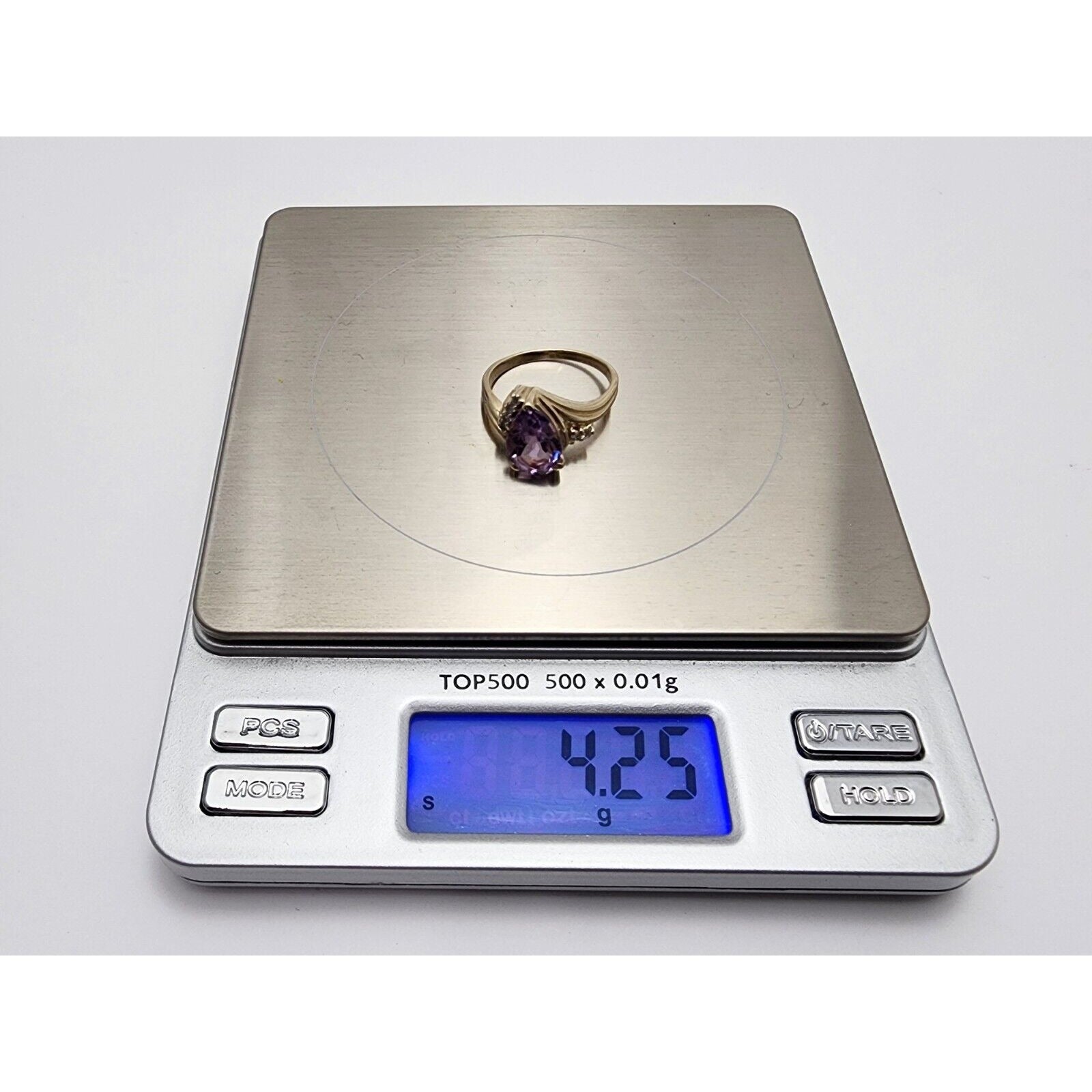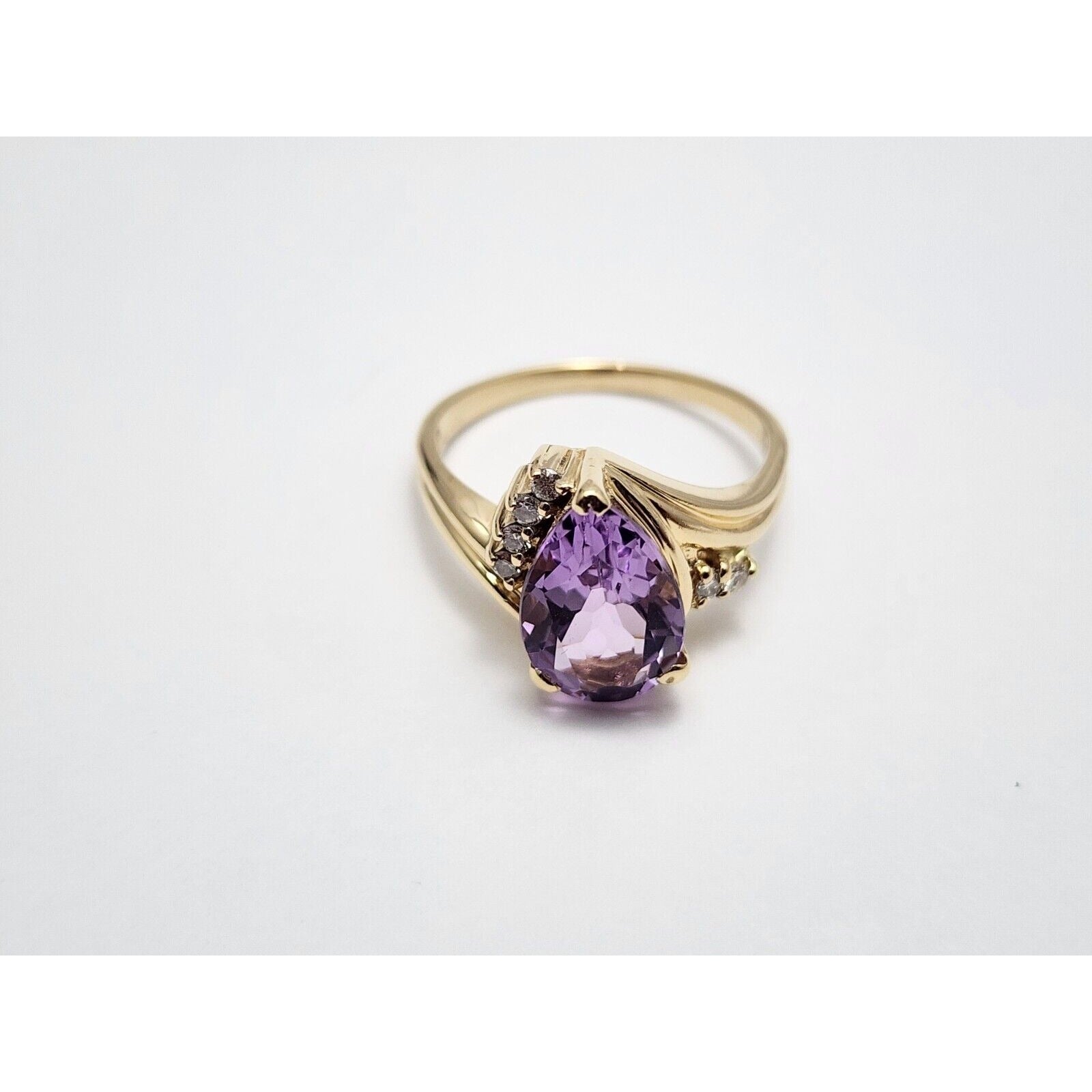 14K Yellow Gold Teardrop Pear Amethyst & Diamond Ring