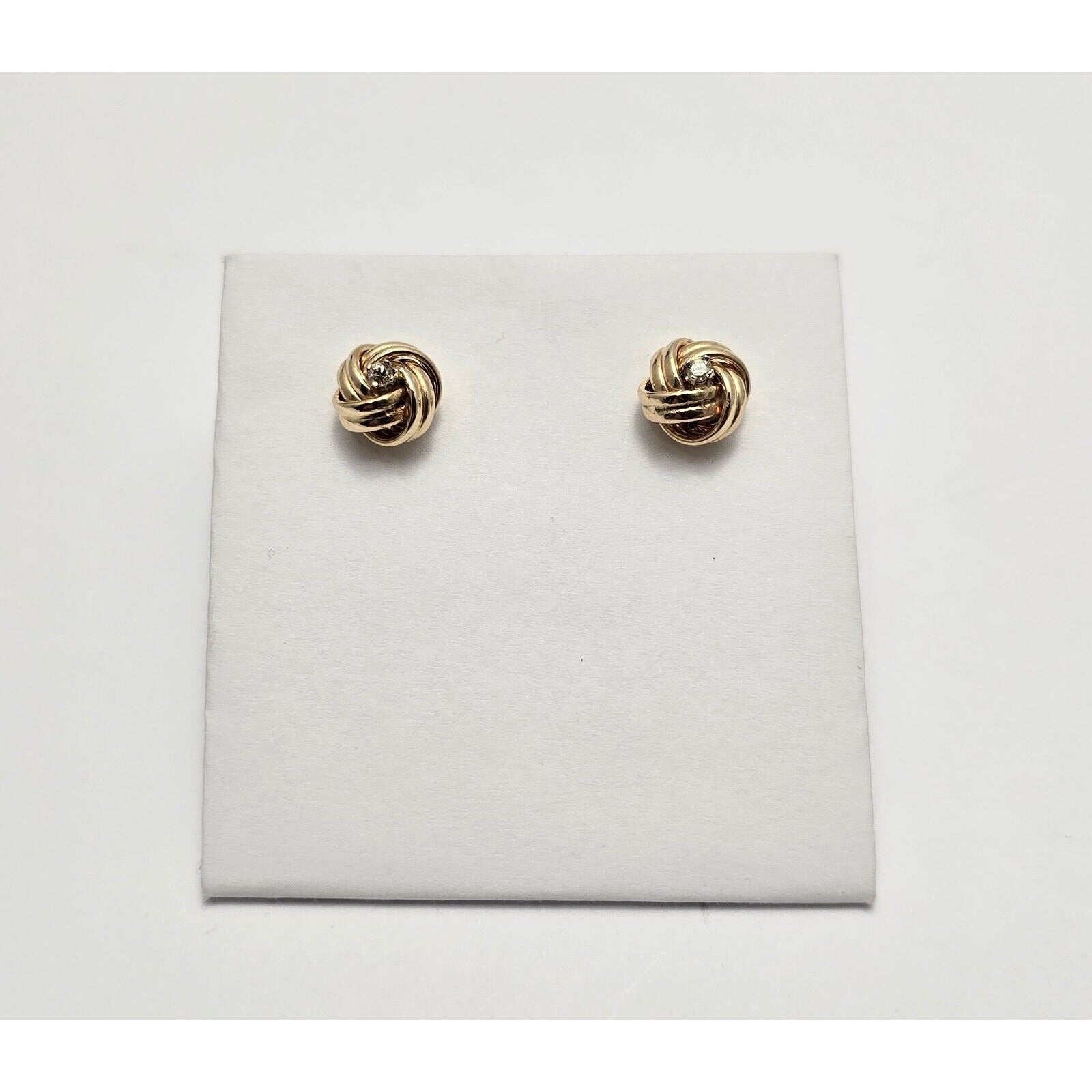 14K Yellow Gold Twist Knot Diamond Stud Earrings