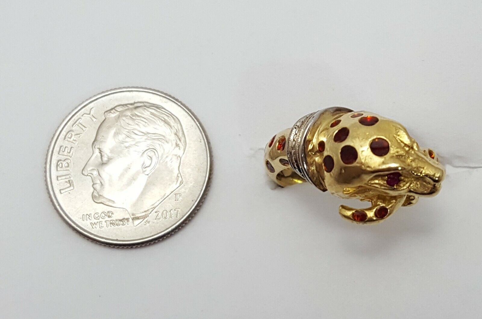 18K Multi Color Gold Colored Enamel & Ruby Snake Ring