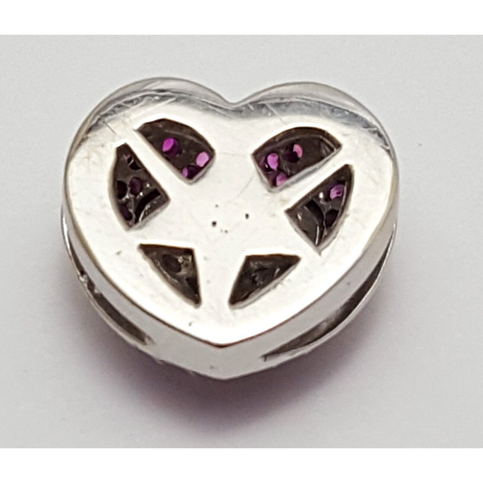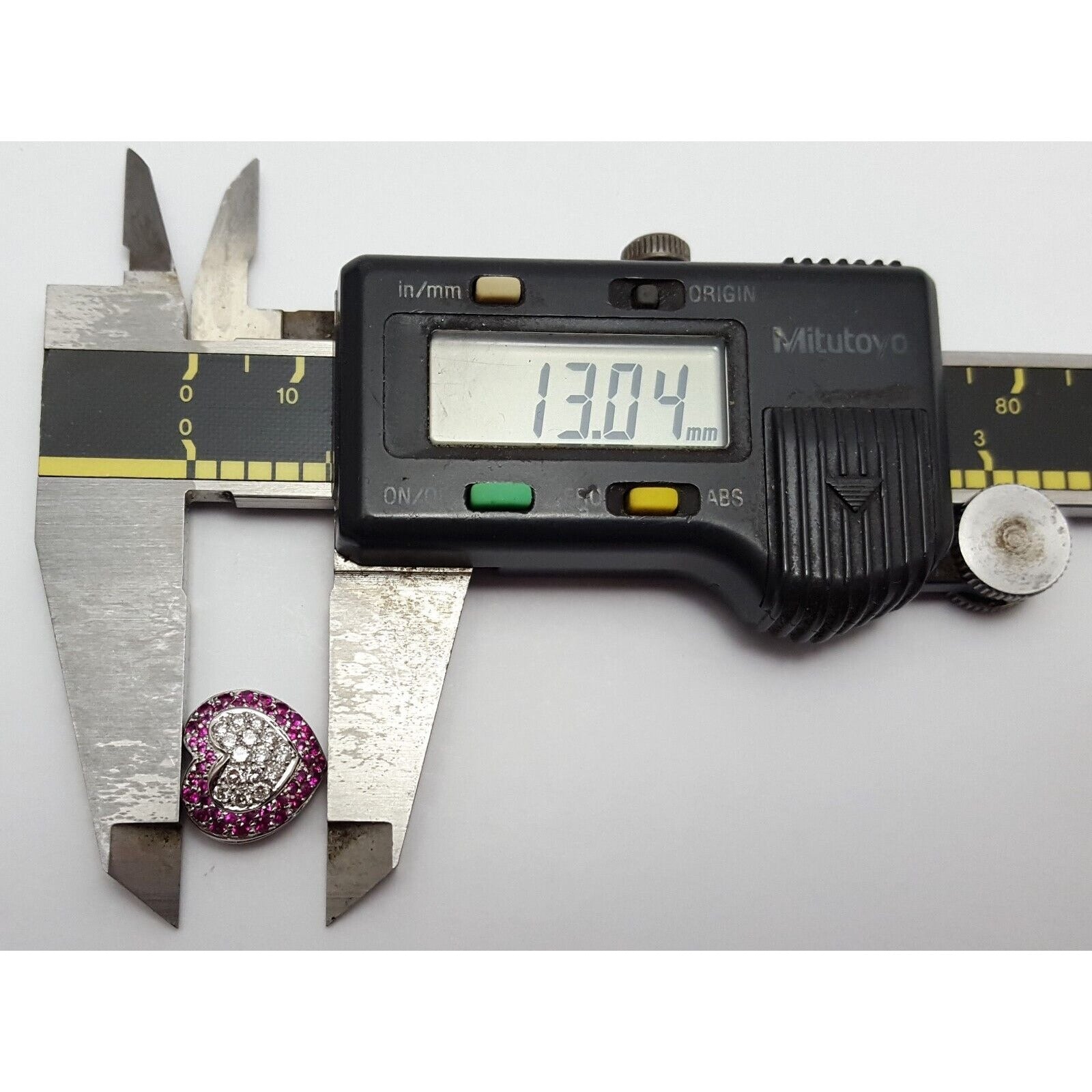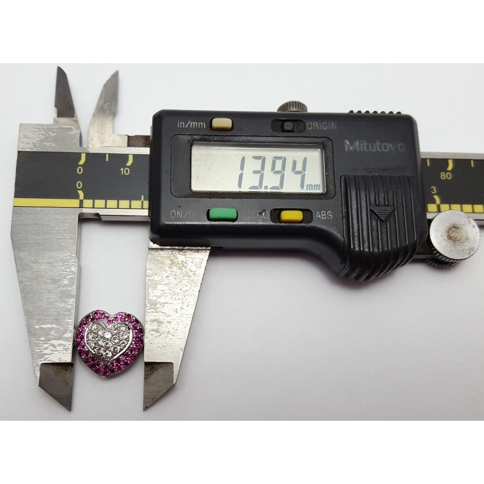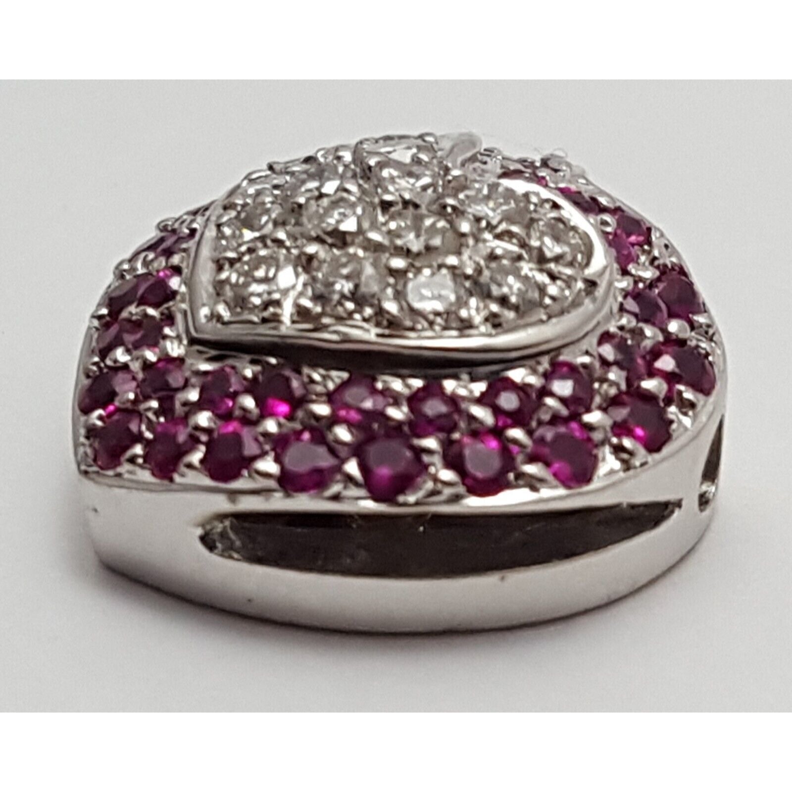 18K Solid White Gold Diamond & Ruby Puffy Heart Charm Pendant