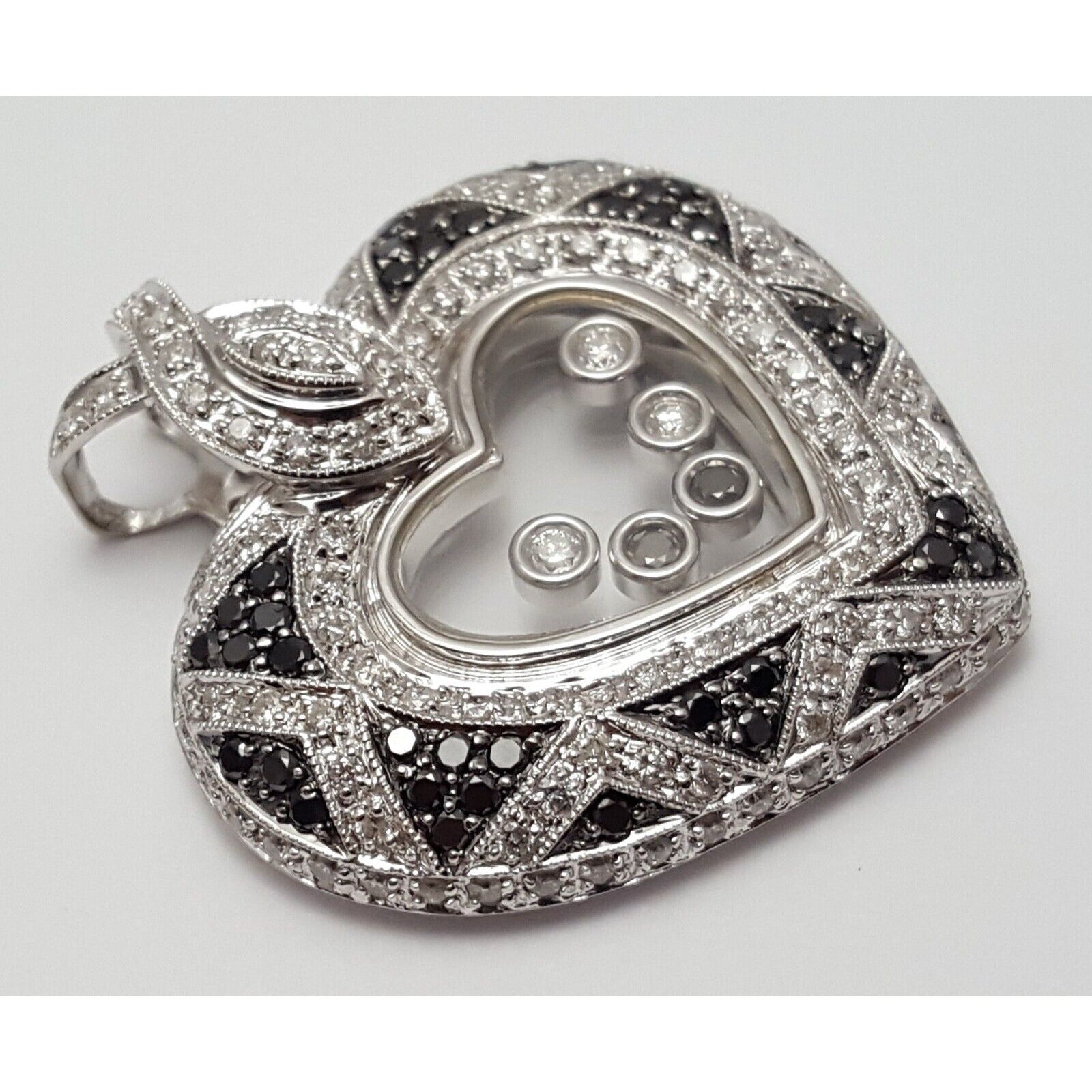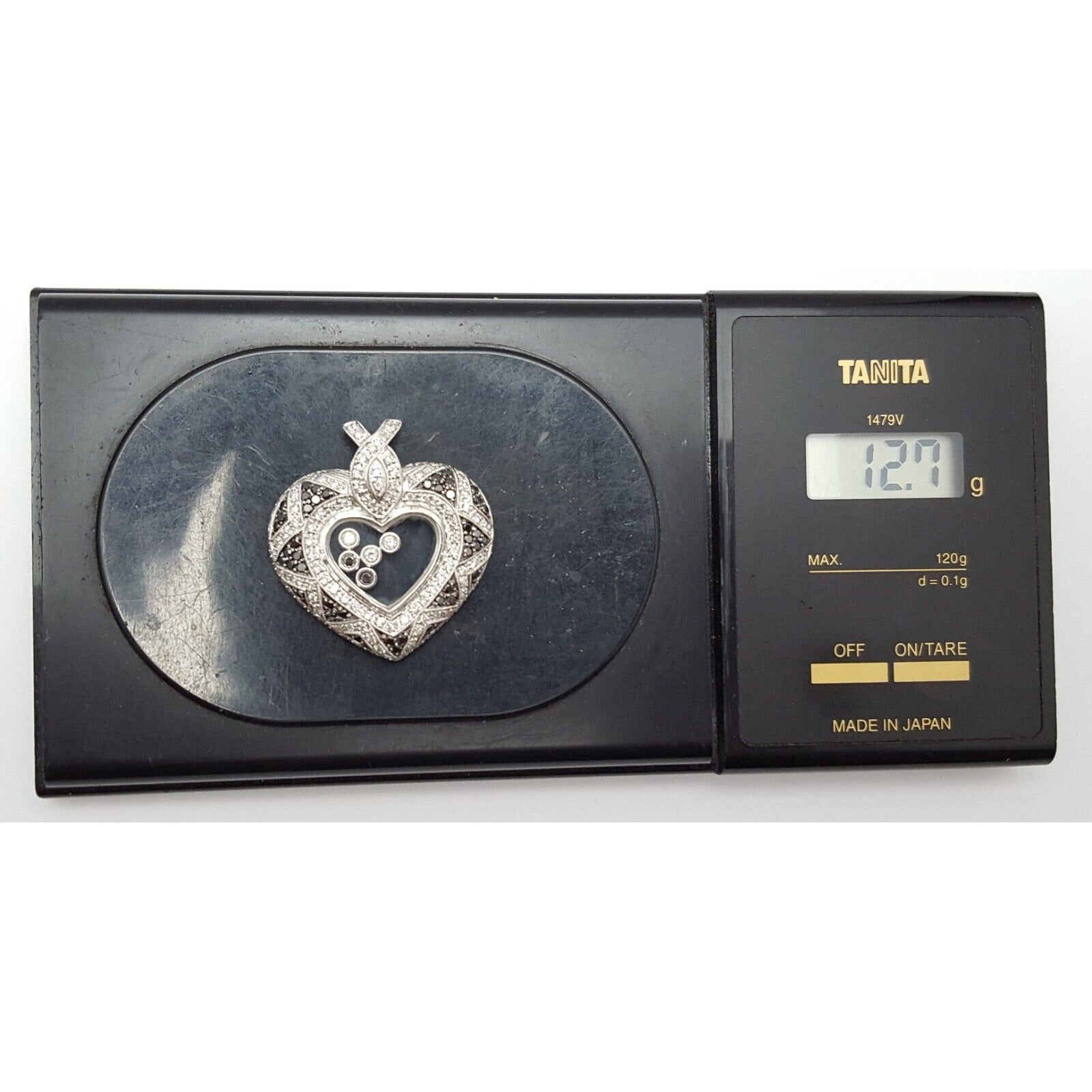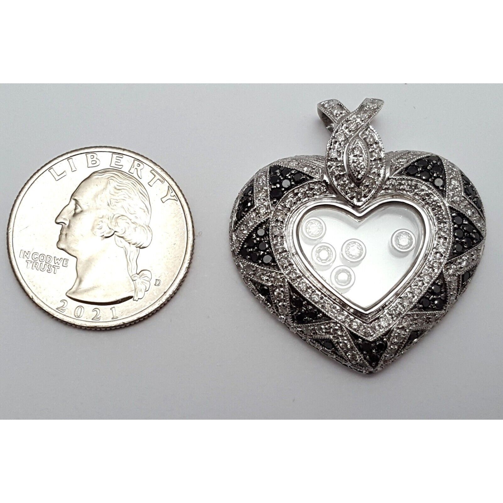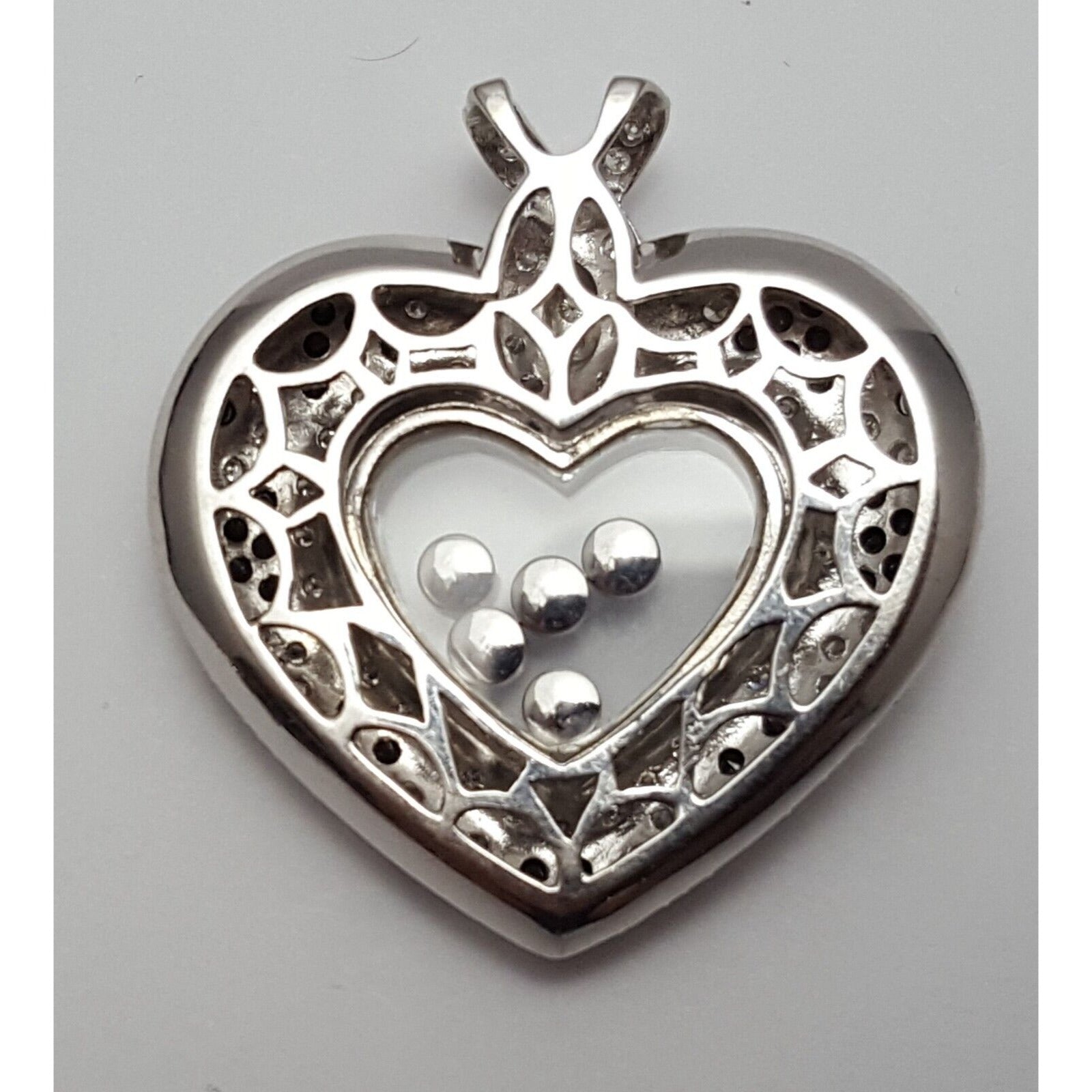 18K Solid White Gold Ladies Moving Diamond Heart Charm Pendant