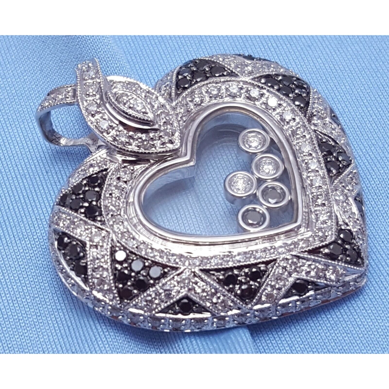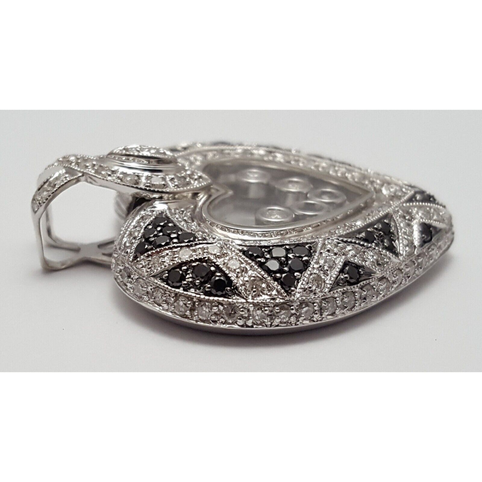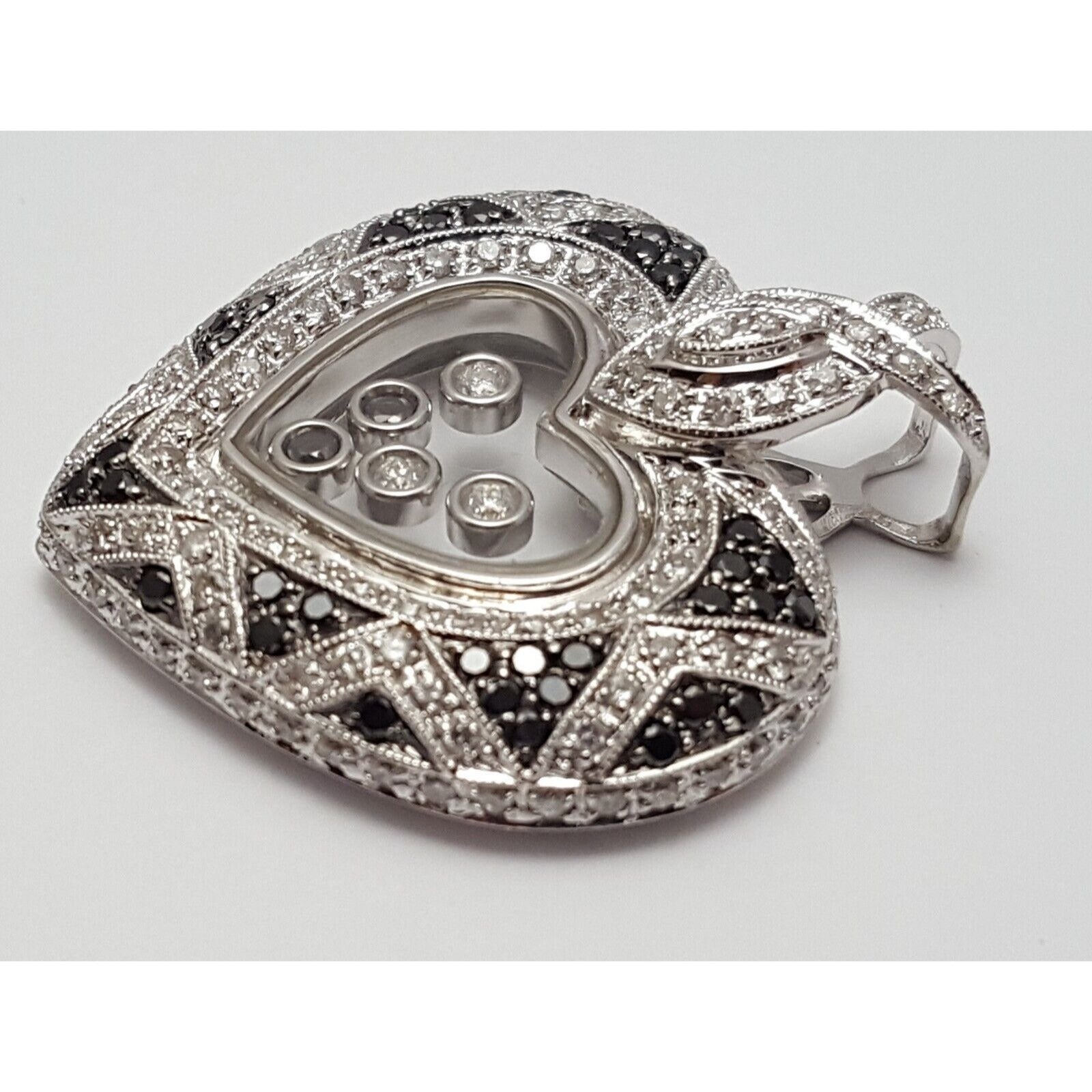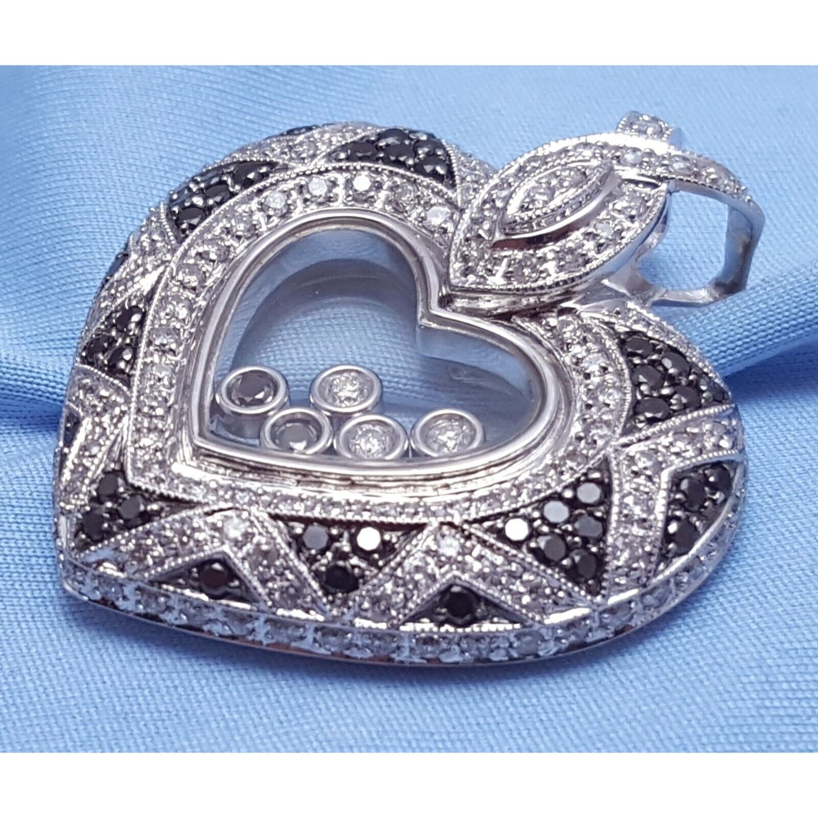 18K Solid White Gold Ladies Moving Diamond Heart Charm Pendant