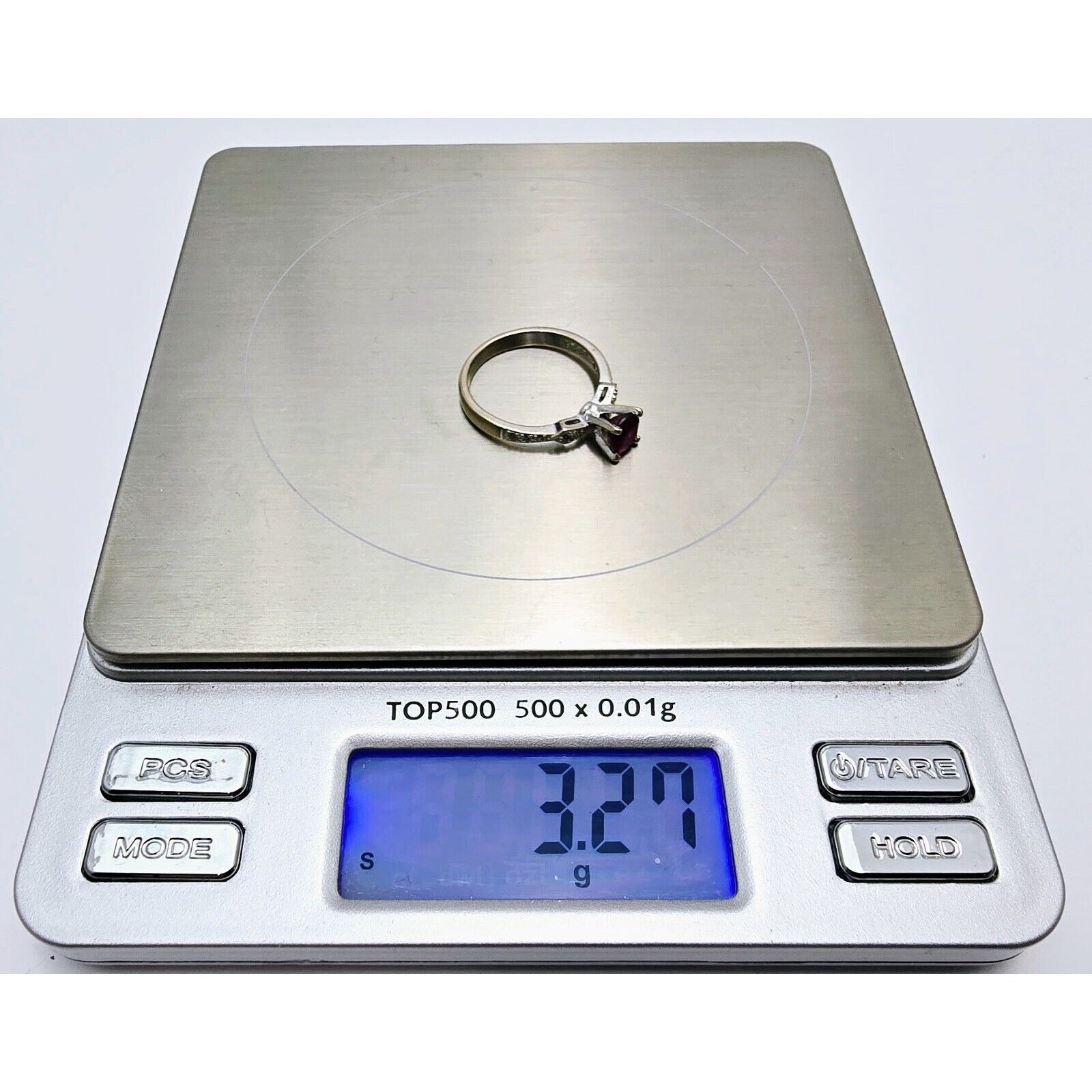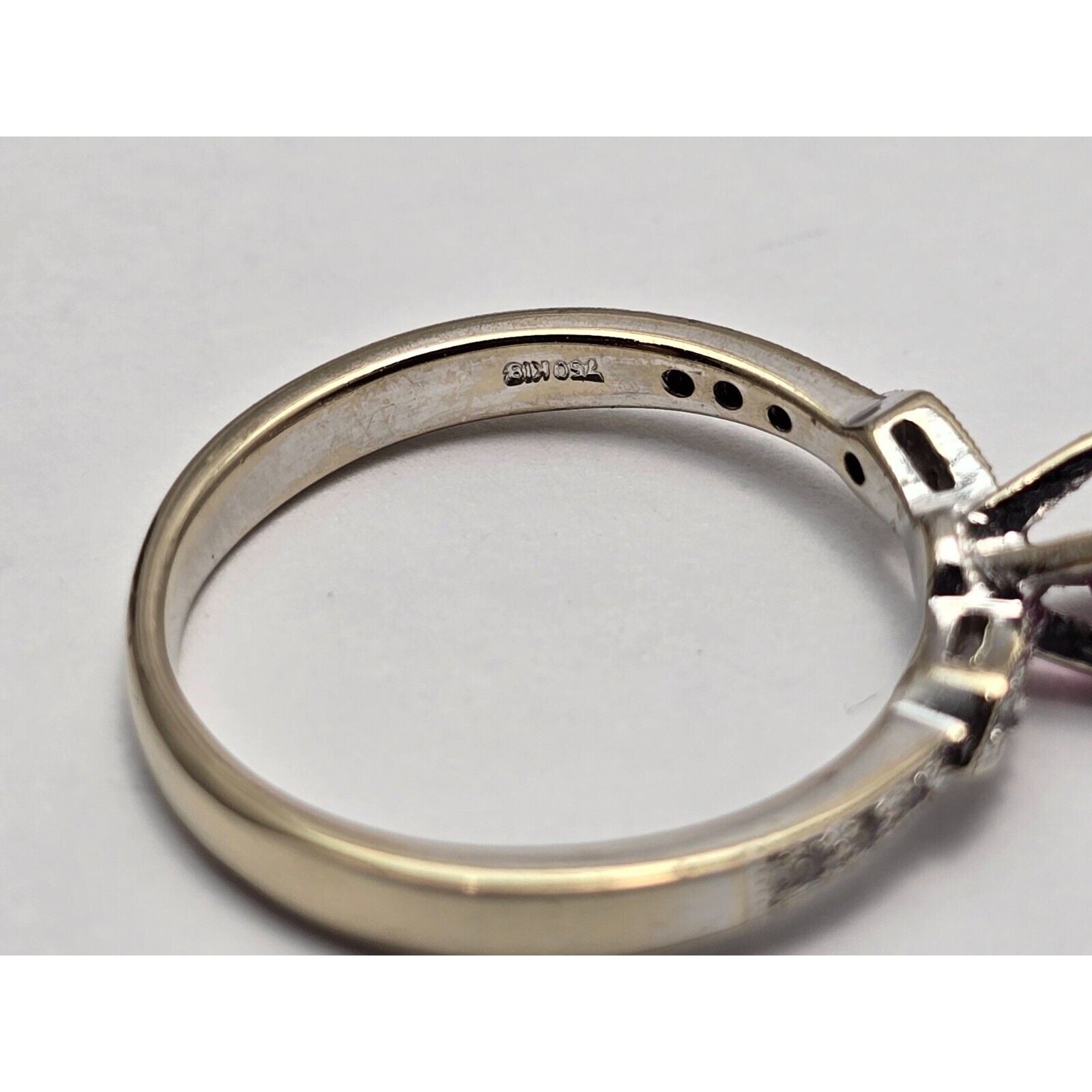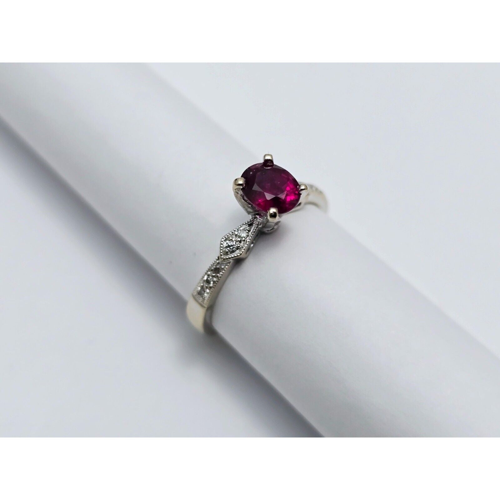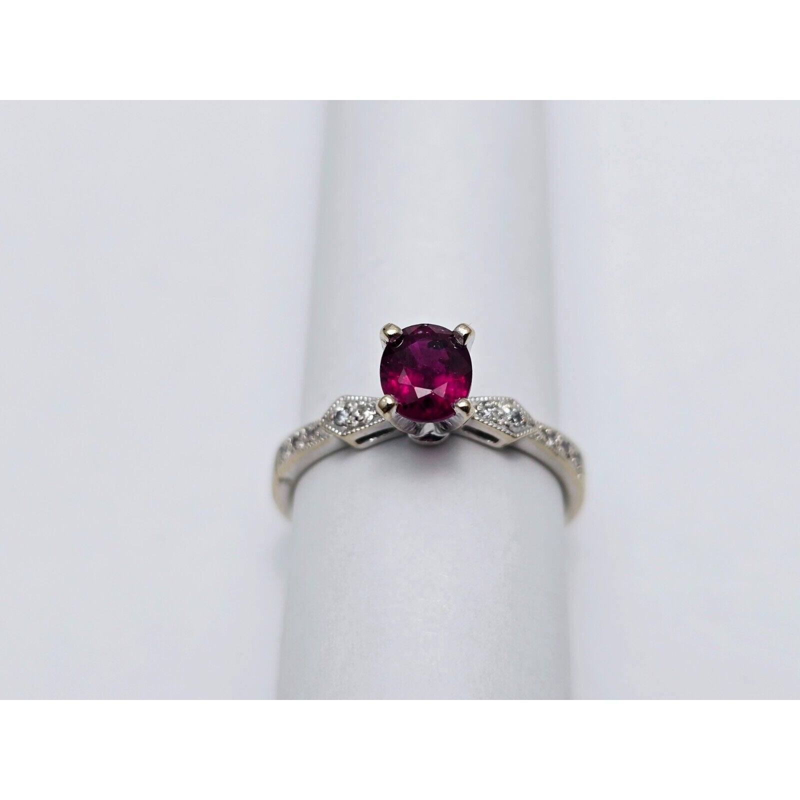 18K White Gold Ladies Solitaire Round Cut Ruby & Diamond Ring