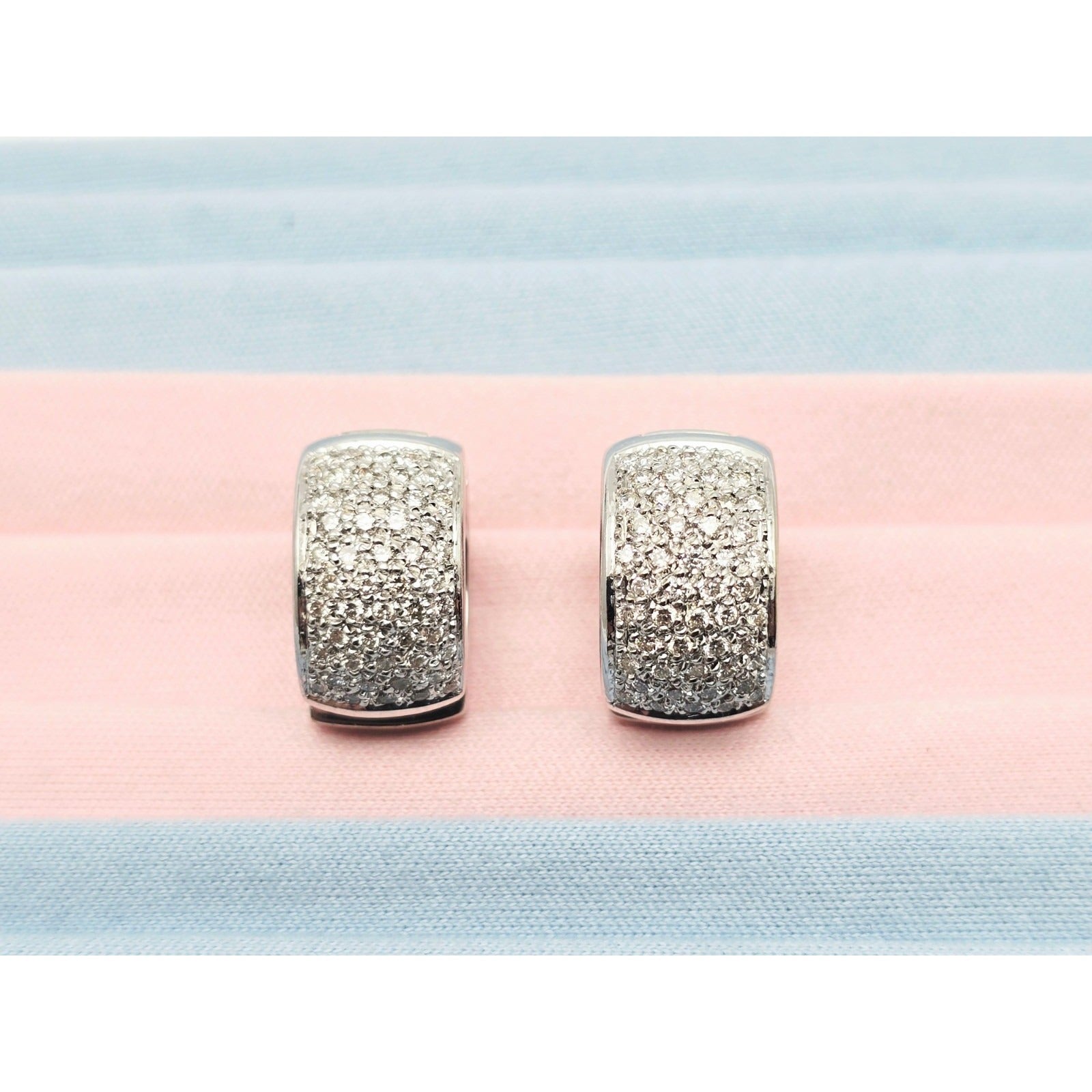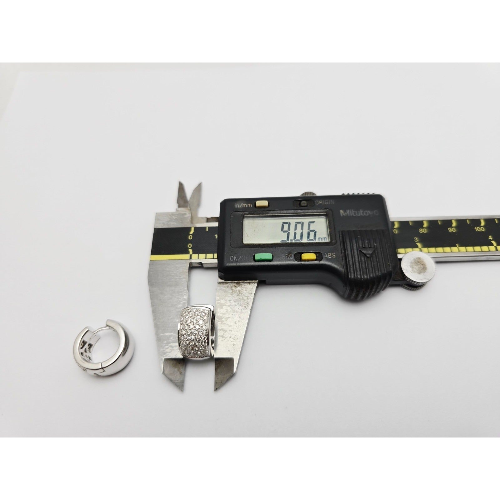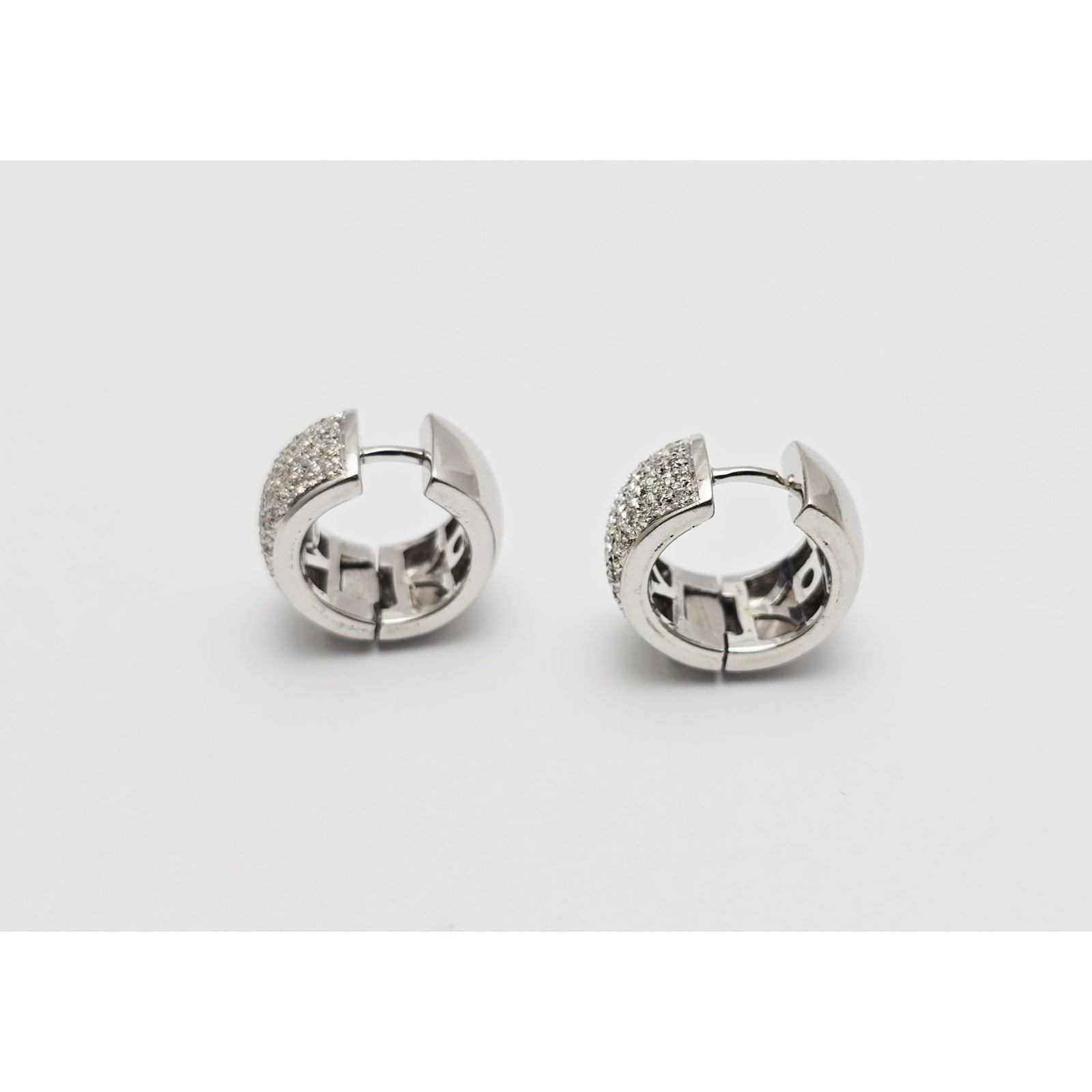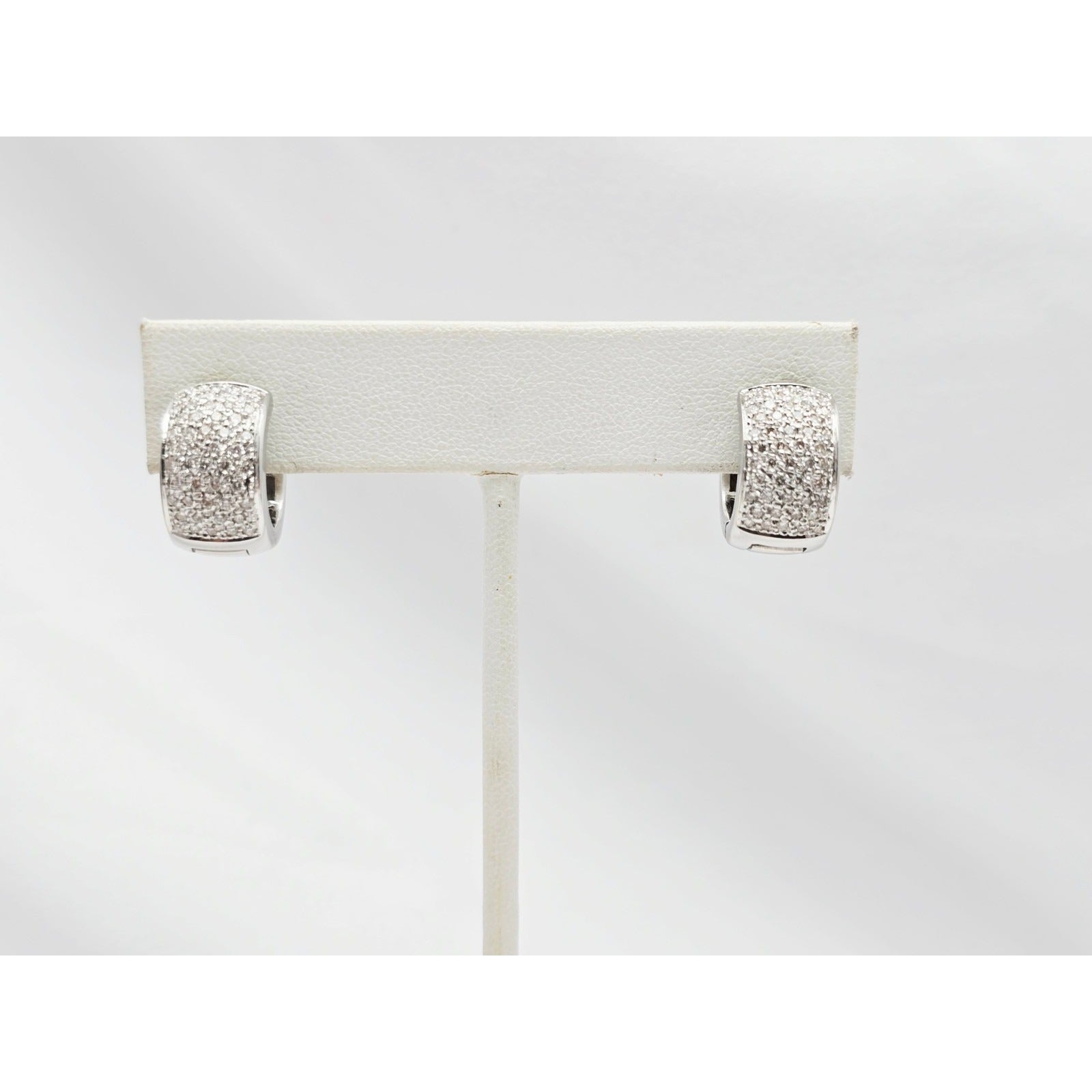 18K White Gold Round Diamond Hinged Hoop Huggie Earrings