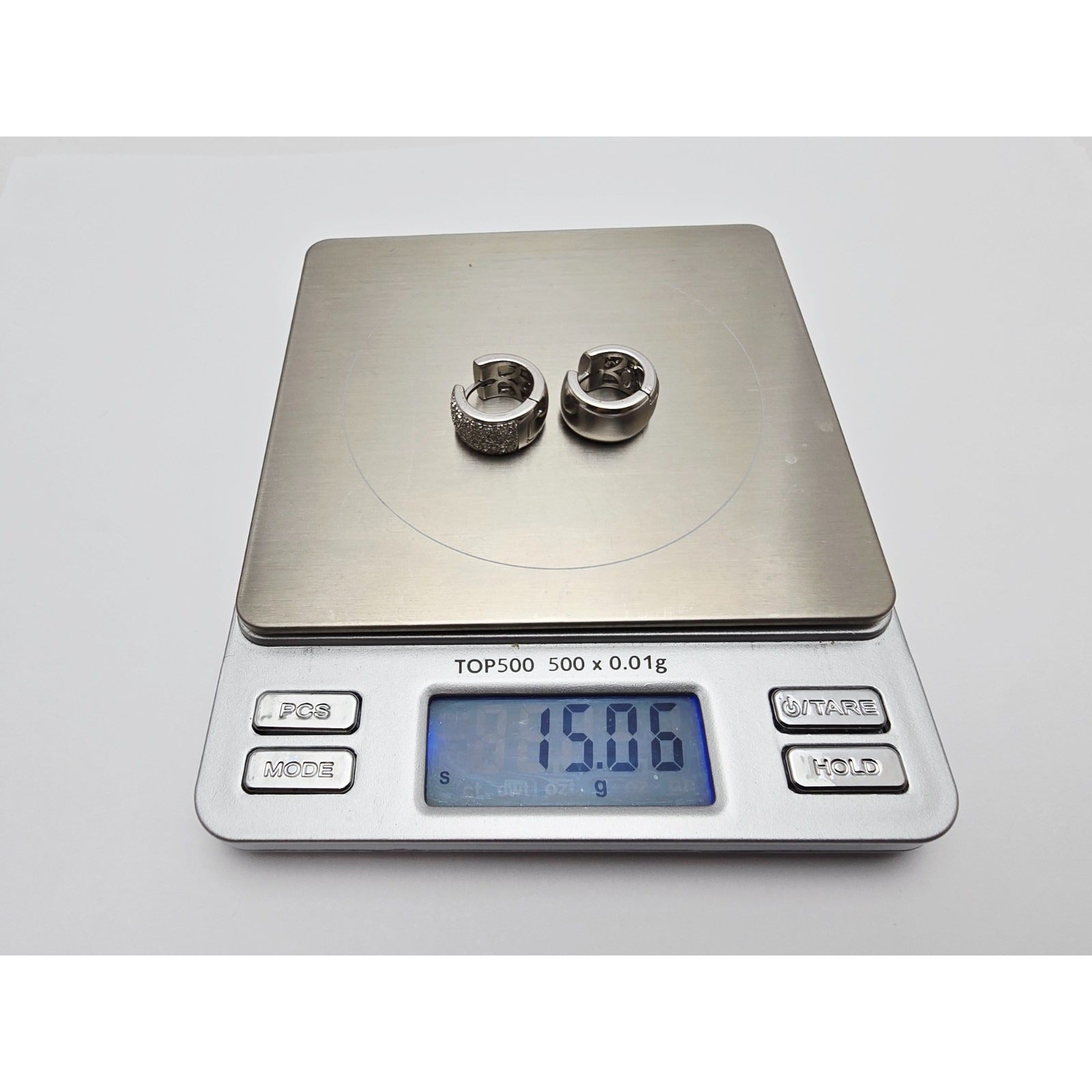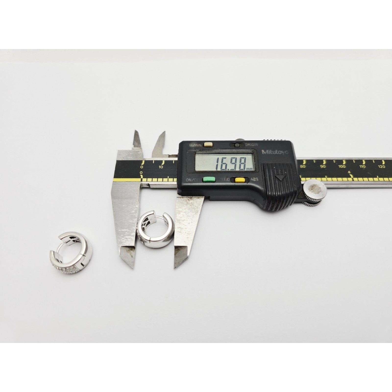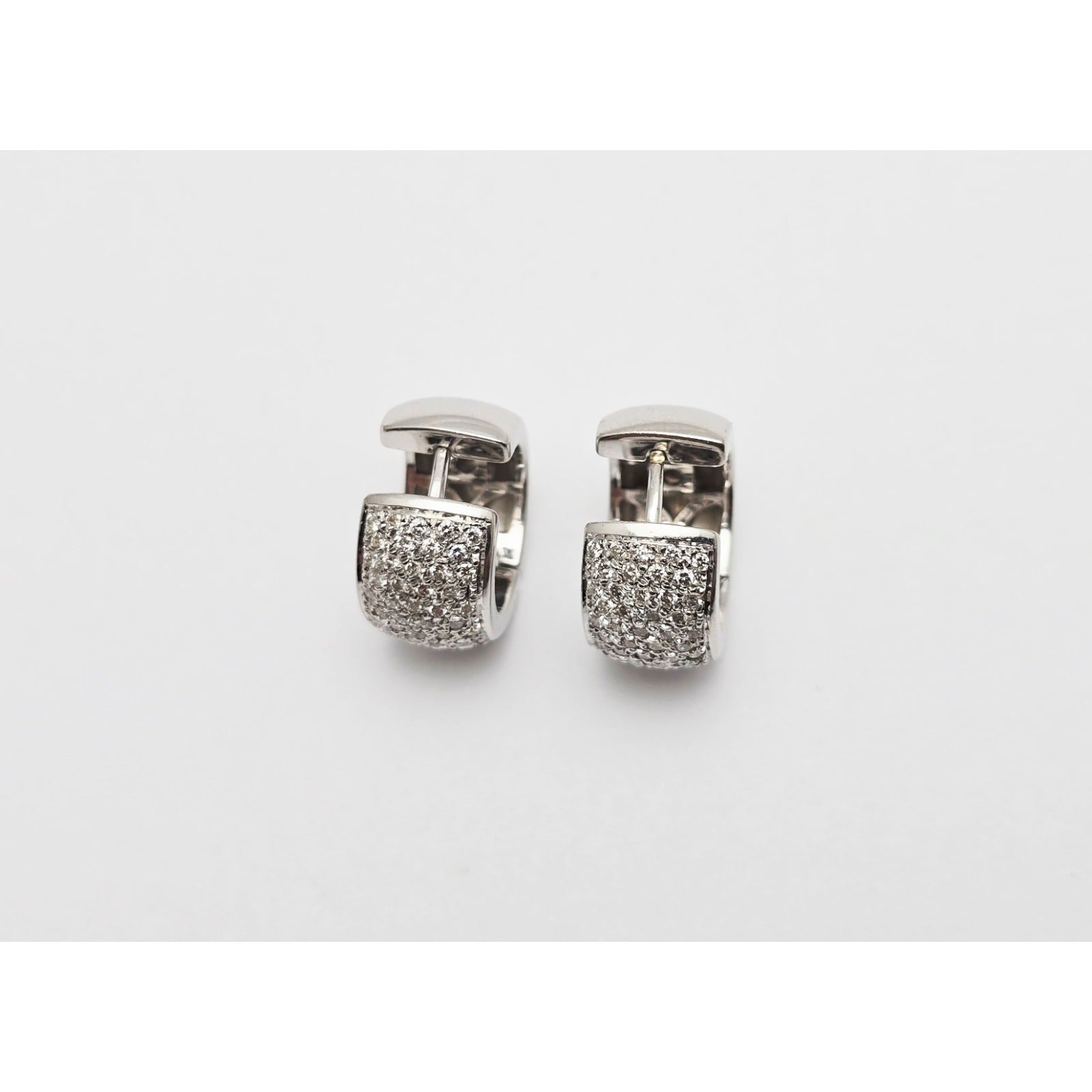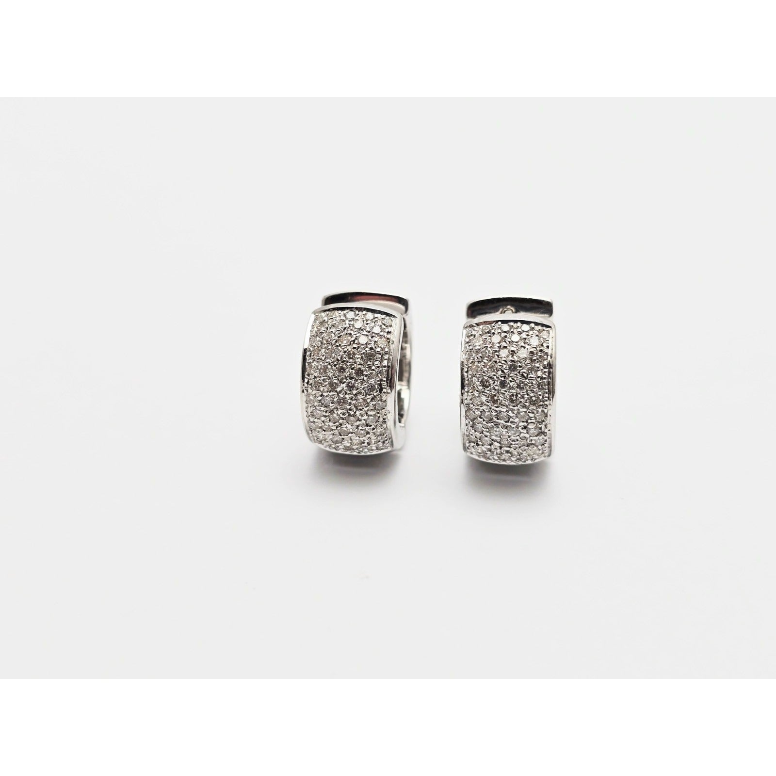 18K White Gold Round Diamond Hinged Hoop Huggie Earrings