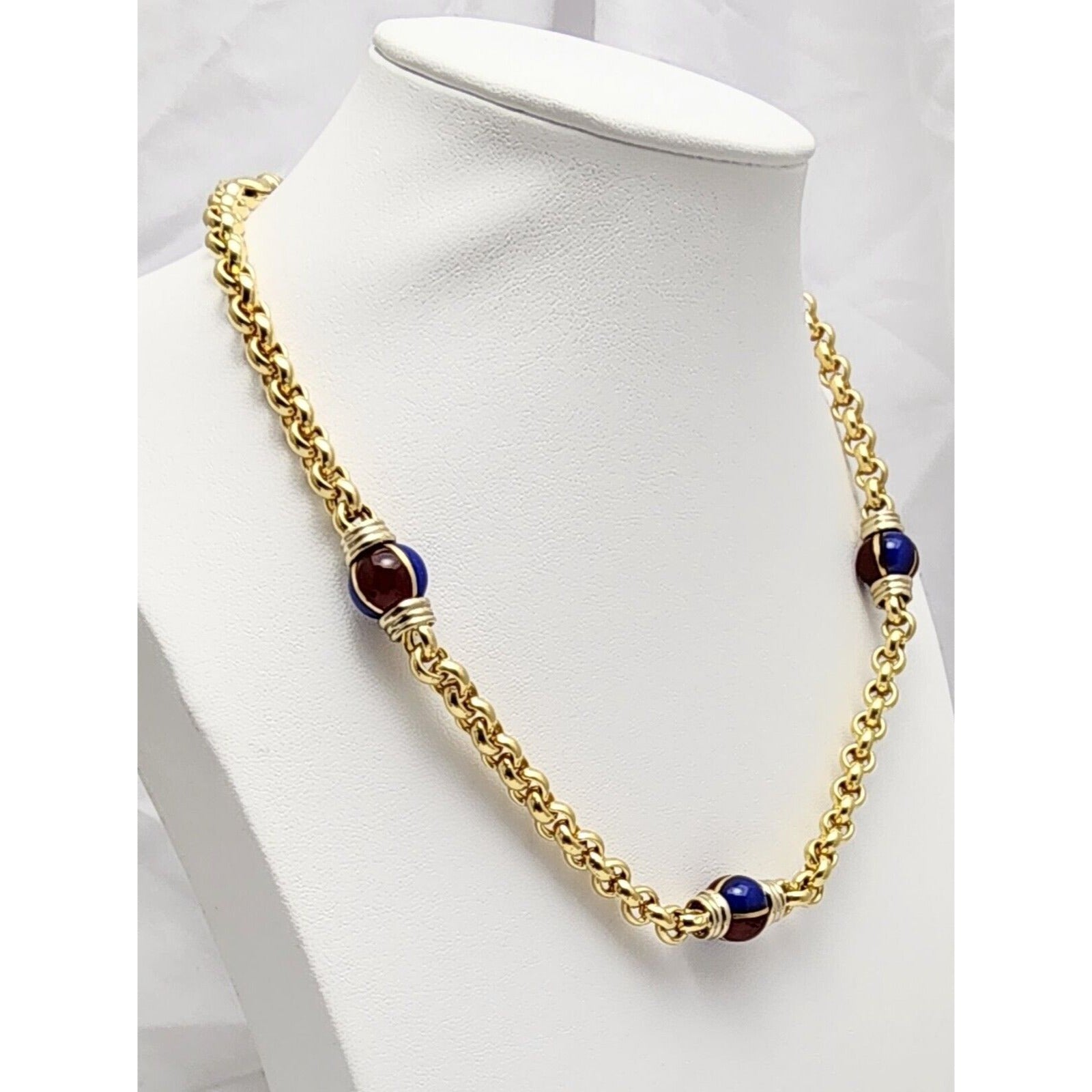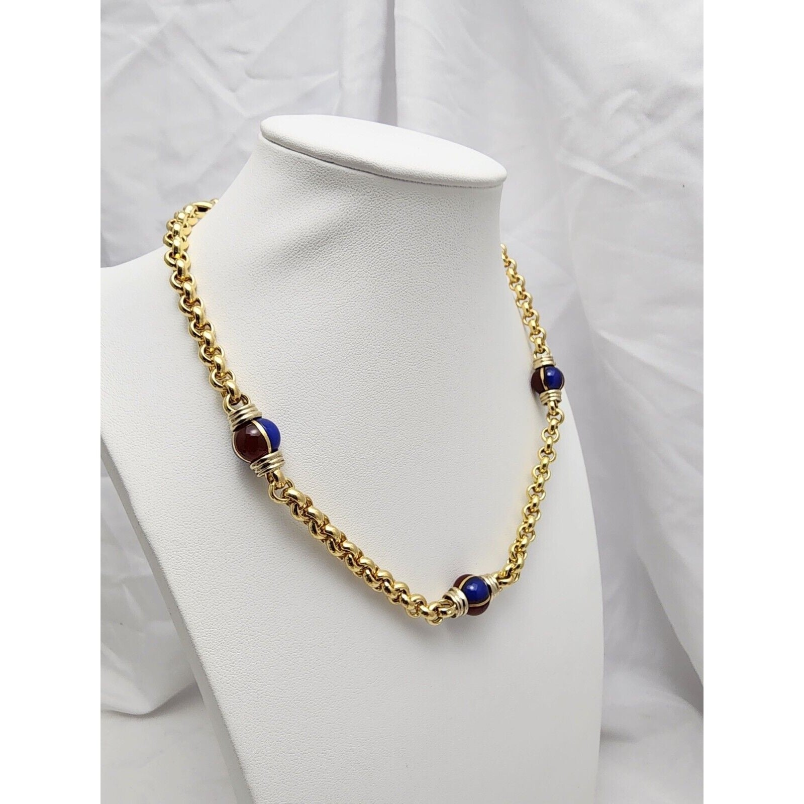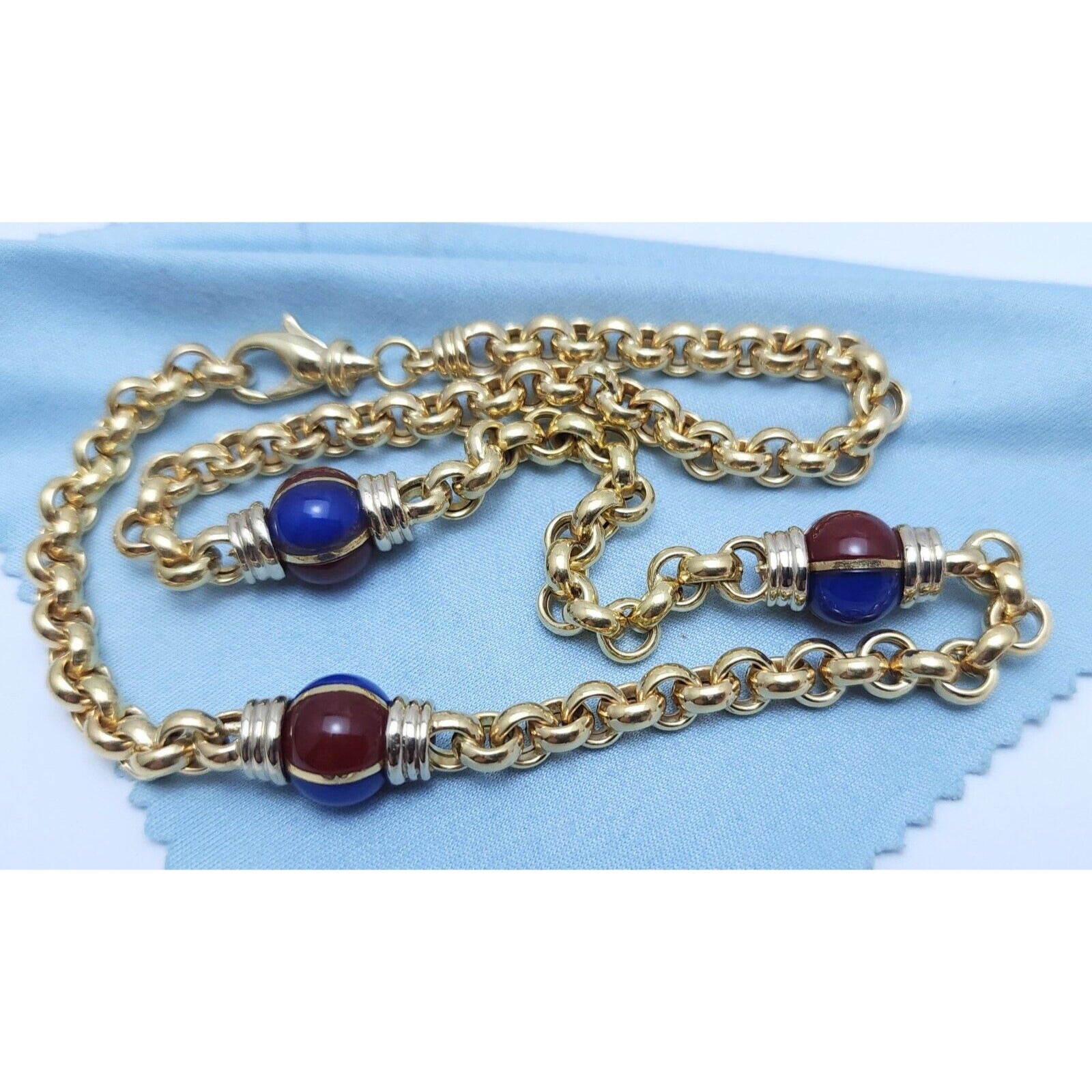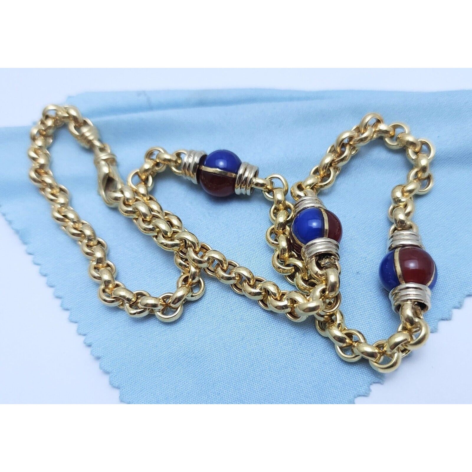 18K Yellow Gold Bead Ball Choker Cable Link Chain Necklace