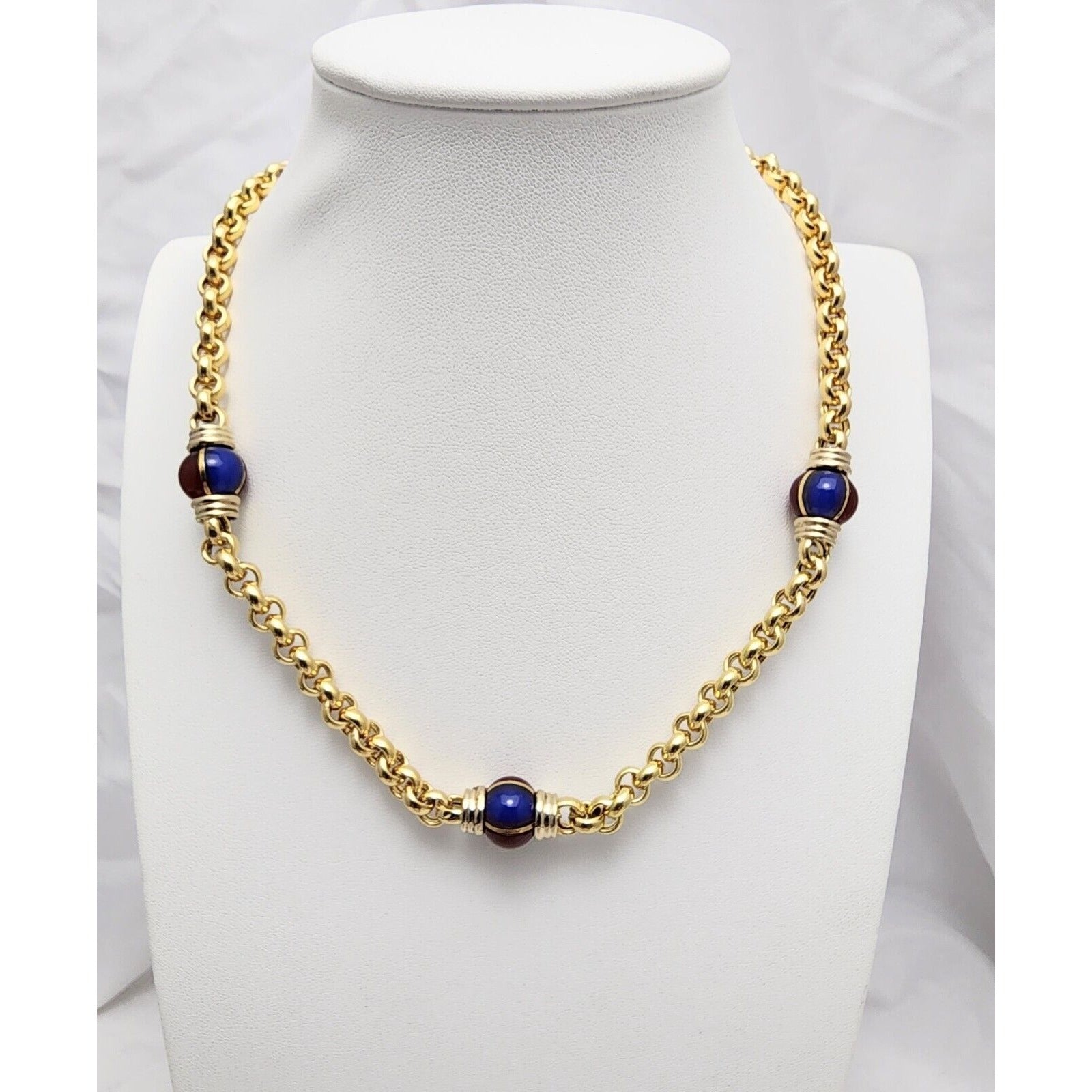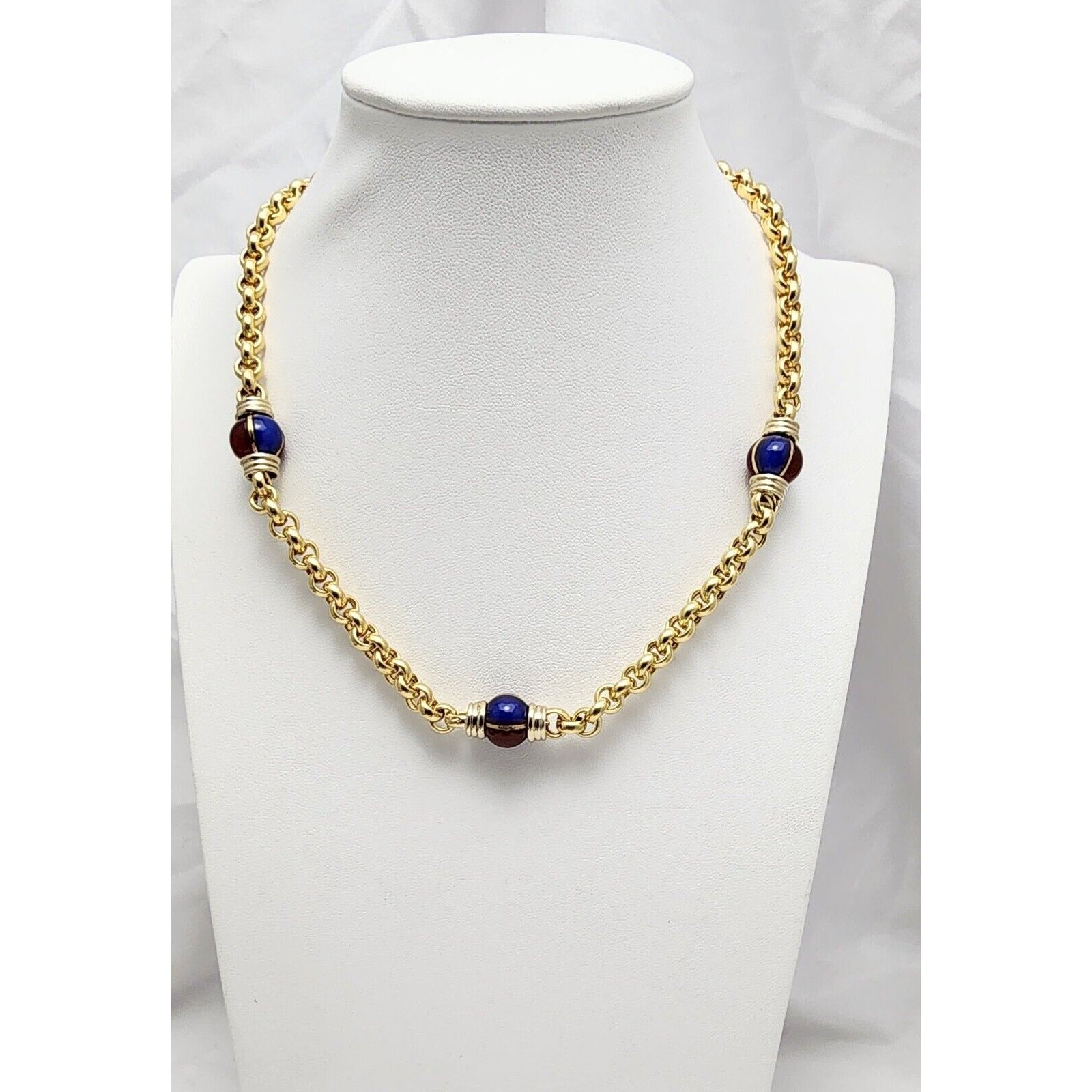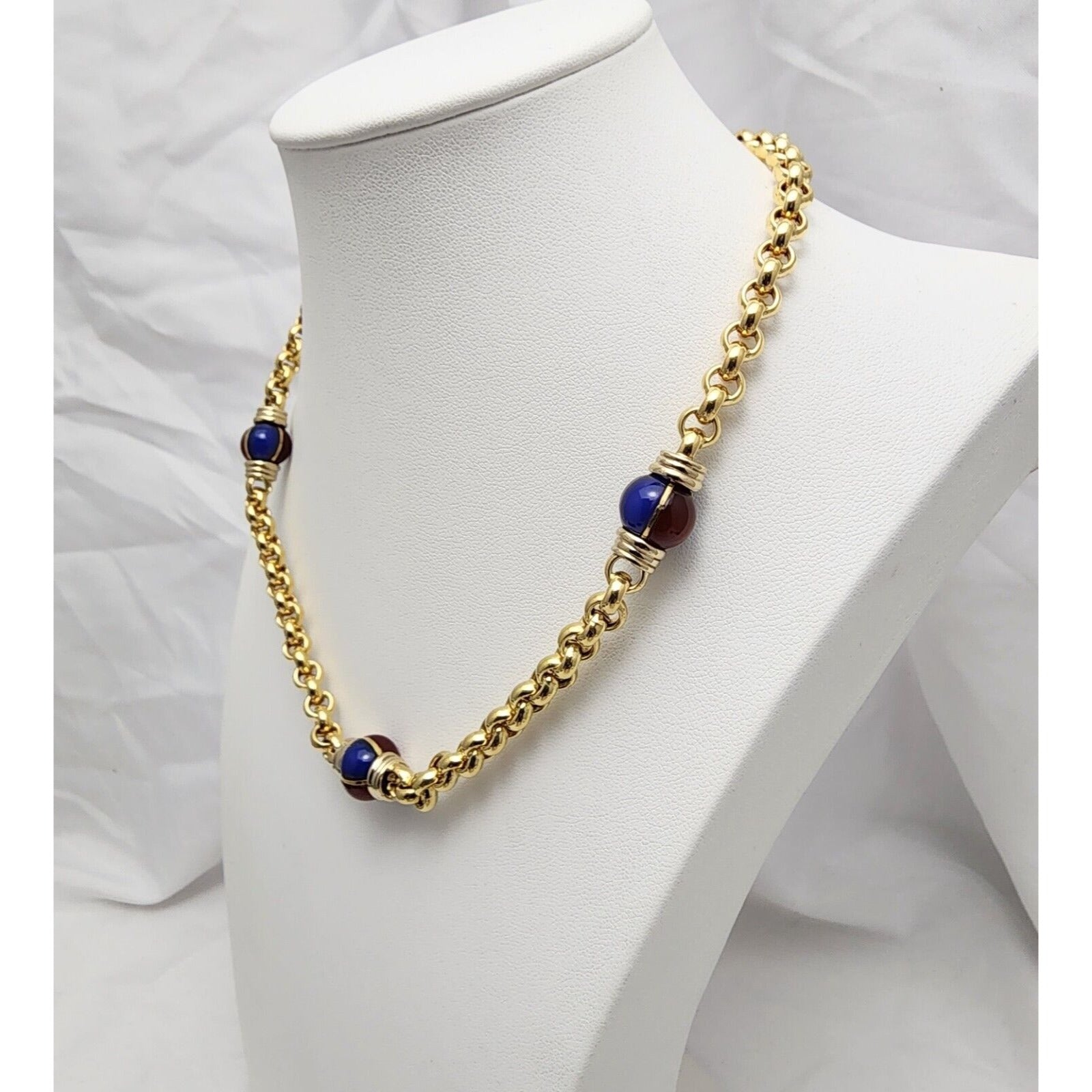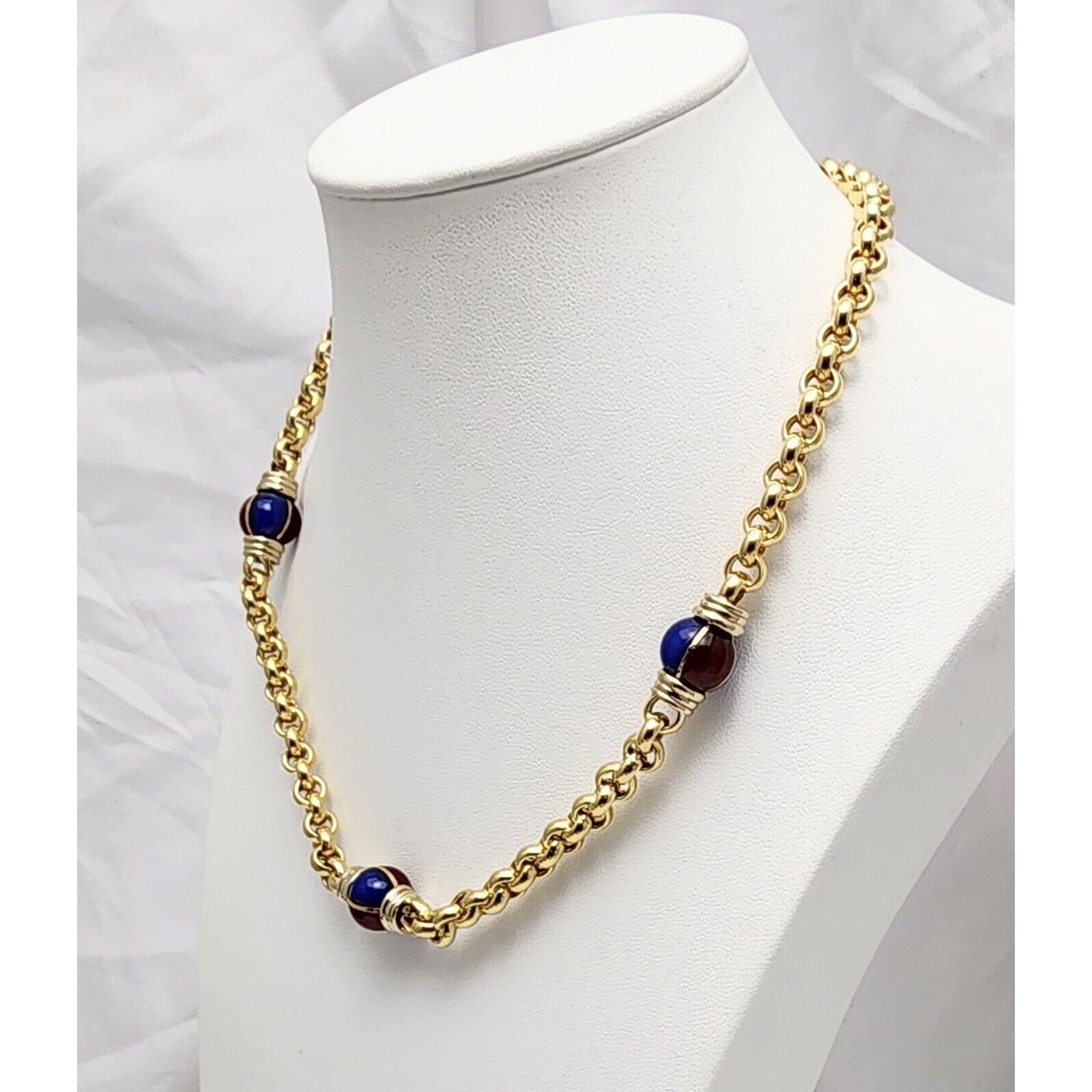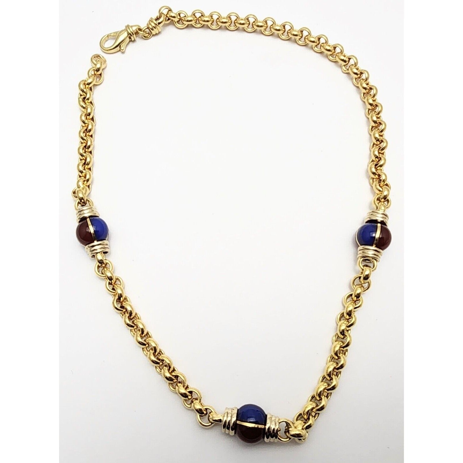18K Yellow Gold Bead Ball Choker Cable Link Chain Necklace